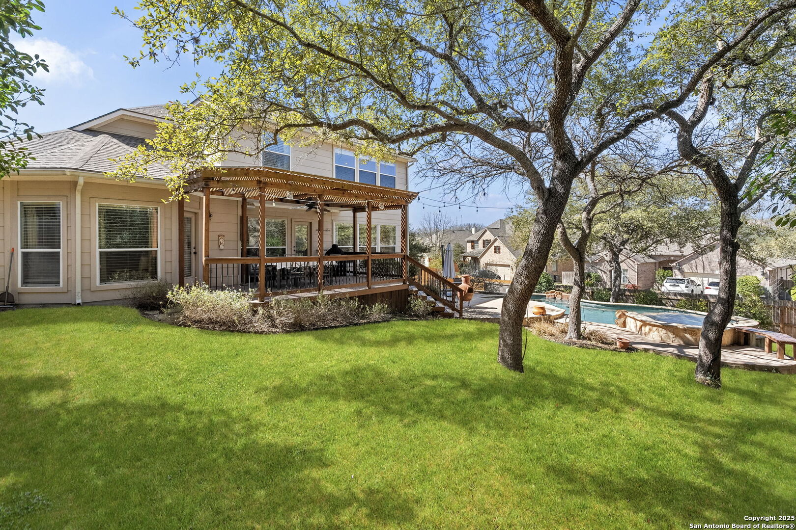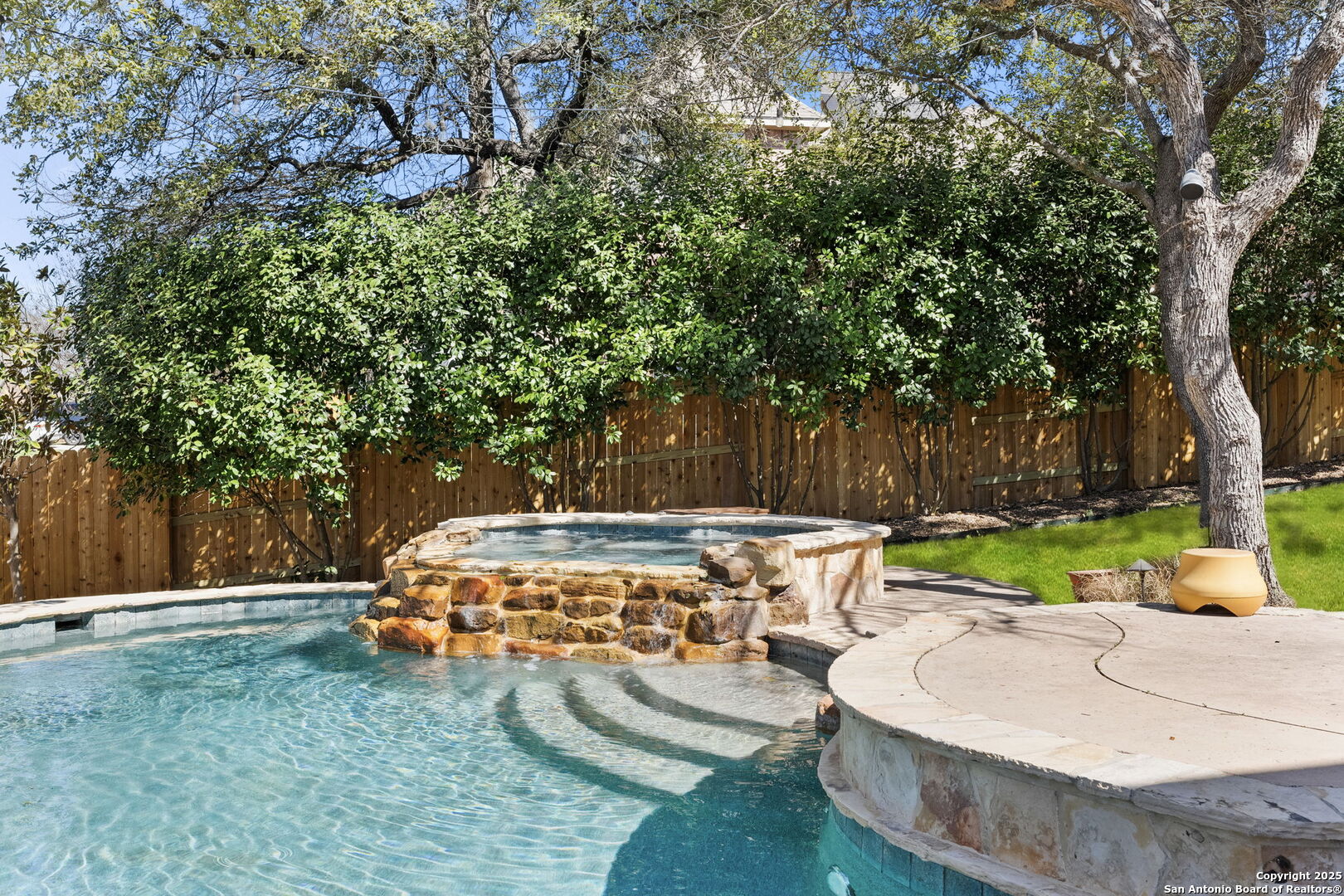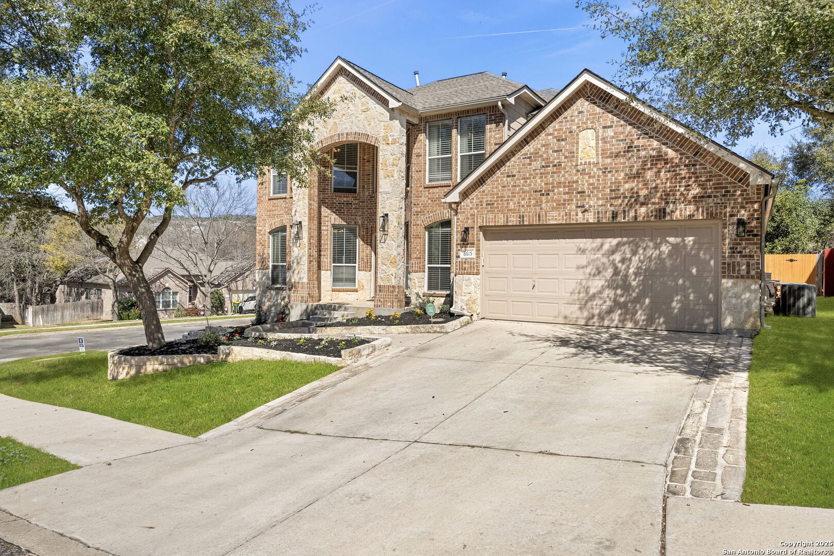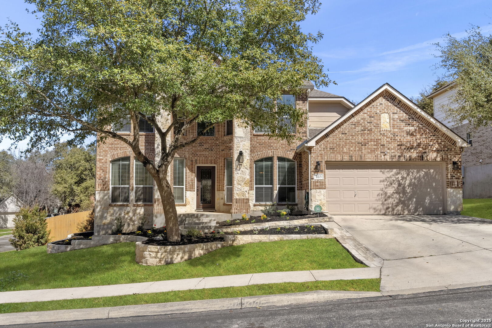 Welcome to your dream home in the prestigious gated community of Sonoma Ranch! Nestled on a prime corner lot on a street with a cul-de-sac, this impeccably maintained 4-bedroom, 2.5-bathroom beauty offers the perfect blend of elegance, comfort, and convenience. Step through the front door, and you're greeted by an inviting home office with French doors-ideal for remote work or a cozy reading nook. The formal dining room boasts a stylish accent wall and connects seamlessly to the kitchen, making dinner parties a breeze! Kitchen features crisp white cabinets with abundant storage and granite countertops. The spacious living room features a gas fireplace, perfect for cozy nights. Your primary suite is conveniently located on the main level, complete with a spa-like en suite bath featuring dual vanities, a garden tub, and a large walk-in closet. Upstairs, you'll find three additional bedrooms, a full bath, and a loft space-perfect for a playroom, media room, or extra lounge area. Step outside to your private backyard retreat, featuring a sparkling pool with an adjoining hot tub-the perfect place to unwind or entertain! A spacious deck and patio offers plenty of room for lounging, grilling, and soaking up the sun. Living in Sonoma Ranch means enjoying top-notch community amenities, including: communities pools, tennis courts, sand volleyball, basketball, clubhouse and grilling area. Conveniently located near 1604 and I1- with quick access La Cantera, The Rim, and UTSA.