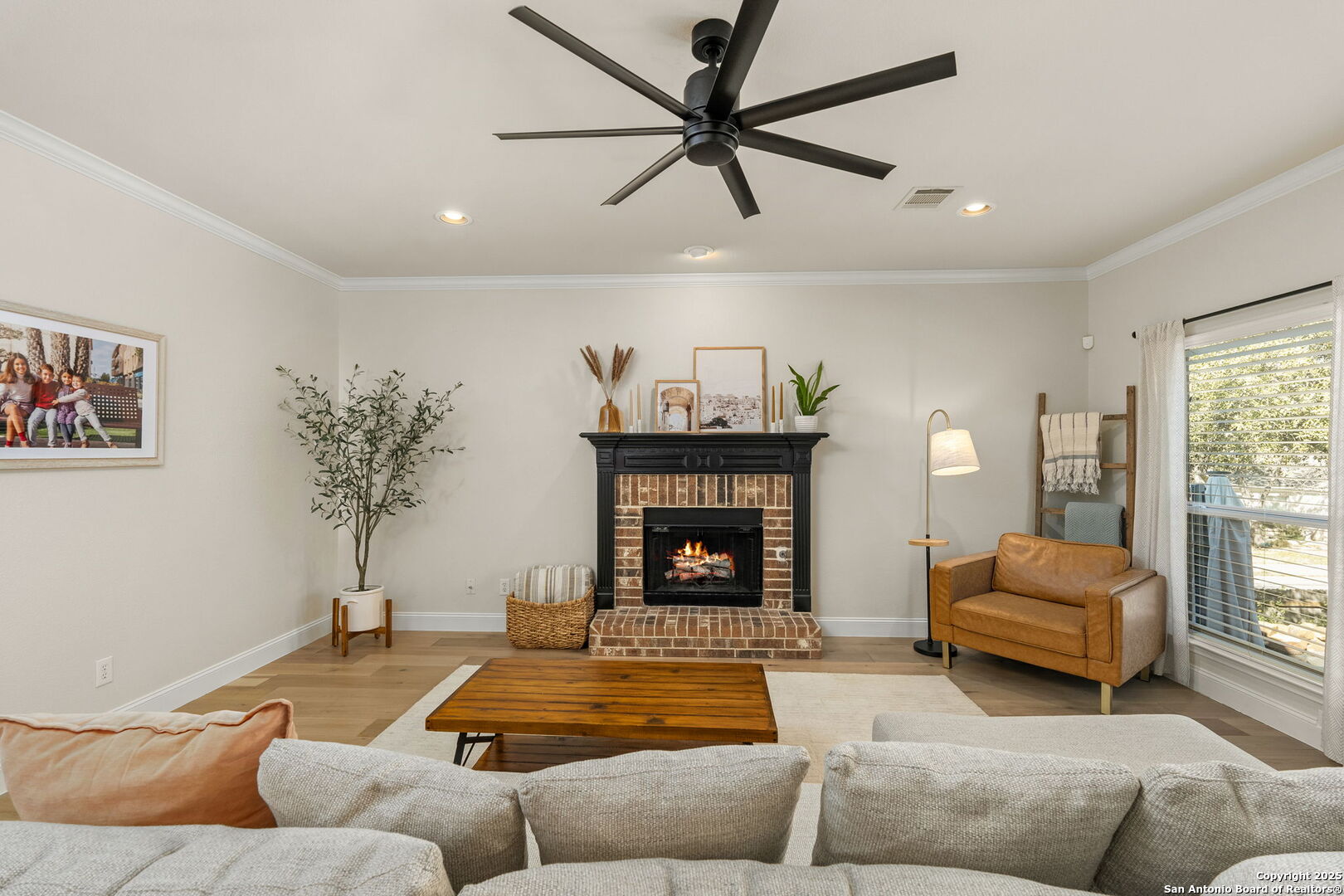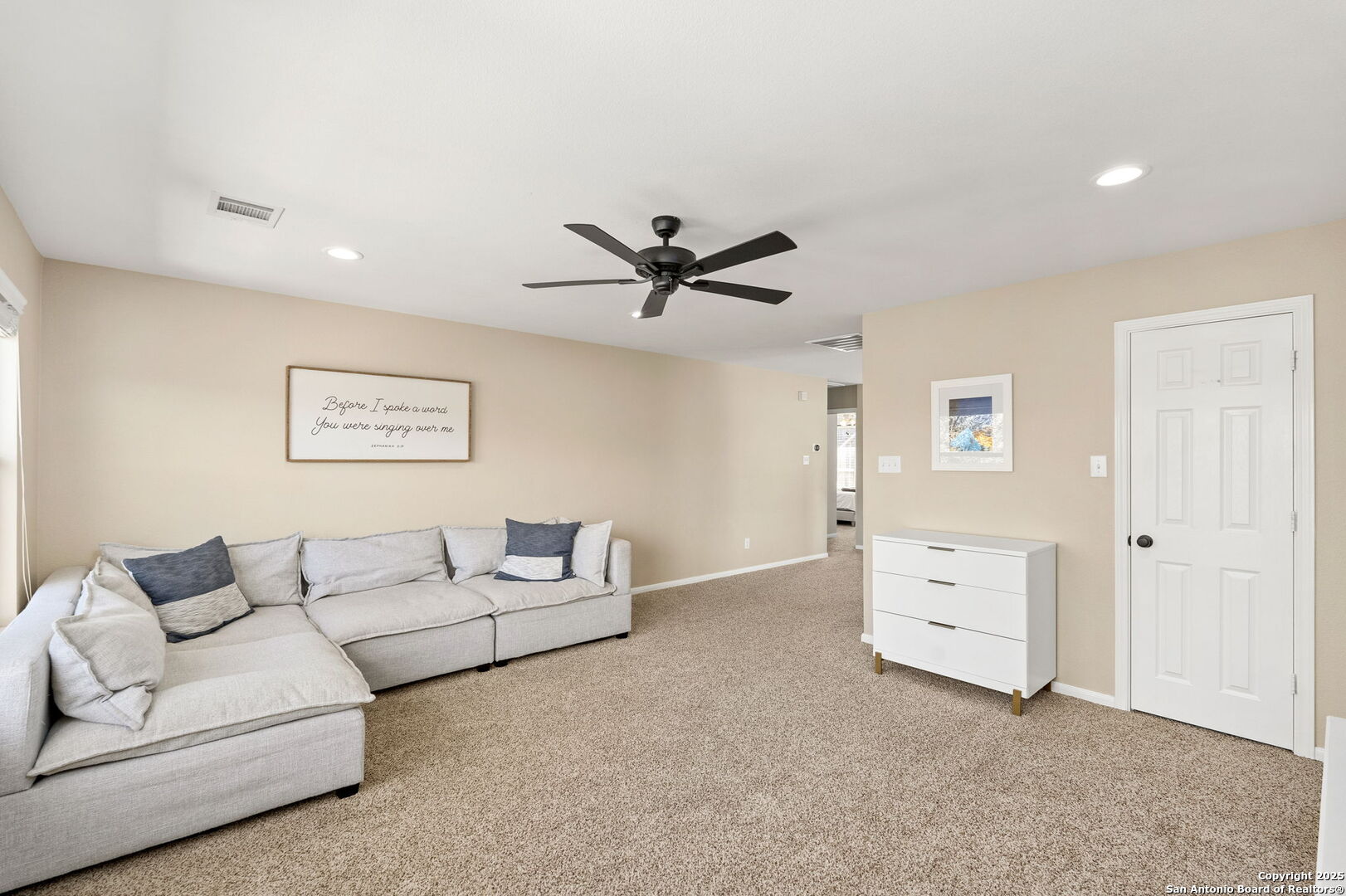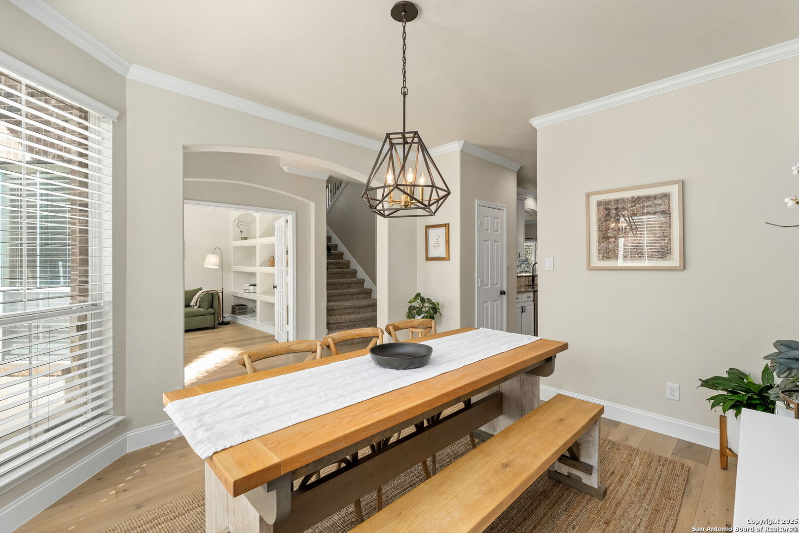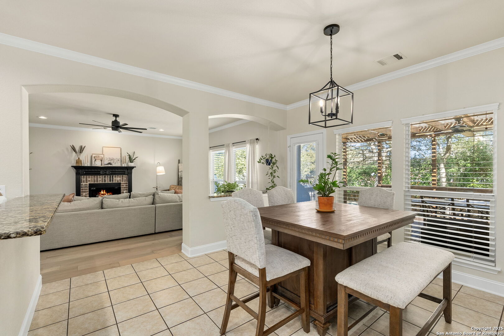 Welcome to your dream home in the prestigious gated community of Sonoma Ranch! Nestled on a prime corner lot on a street with a cul-de-sac, this impeccably maintained 4-bedroom, 2.5-bathroom beauty offers the perfect blend of elegance, comfort, and convenience. Step through the front door, and you're greeted by an inviting home office with French doors-ideal for remote work or a cozy reading nook. The formal dining room boasts a stylish accent wall and connects seamlessly to the kitchen, making dinner parties a breeze! Kitchen features crisp white cabinets with abundant storage and granite countertops. The spacious living room features a gas fireplace, perfect for cozy nights. Your primary suite is conveniently located on the main level, complete with a spa-like en suite bath featuring dual vanities, a garden tub, and a large walk-in closet. Upstairs, you'll find three additional bedrooms, a full bath, and a loft space-perfect for a playroom, media room, or extra lounge area. Step outside to your private backyard retreat, featuring a sparkling pool with an adjoining hot tub-the perfect place to unwind or entertain! A spacious deck and patio offers plenty of room for lounging, grilling, and soaking up the sun. Living in Sonoma Ranch means enjoying top-notch community amenities, including: communities pools, tennis courts, sand volleyball, basketball, clubhouse and grilling area. Conveniently located near 1604 and I1- with quick access La Cantera, The Rim, and UTSA.