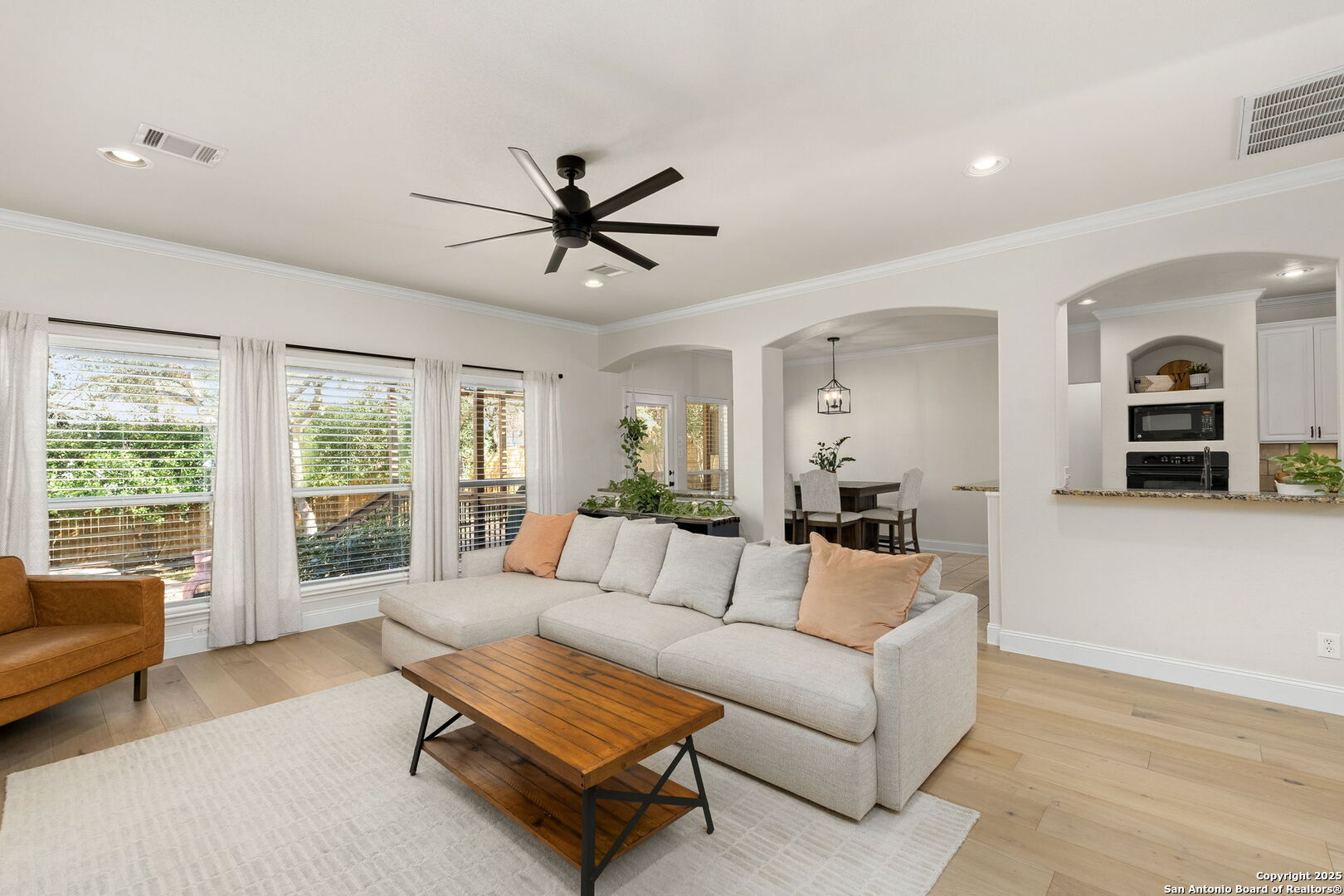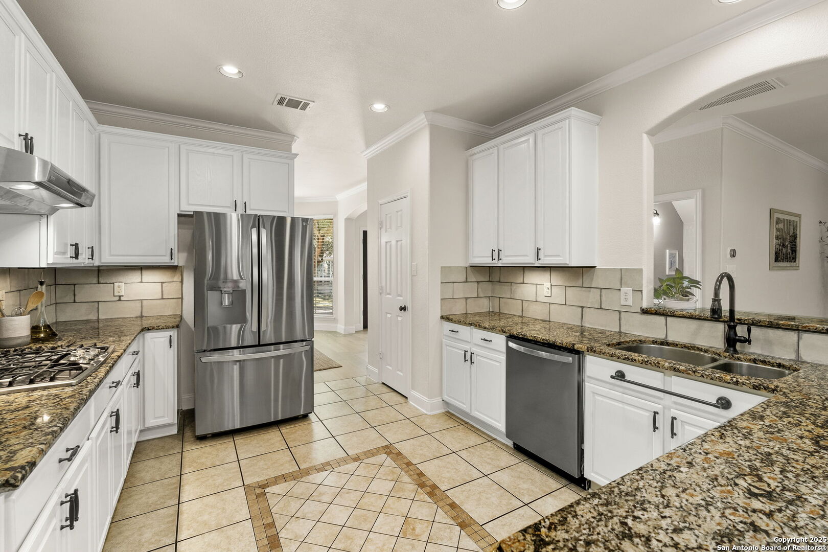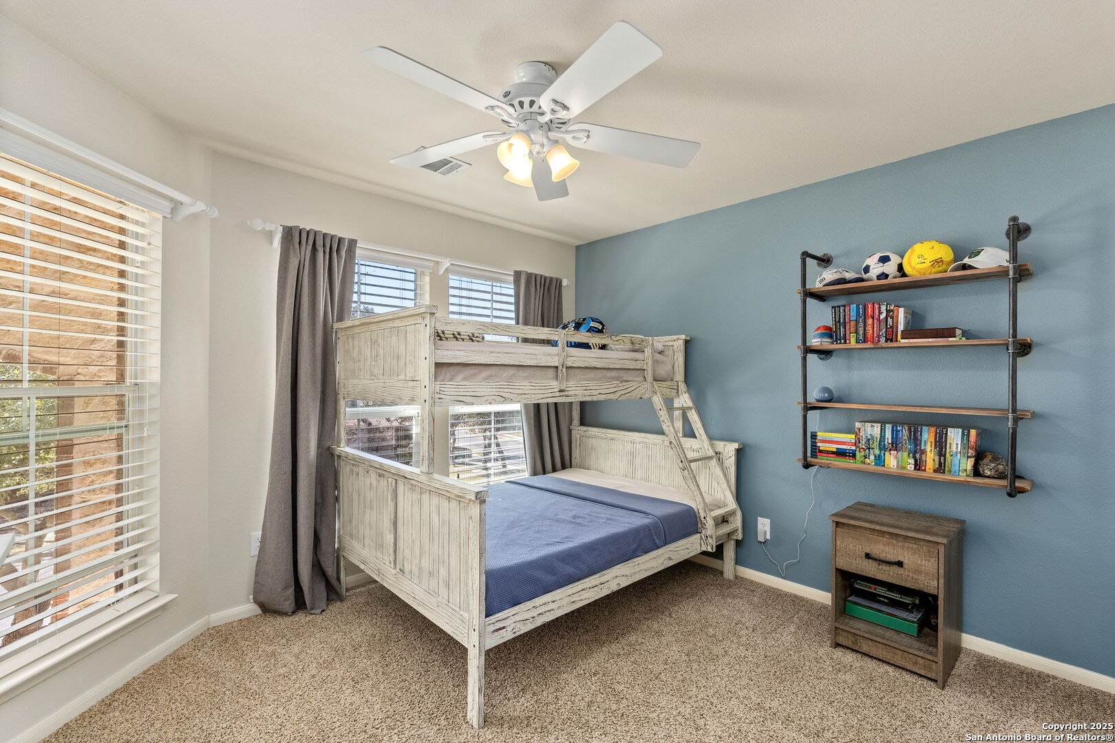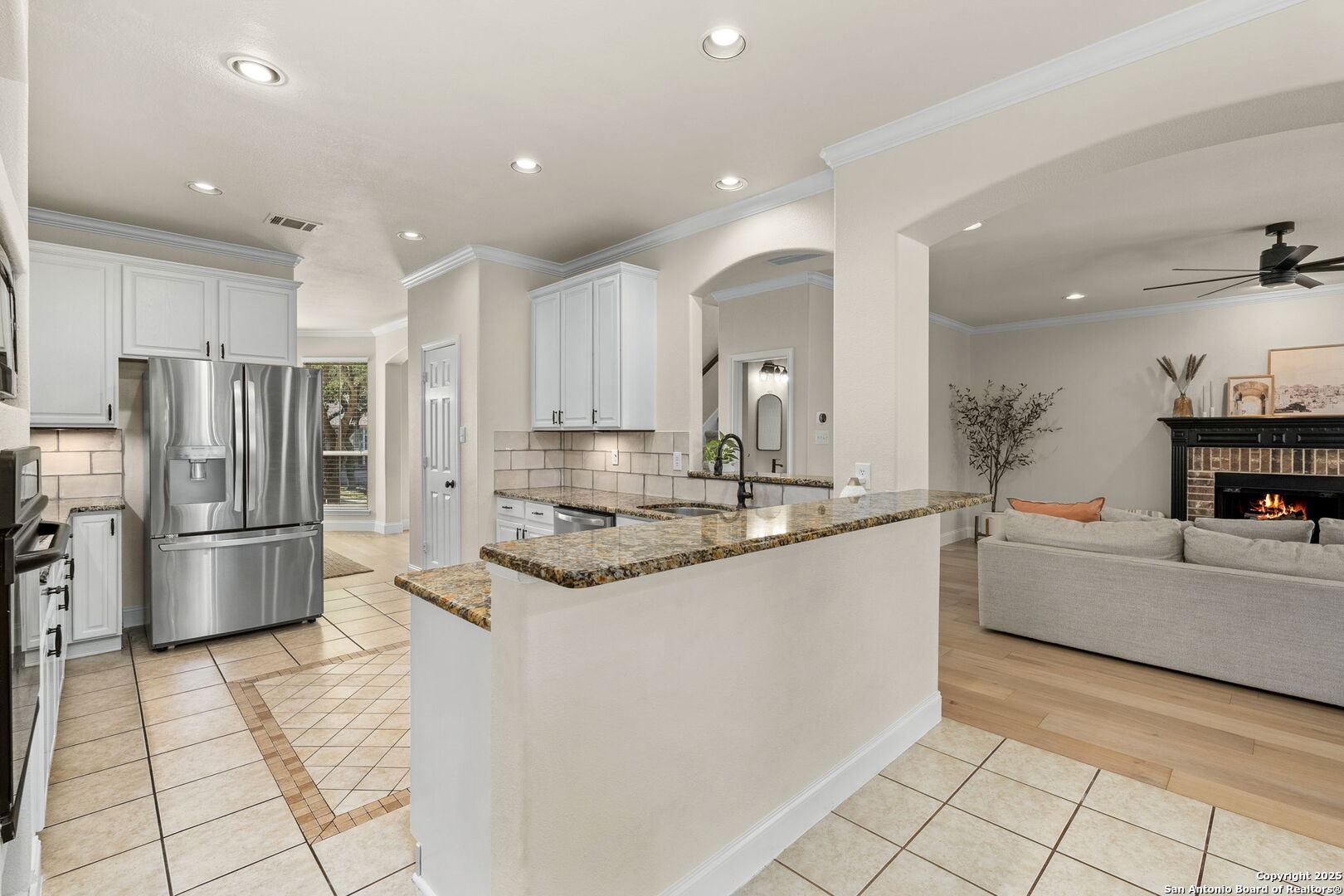 Welcome to your dream home in the prestigious gated community of Sonoma Ranch! Nestled on a prime corner lot on a street with a cul-de-sac, this impeccably maintained 4-bedroom, 2.5-bathroom beauty offers the perfect blend of elegance, comfort, and convenience. Step through the front door, and you're greeted by an inviting home office with French doors-ideal for remote work or a cozy reading nook. The formal dining room boasts a stylish accent wall and connects seamlessly to the kitchen, making dinner parties a breeze! Kitchen features crisp white cabinets with abundant storage and granite countertops. The spacious living room features a gas fireplace, perfect for cozy nights. Your primary suite is conveniently located on the main level, complete with a spa-like en suite bath featuring dual vanities, a garden tub, and a large walk-in closet. Upstairs, you'll find three additional bedrooms, a full bath, and a loft space-perfect for a playroom, media room, or extra lounge area. Step outside to your private backyard retreat, featuring a sparkling pool with an adjoining hot tub-the perfect place to unwind or entertain! A spacious deck and patio offers plenty of room for lounging, grilling, and soaking up the sun. Living in Sonoma Ranch means enjoying top-notch community amenities, including: communities pools, tennis courts, sand volleyball, basketball, clubhouse and grilling area. Conveniently located near 1604 and I1- with quick access La Cantera, The Rim, and UTSA.