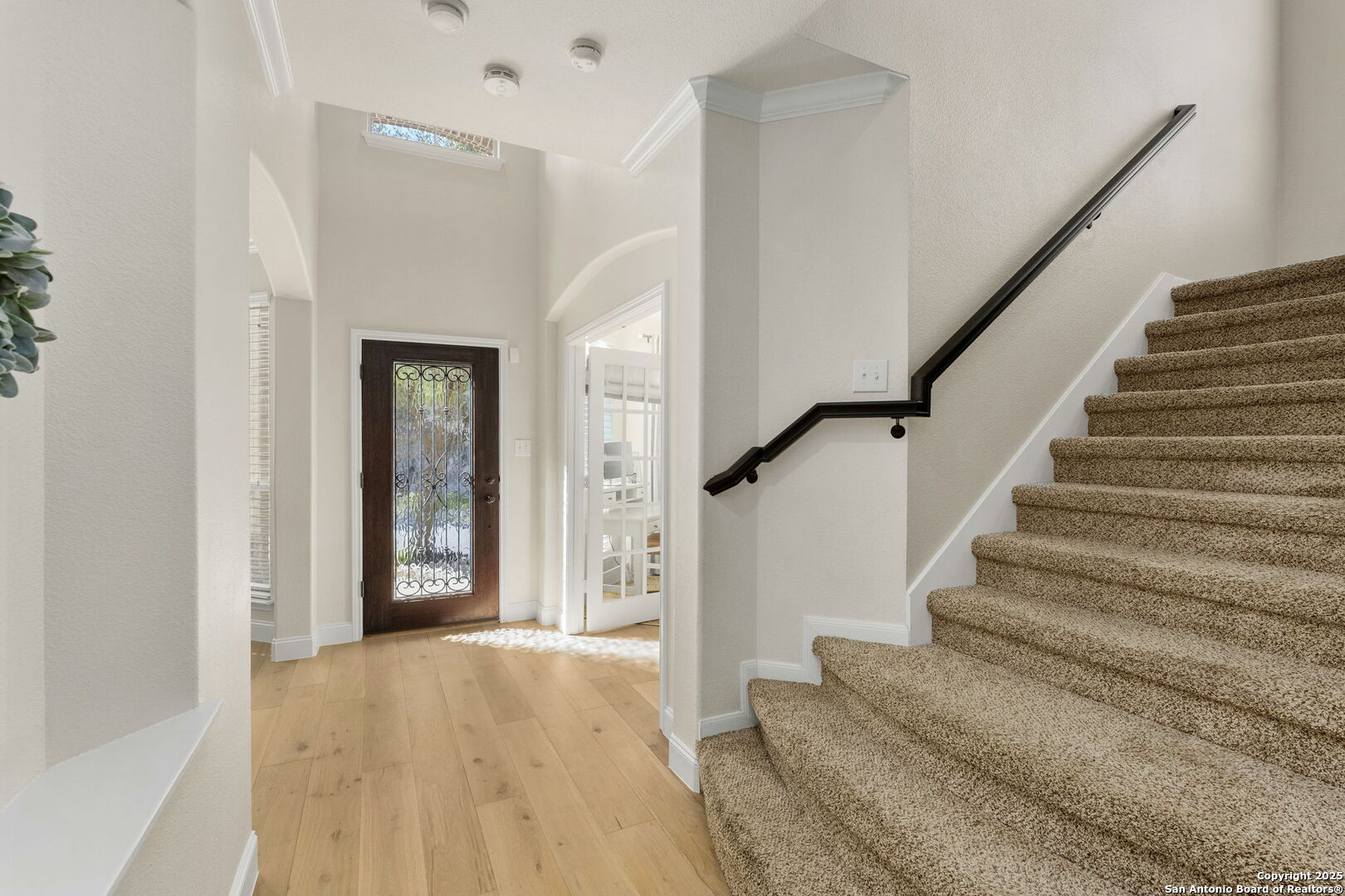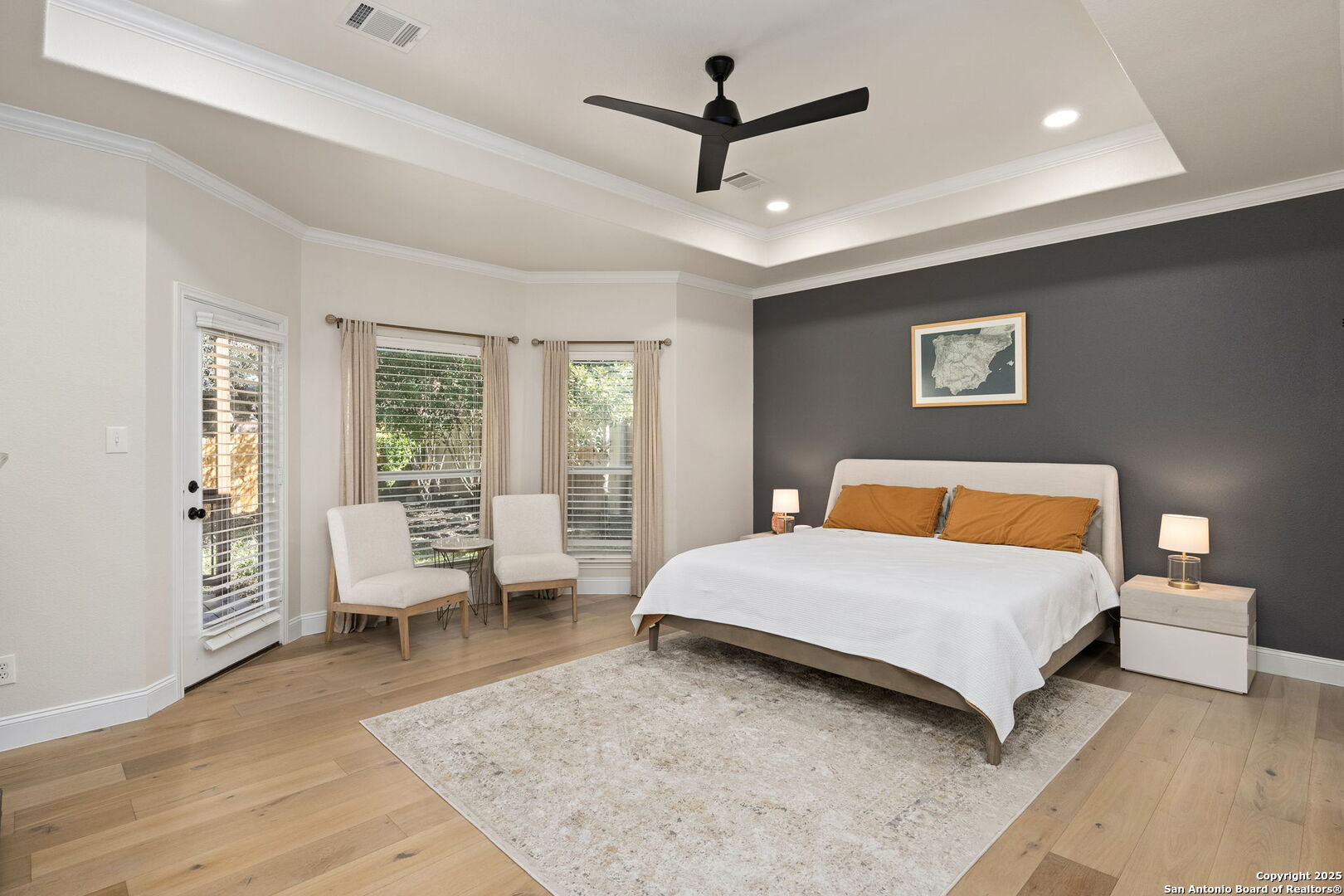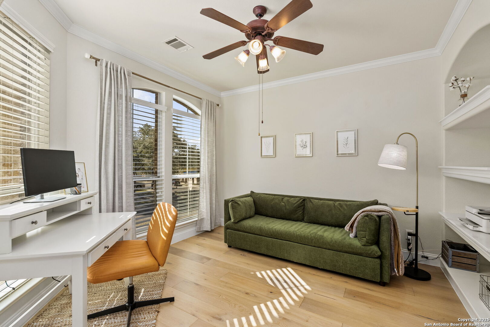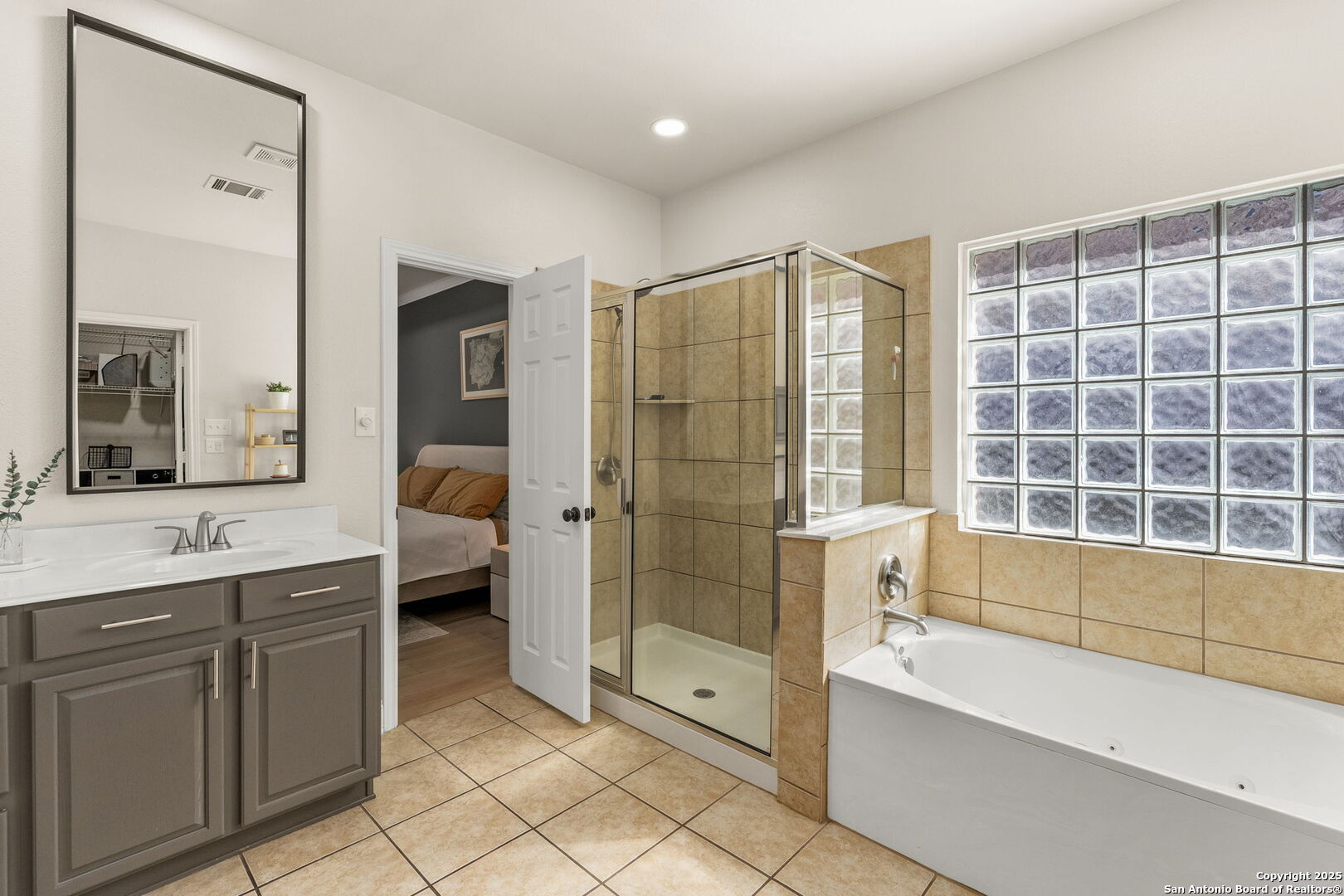 Welcome to your dream home in the prestigious gated community of Sonoma Ranch! Nestled on a prime corner lot on a street with a cul-de-sac, this impeccably maintained 4-bedroom, 2.5-bathroom beauty offers the perfect blend of elegance, comfort, and convenience. Step through the front door, and you're greeted by an inviting home office with French doors-ideal for remote work or a cozy reading nook. The formal dining room boasts a stylish accent wall and connects seamlessly to the kitchen, making dinner parties a breeze! Kitchen features crisp white cabinets with abundant storage and granite countertops. The spacious living room features a gas fireplace, perfect for cozy nights. Your primary suite is conveniently located on the main level, complete with a spa-like en suite bath featuring dual vanities, a garden tub, and a large walk-in closet. Upstairs, you'll find three additional bedrooms, a full bath, and a loft space-perfect for a playroom, media room, or extra lounge area. Step outside to your private backyard retreat, featuring a sparkling pool with an adjoining hot tub-the perfect place to unwind or entertain! A spacious deck and patio offers plenty of room for lounging, grilling, and soaking up the sun. Living in Sonoma Ranch means enjoying top-notch community amenities, including: communities pools, tennis courts, sand volleyball, basketball, clubhouse and grilling area. Conveniently located near 1604 and I1- with quick access La Cantera, The Rim, and UTSA.