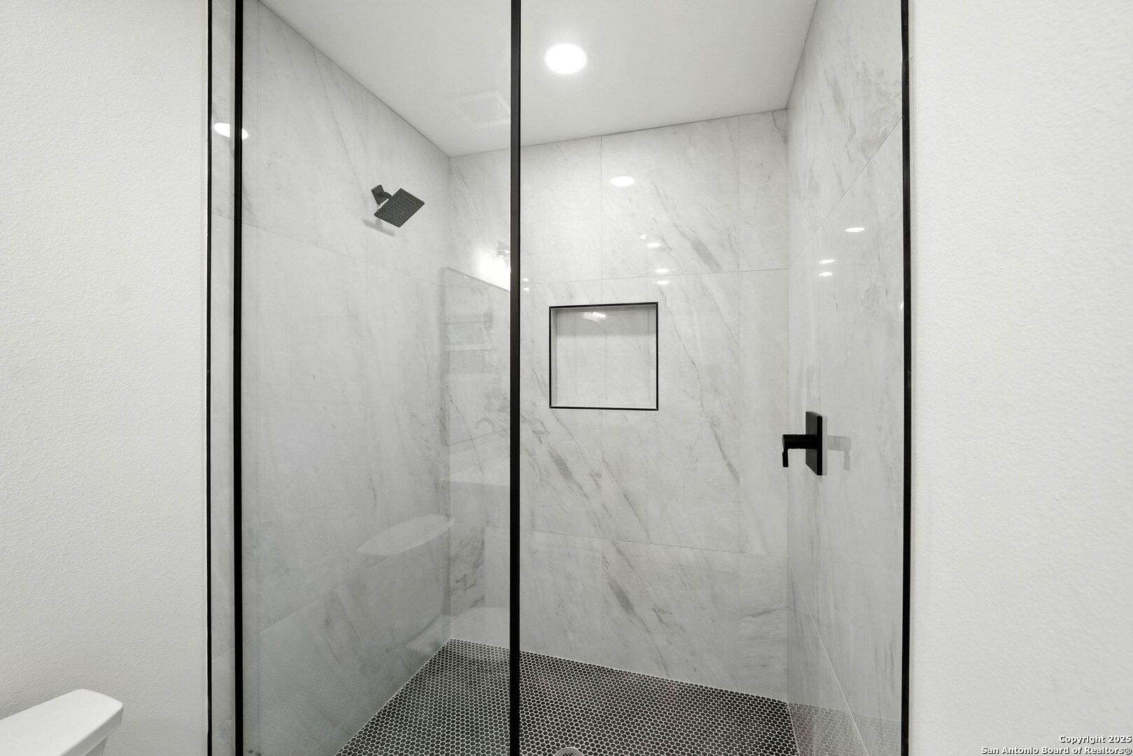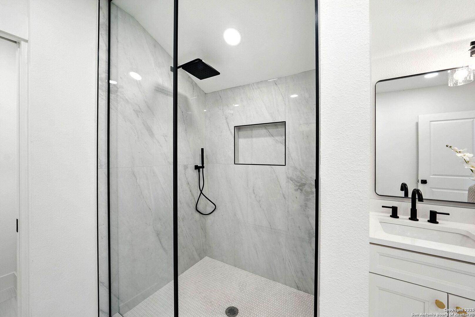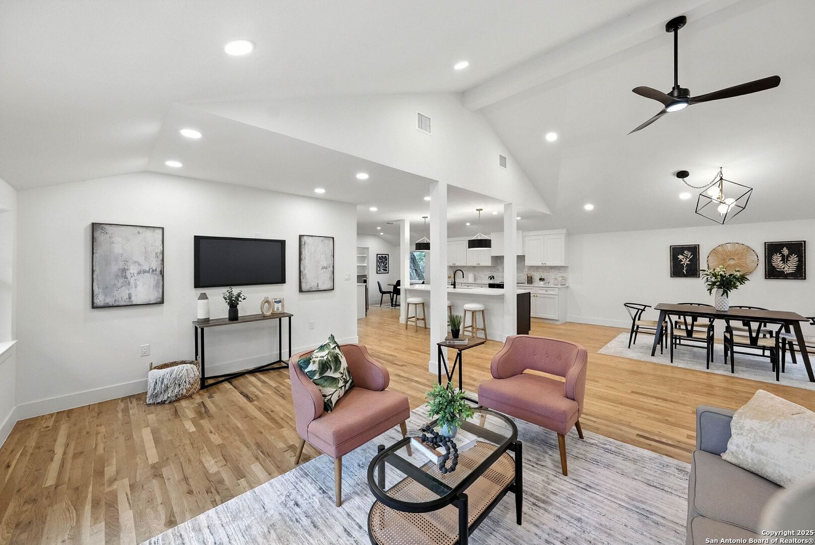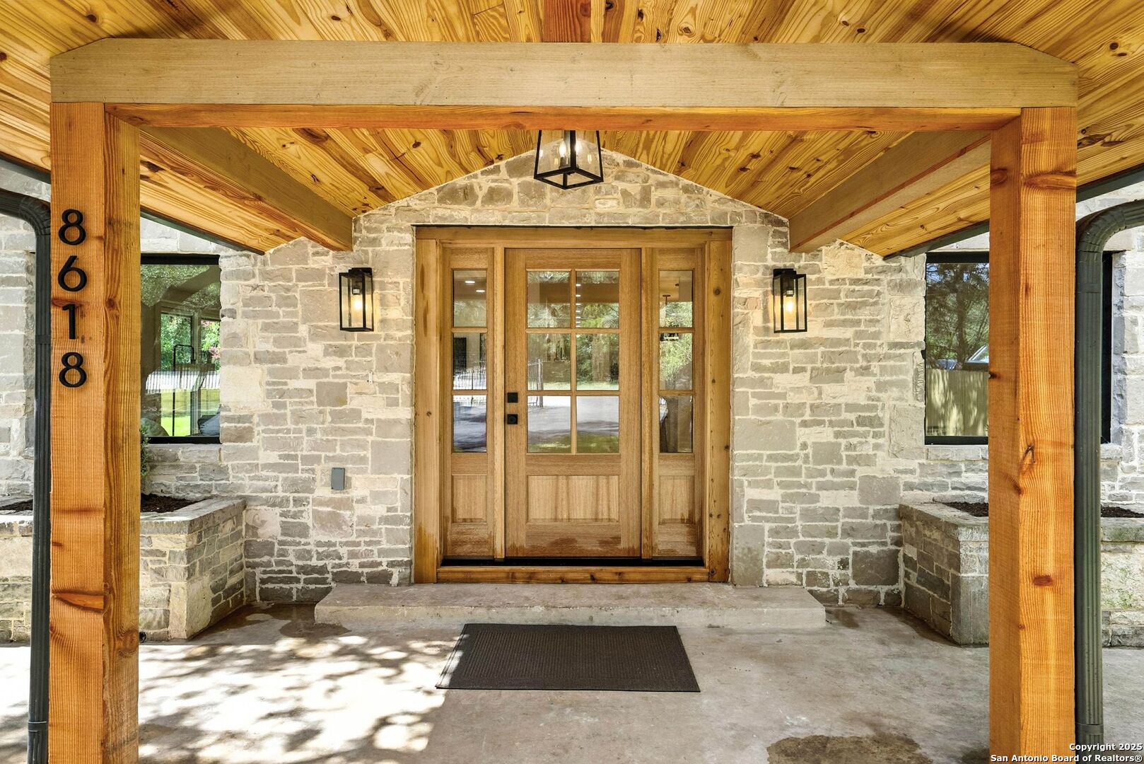 Featuring a beautiful fully remodeled home, seamlessly blending modern upgrades with the original charm and warmth of restored hardwood floors. This home is nestled in the established community of Indian Hills, with no HOA, between San Antonio and Boerne. Spanning .46 acres, this home boasts 3 bedrooms, 3 full bathrooms, 1 half bathroom, and a private study/flex room. This residence offers a one level floor plan tailored for entertaining and everyday living. Upon entry, you're greeted by vaulted ceilings, an inviting open layout of the living room and formal dining. The kitchen features quartz countertops, modern white and black cabinetry, all new stainless-steel appliances, a walk-in pantry and breakfast nook area. The primary suite is a true retreat, featuring a large walk-in shower, dual vanities, and a walk-in closet. There is a guest suite with a full bathroom, all details finished with exceptional craftsmanship and style. Enjoy peace of mind and efficiency with a brand-new A/C, private septic, and water well. The exterior of the home features a detached 2-car garage, large asphalt driveway for additional parking, and fully gated lot with surrounding mature oak trees offering both beauty and privacy. Conveniently located within minutes of Boerne, La Cantera, The Rim, fine dining, and the Medical Center.