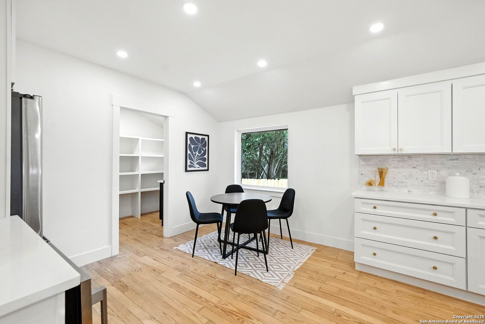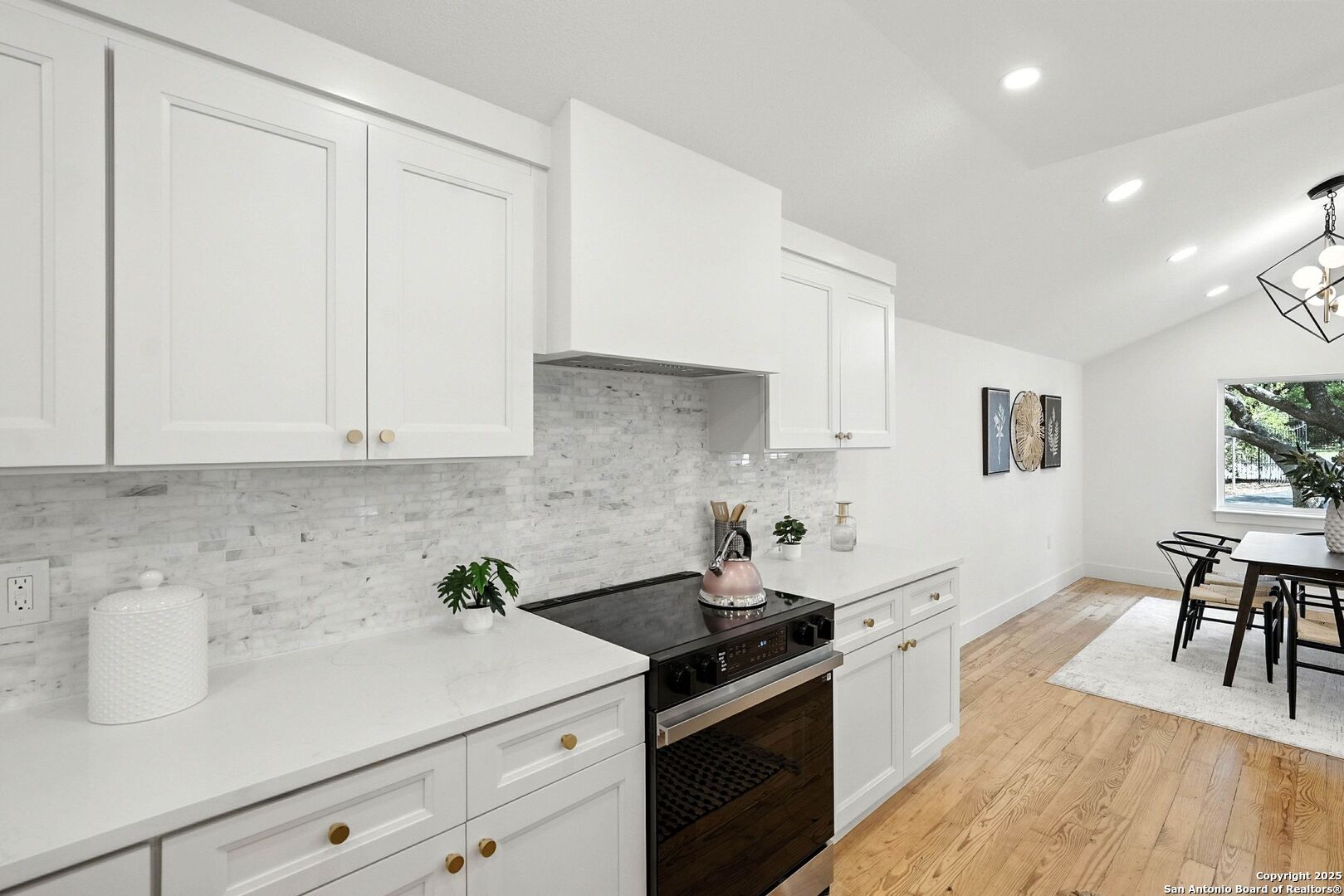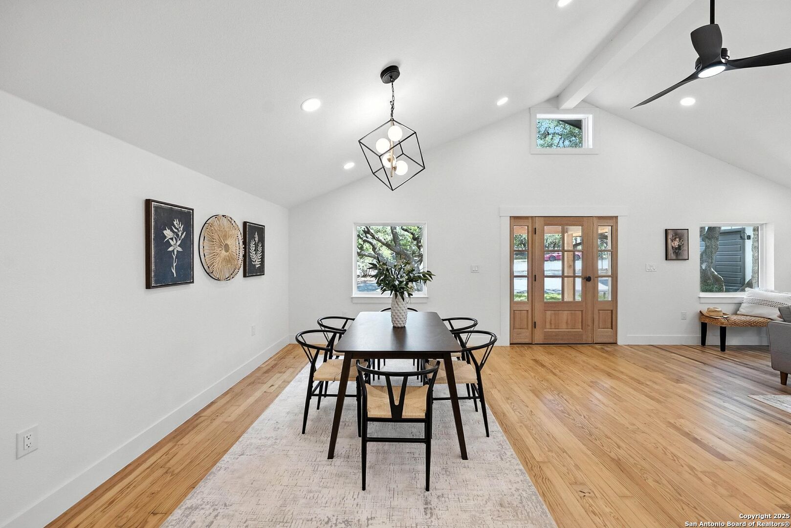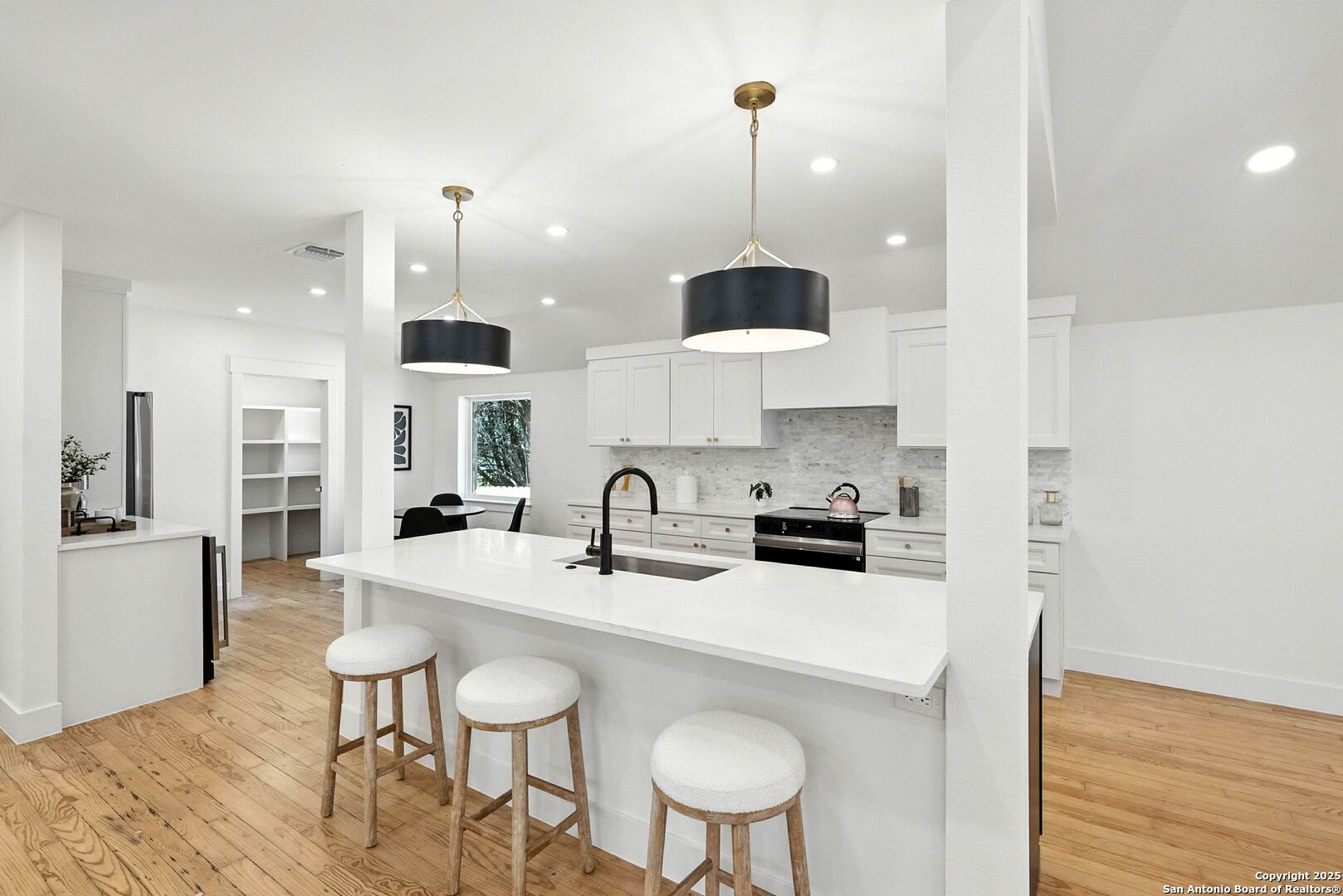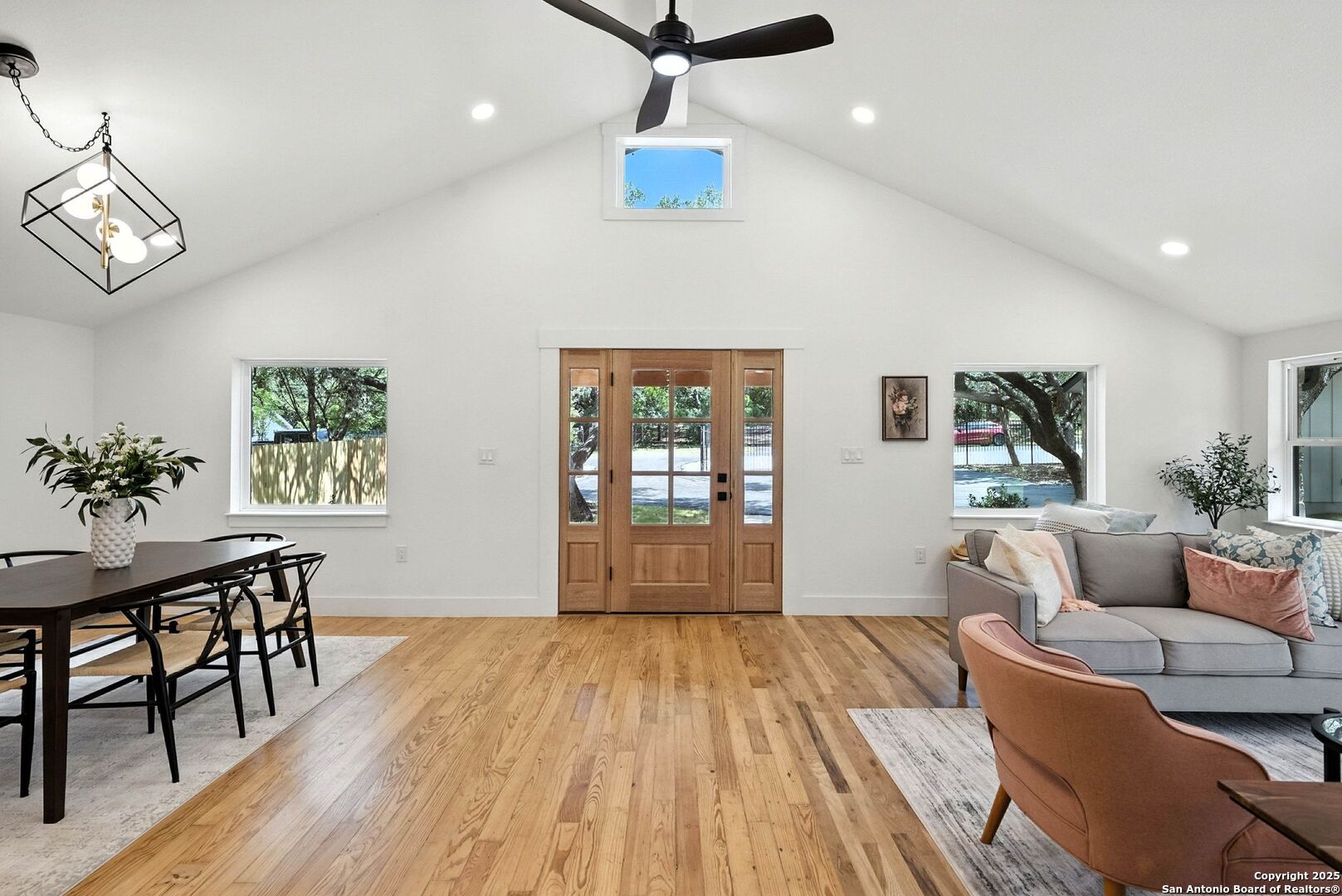 Featuring a beautiful fully remodeled home, seamlessly blending modern upgrades with the original charm and warmth of restored hardwood floors. This home is nestled in the established community of Indian Hills, with no HOA, between San Antonio and Boerne. Spanning .46 acres, this home boasts 3 bedrooms, 3 full bathrooms, 1 half bathroom, and a private study/flex room. This residence offers a one level floor plan tailored for entertaining and everyday living. Upon entry, you're greeted by vaulted ceilings, an inviting open layout of the living room and formal dining. The kitchen features quartz countertops, modern white and black cabinetry, all new stainless-steel appliances, a walk-in pantry and breakfast nook area. The primary suite is a true retreat, featuring a large walk-in shower, dual vanities, and a walk-in closet. There is a guest suite with a full bathroom, all details finished with exceptional craftsmanship and style. Enjoy peace of mind and efficiency with a brand-new A/C, private septic, and water well. The exterior of the home features a detached 2-car garage, large asphalt driveway for additional parking, and fully gated lot with surrounding mature oak trees offering both beauty and privacy. Conveniently located within minutes of Boerne, La Cantera, The Rim, fine dining, and the Medical Center.