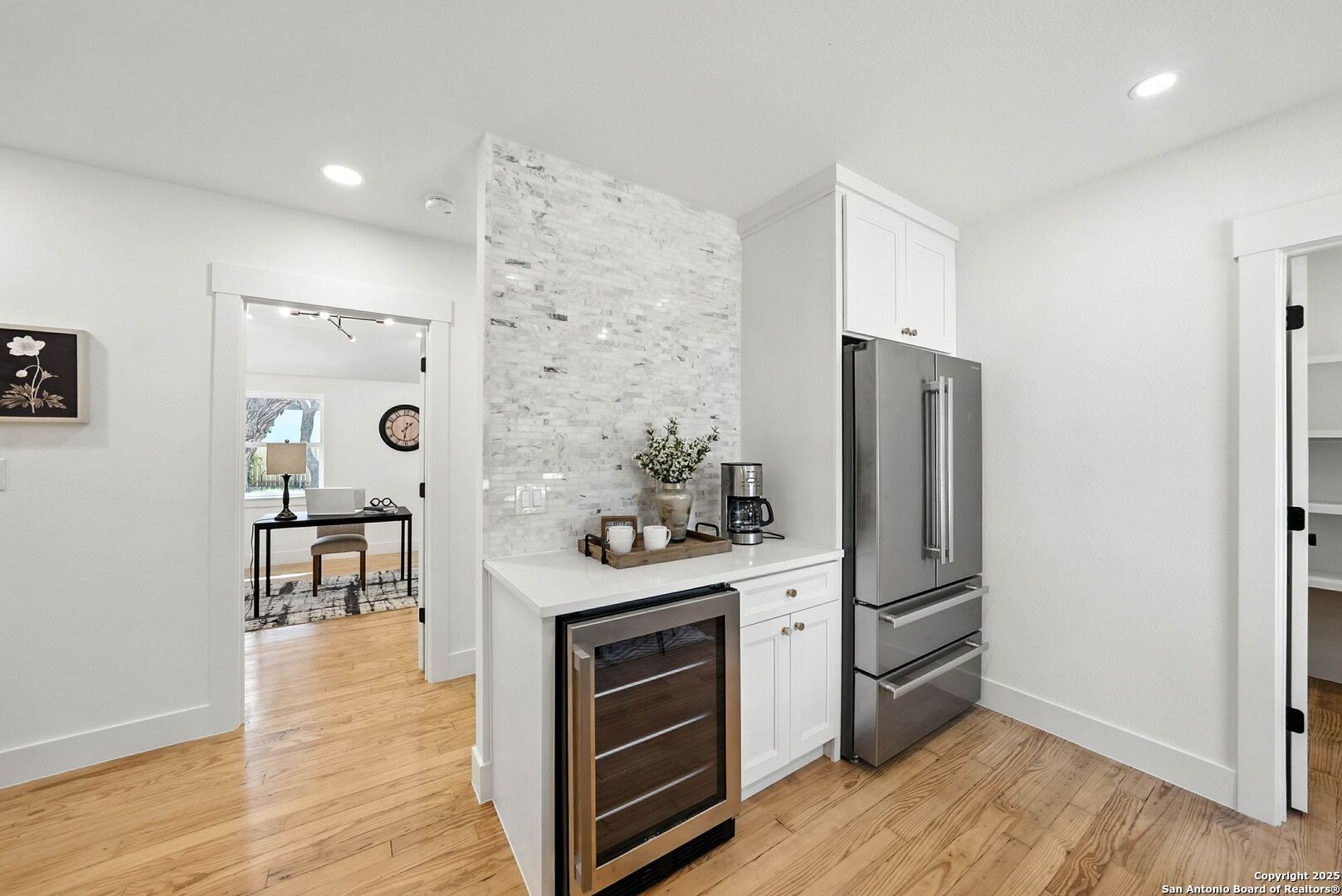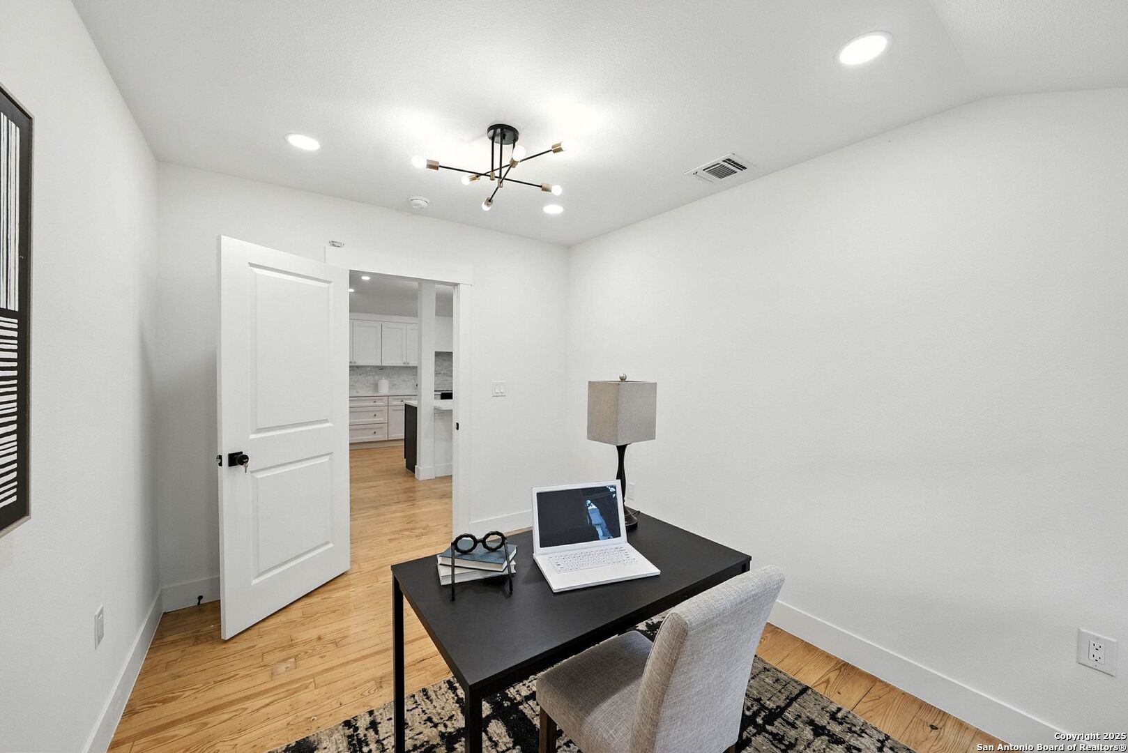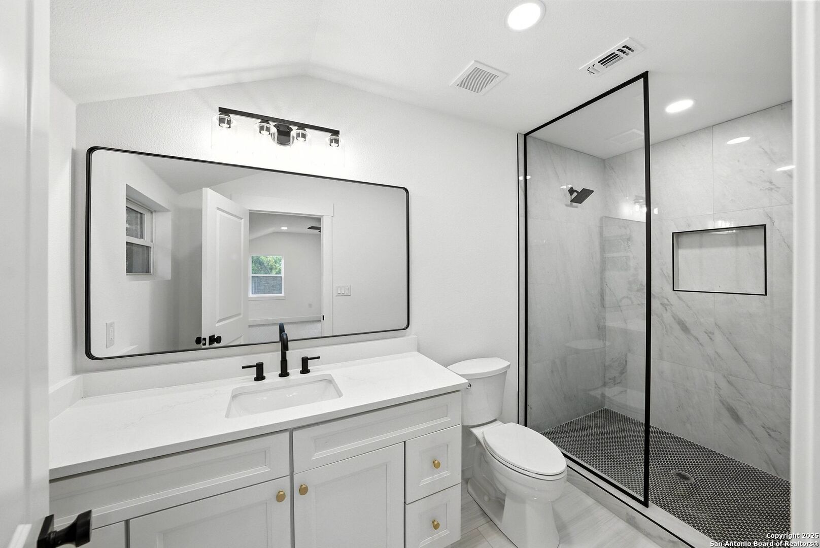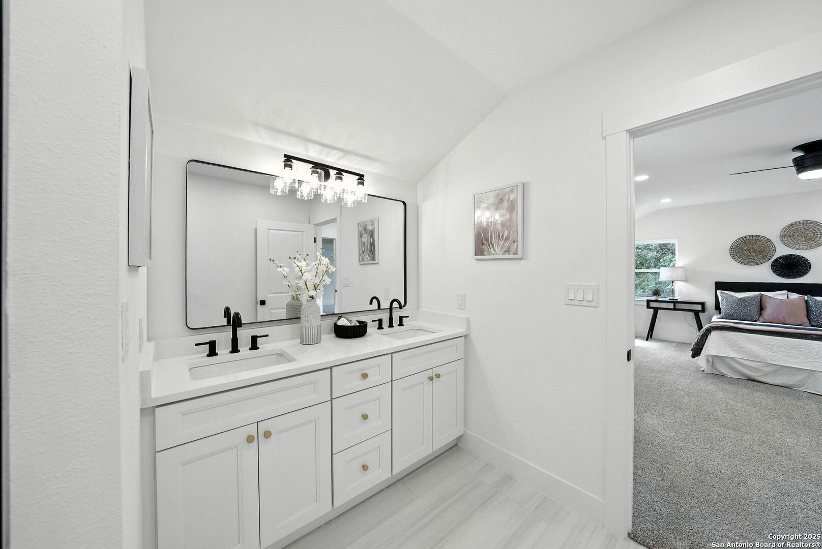 Featuring a beautiful fully remodeled home, seamlessly blending modern upgrades with the original charm and warmth of restored hardwood floors. This home is nestled in the established community of Indian Hills, with no HOA, between San Antonio and Boerne. Spanning .46 acres, this home boasts 3 bedrooms, 3 full bathrooms, 1 half bathroom, and a private study/flex room. This residence offers a one level floor plan tailored for entertaining and everyday living. Upon entry, you're greeted by vaulted ceilings, an inviting open layout of the living room and formal dining. The kitchen features quartz countertops, modern white and black cabinetry, all new stainless-steel appliances, a walk-in pantry and breakfast nook area. The primary suite is a true retreat, featuring a large walk-in shower, dual vanities, and a walk-in closet. There is a guest suite with a full bathroom, all details finished with exceptional craftsmanship and style. Enjoy peace of mind and efficiency with a brand-new A/C, private septic, and water well. The exterior of the home features a detached 2-car garage, large asphalt driveway for additional parking, and fully gated lot with surrounding mature oak trees offering both beauty and privacy. Conveniently located within minutes of Boerne, La Cantera, The Rim, fine dining, and the Medical Center.