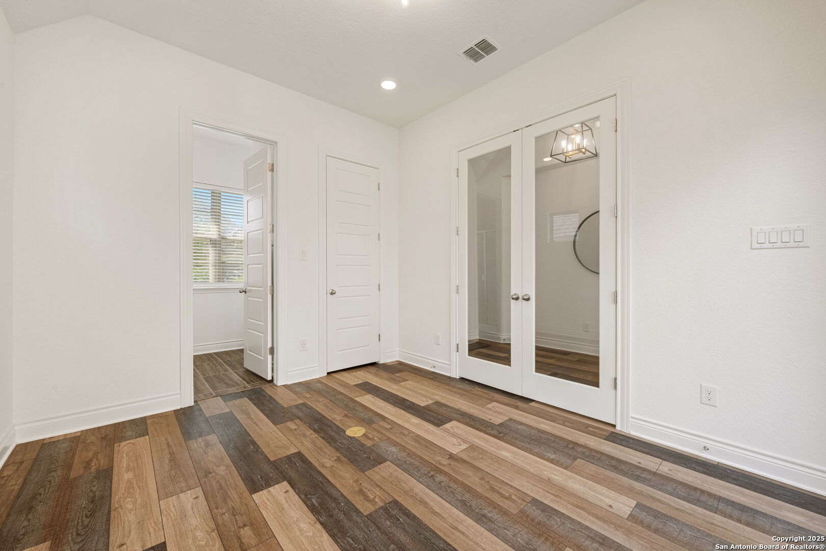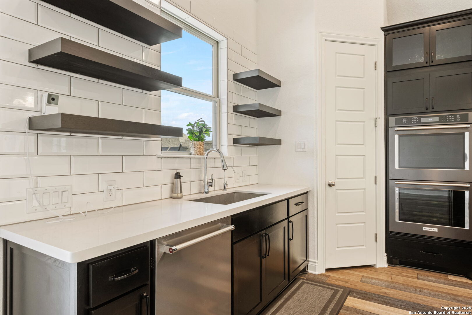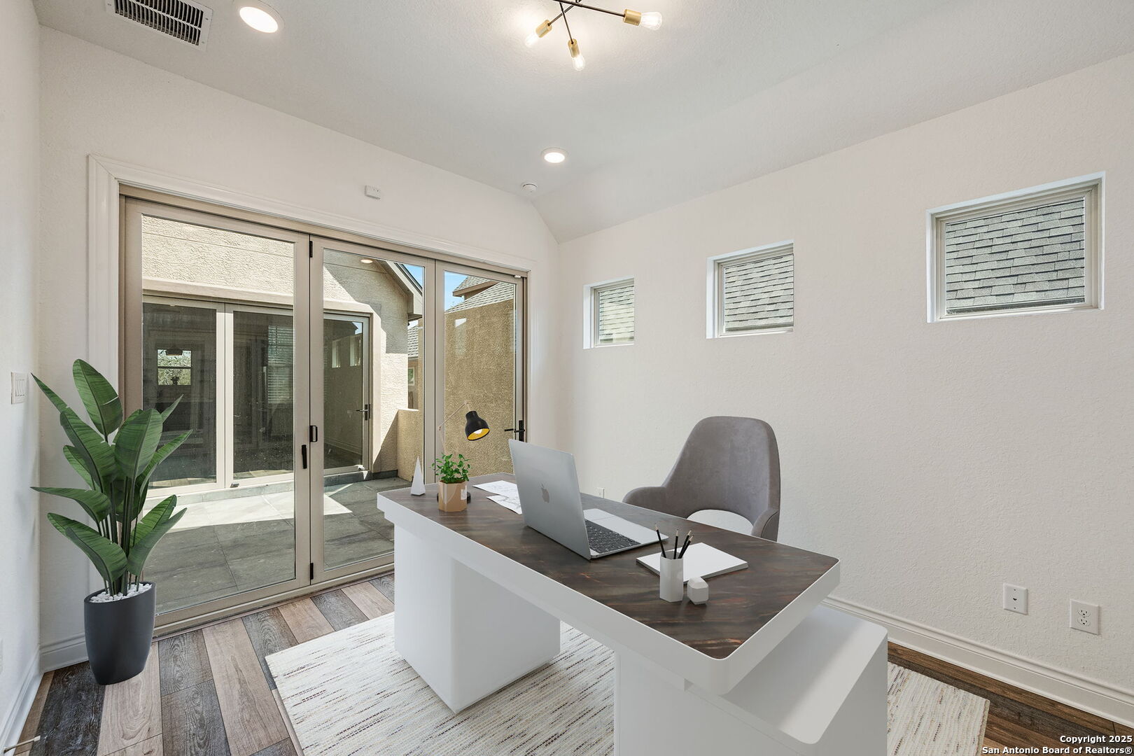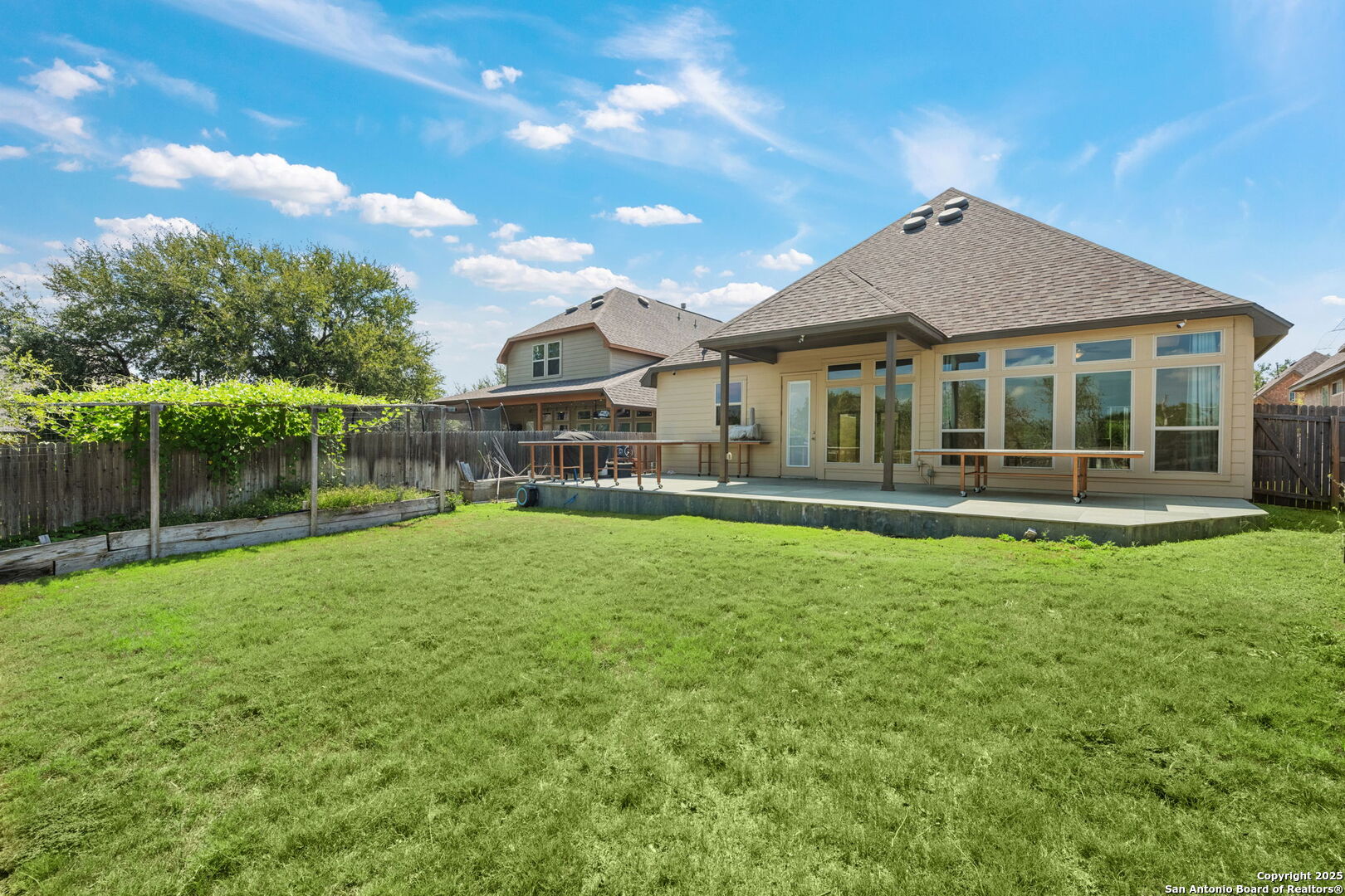 Home sweet modern home! This stunning 2020 built Texas Homes floor plan offers all you'd want in a 2,000+ sqft single story with the peace and quiet that comes with backing up to privately-owned acreage in the middle of the city! The layout offers it all: 3 generously sized bedrooms, massive open interior living space that's perfect for entertaining and gathering, a patio that's just begging for barbecues and parties, a courtyard in the middle of the house great for a little morning (or evening) outdoor time, coffee or after-dinner drinks, quiet gardening (potted plants would love this space), yoga... you name it! The kitchen sits at the heart of the home, overlooks the backyard, and features tons of granite countertops, ample cabinetry/storage, and absolutely fantastic appliances that are sure to please every level of home cook. The current owners used the guest suite as an office (and it's great that way) but it does have a full bath ensuite that will tempt your guests to stay beyond their welcome. Wander into the owner's suite and stay there for a bit to enjoy the massive windows and natural light, the spa-like full bath and super shower, and of course that cavernous closet! No wasted space, this home makes great use of every square inch, is energy efficient, and takes full advantage of the property's north/south orientation to allow plenty of natural light in throughout the day. Schedule your showing today!