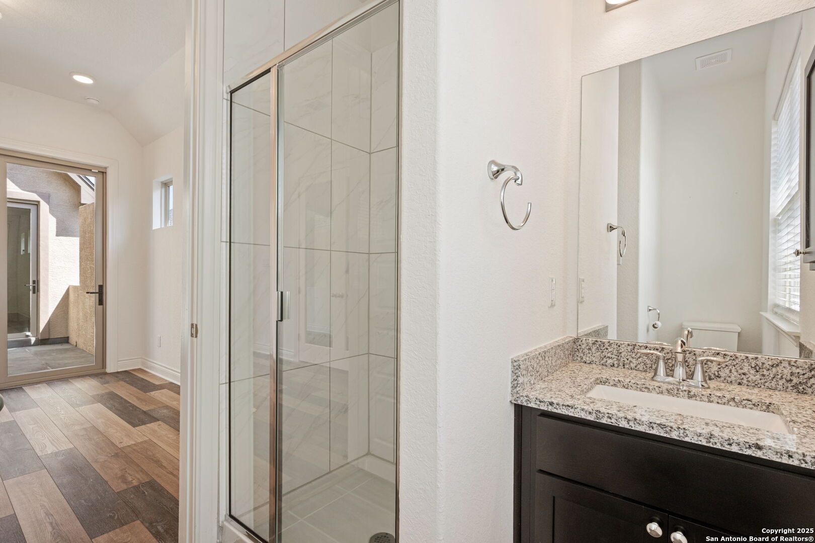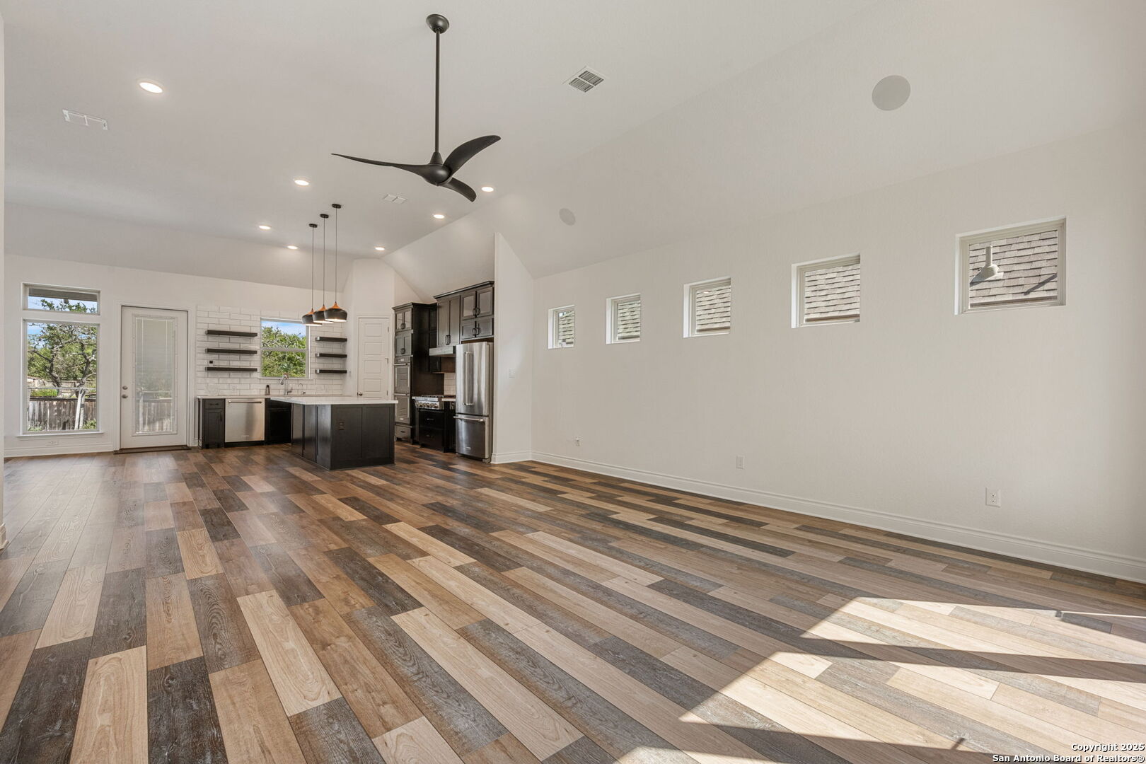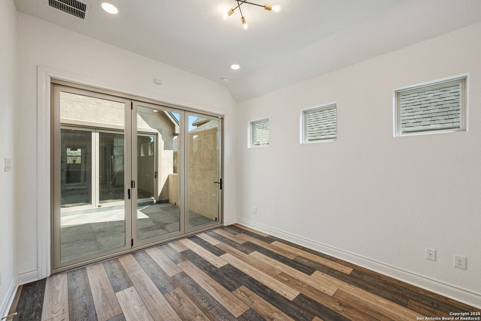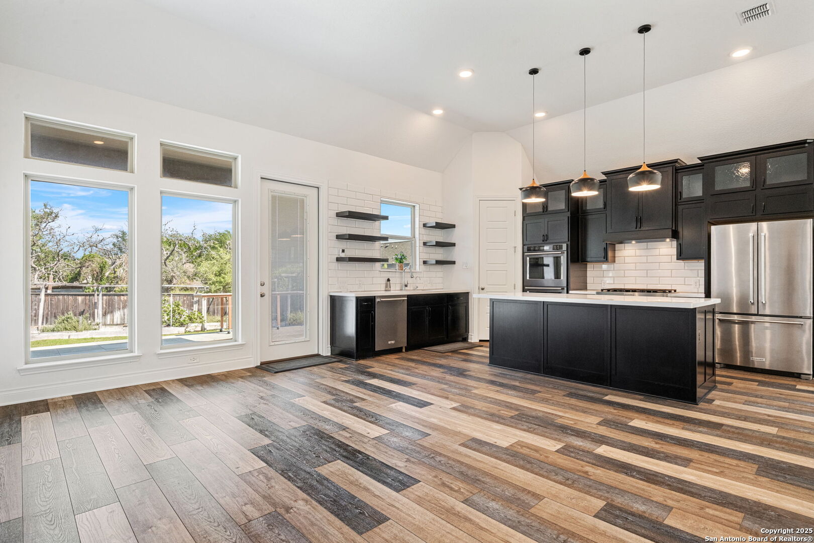 Home sweet modern home! This stunning 2020 built Texas Homes floor plan offers all you'd want in a 2,000+ sqft single story with the peace and quiet that comes with backing up to privately-owned acreage in the middle of the city! The layout offers it all: 3 generously sized bedrooms, massive open interior living space that's perfect for entertaining and gathering, a patio that's just begging for barbecues and parties, a courtyard in the middle of the house great for a little morning (or evening) outdoor time, coffee or after-dinner drinks, quiet gardening (potted plants would love this space), yoga... you name it! The kitchen sits at the heart of the home, overlooks the backyard, and features tons of granite countertops, ample cabinetry/storage, and absolutely fantastic appliances that are sure to please every level of home cook. The current owners used the guest suite as an office (and it's great that way) but it does have a full bath ensuite that will tempt your guests to stay beyond their welcome. Wander into the owner's suite and stay there for a bit to enjoy the massive windows and natural light, the spa-like full bath and super shower, and of course that cavernous closet! No wasted space, this home makes great use of every square inch, is energy efficient, and takes full advantage of the property's north/south orientation to allow plenty of natural light in throughout the day. Schedule your showing today!