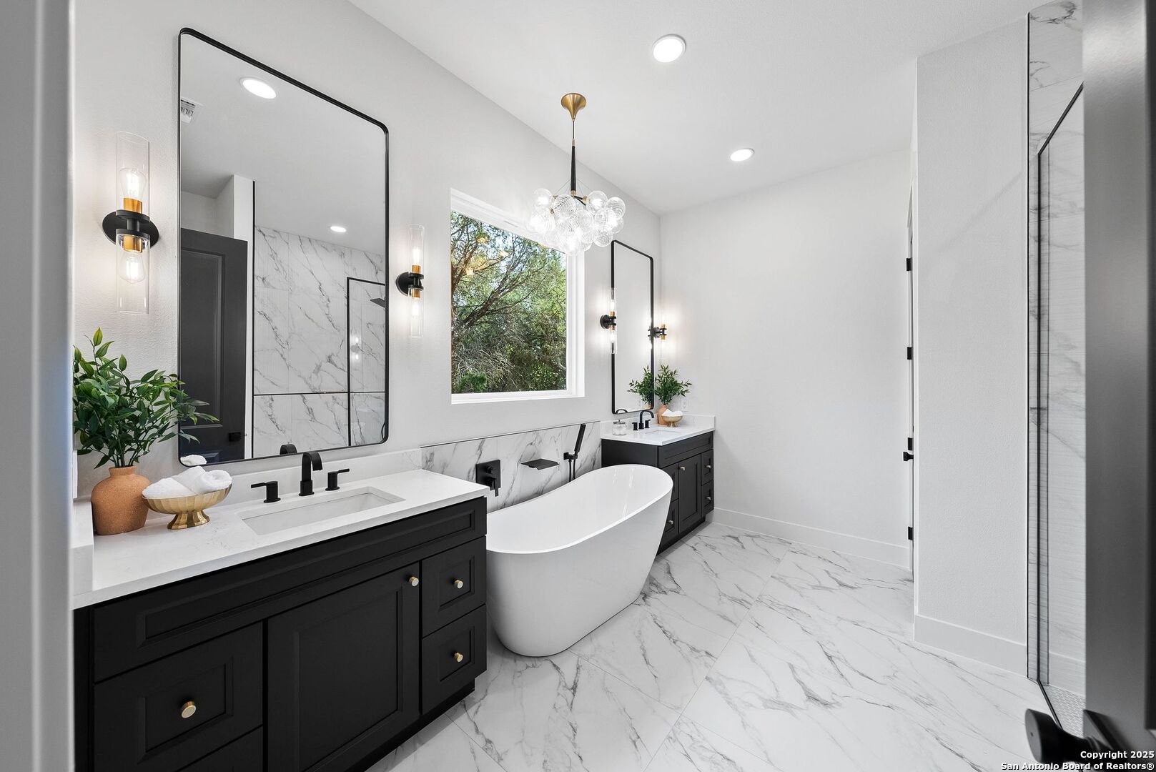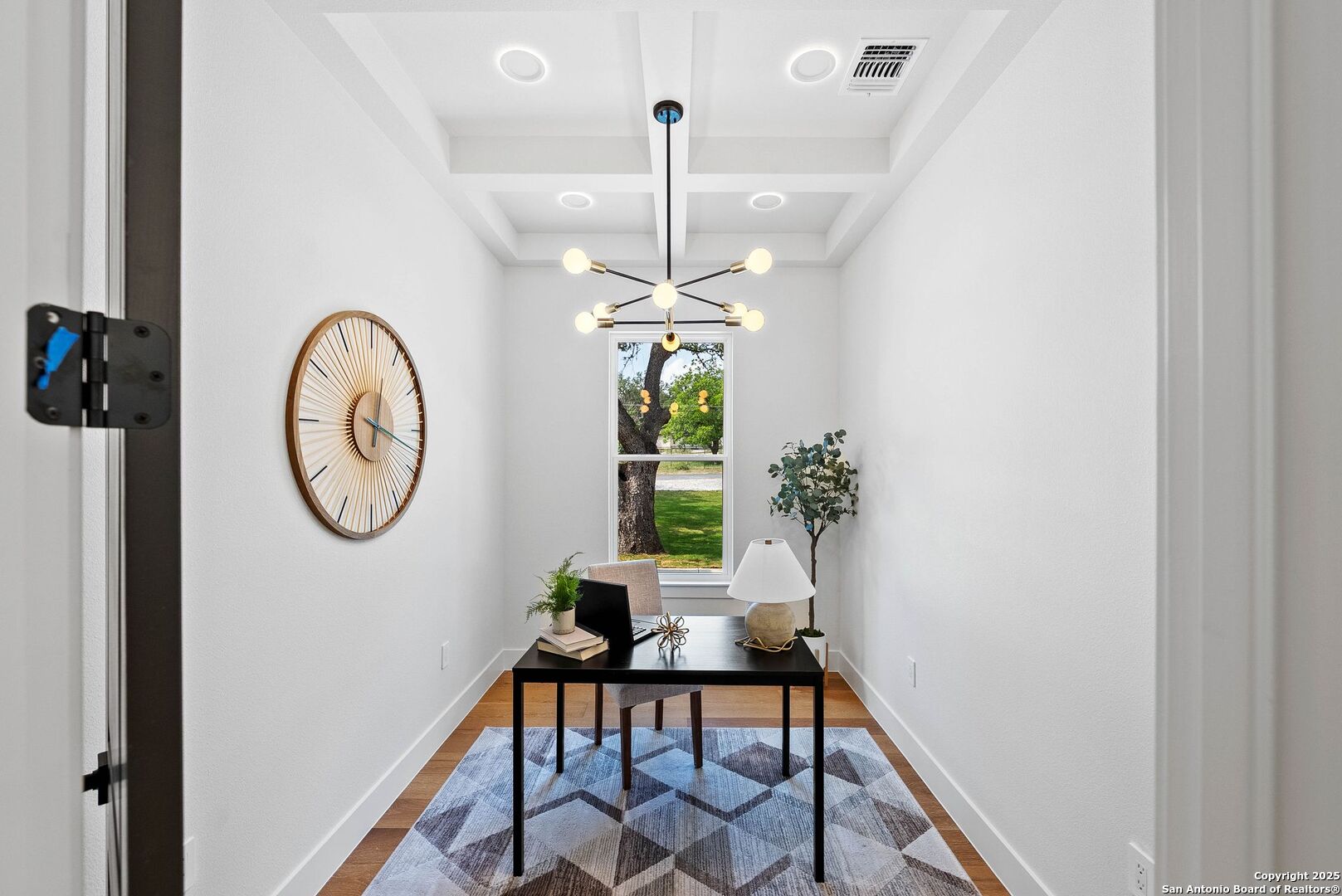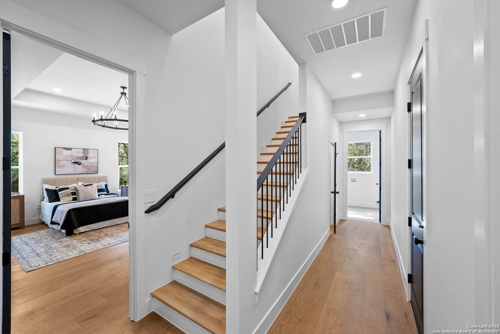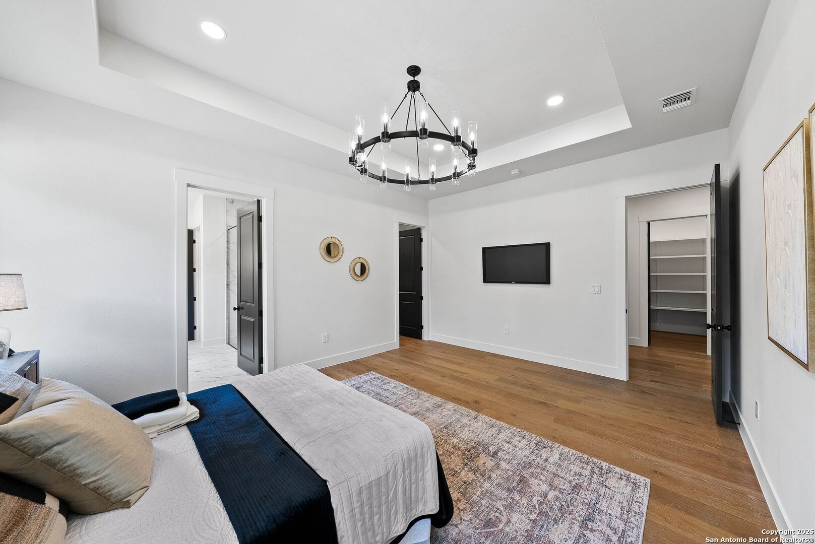 **OPEN HOUSE- This Saturday, from 12pm-3pm*** Featuring a newly built beautiful modern design home with custom finishes in the desired Indian Hills/Leon Springs neighborhood, just minutes away from La Cantera! Sitting on just under 1/2 an acre, this open layout floor plan features all the bells and whistles. Vaulted ceilings and coffered ceilings throughout, along with Hardwood floors on the main level, to include all bedrooms, Primary suite on the main level and the addtional secondary suite upstairs! This 4bd/3.5 bath floor plan is turn key ready for you to move in and comes with the standard 1/2/10 year Builder warranty. The kitchen features an oversized 10' island with custom cabinetry and Thor appliances throughout, including the fridge as well. The gas range features a Pot-filler with a custom vent hood, and scounce lighting around the beautiful window overseeing the kitchen sink. Truly a must see in person-