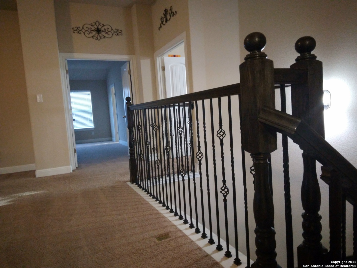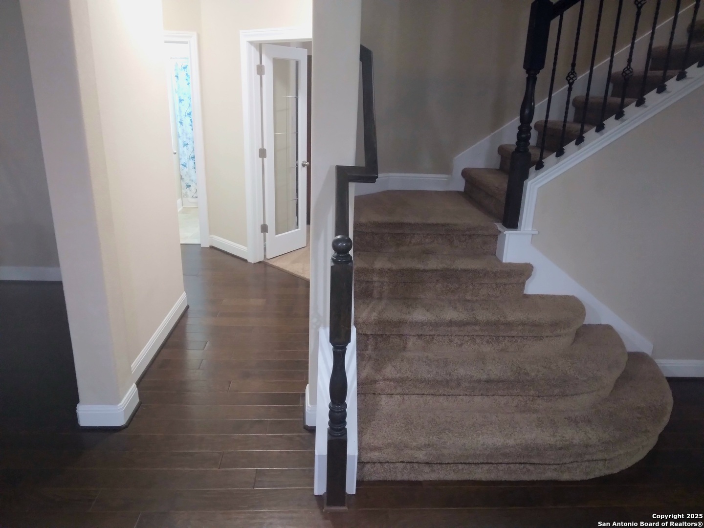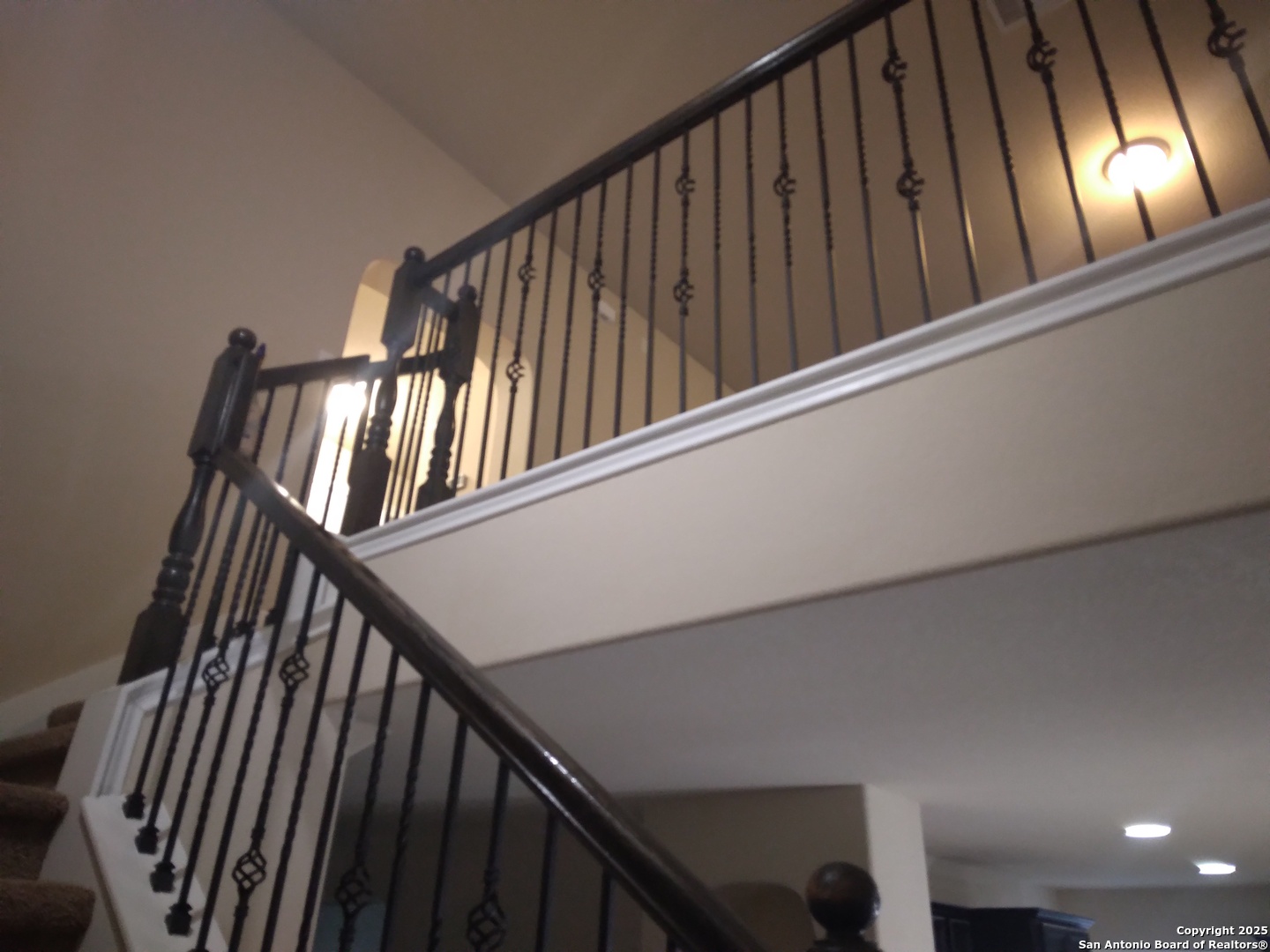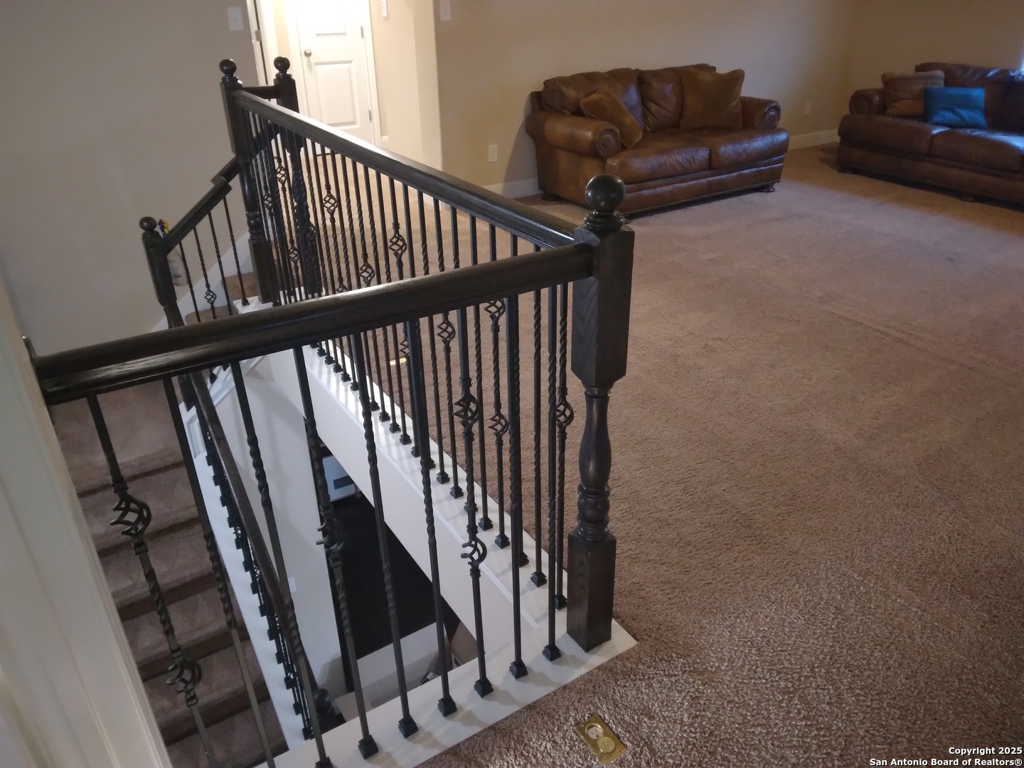 NEW ROOF installed May 2025! This SPACIOUS 2-story stunner (5 bed 4 full baths) features beautiful wood flooring, open/flowing floor plan, and expansive kitchen with walk-in pantry, butler pantry, recessed lighting, plentiful cabinet space, modern backsplash, and granite countertops/island. Lots of closet storage throughout the home with an upsized utility room. Upstairs you will behold large bedrooms with walk-in closets, along with a massive game room & media/flex areas for entertainment. A programmable sprinkler system keeps your entire lawn and trees growing. Modern amenities include a foam-sprayed attic, wooden window blinds, and stylized metal balusters on the stairway. New HVAC fan motor/blades installed March 2025 to keep the AC optimized. This hidden gem of a home is located close to Lackland, medical centers, restaurants/shopping, Sea World, Loop 410, and Hwy 151 to commute downtown expeditiously (and avoid the traffic jams on Hwy 151 to Alamo Ranch).