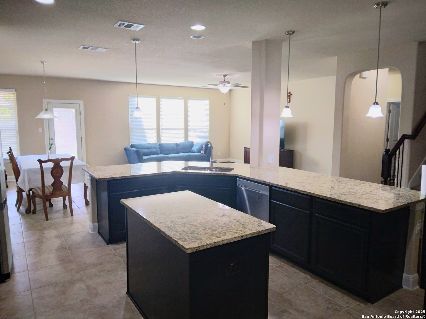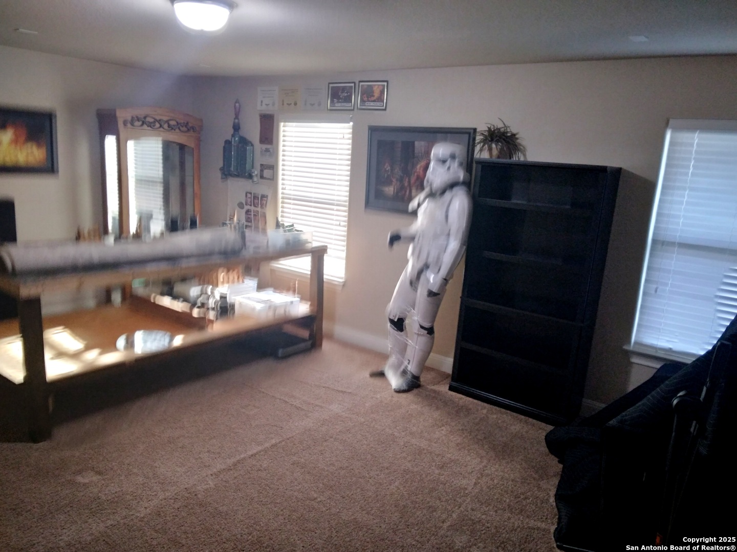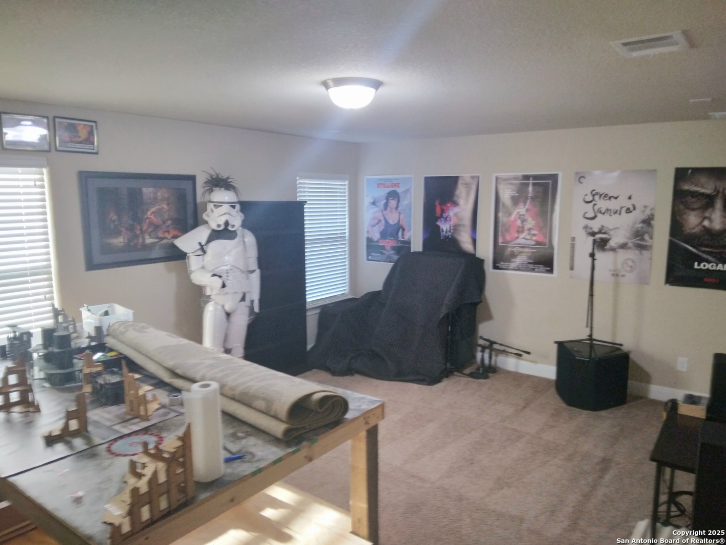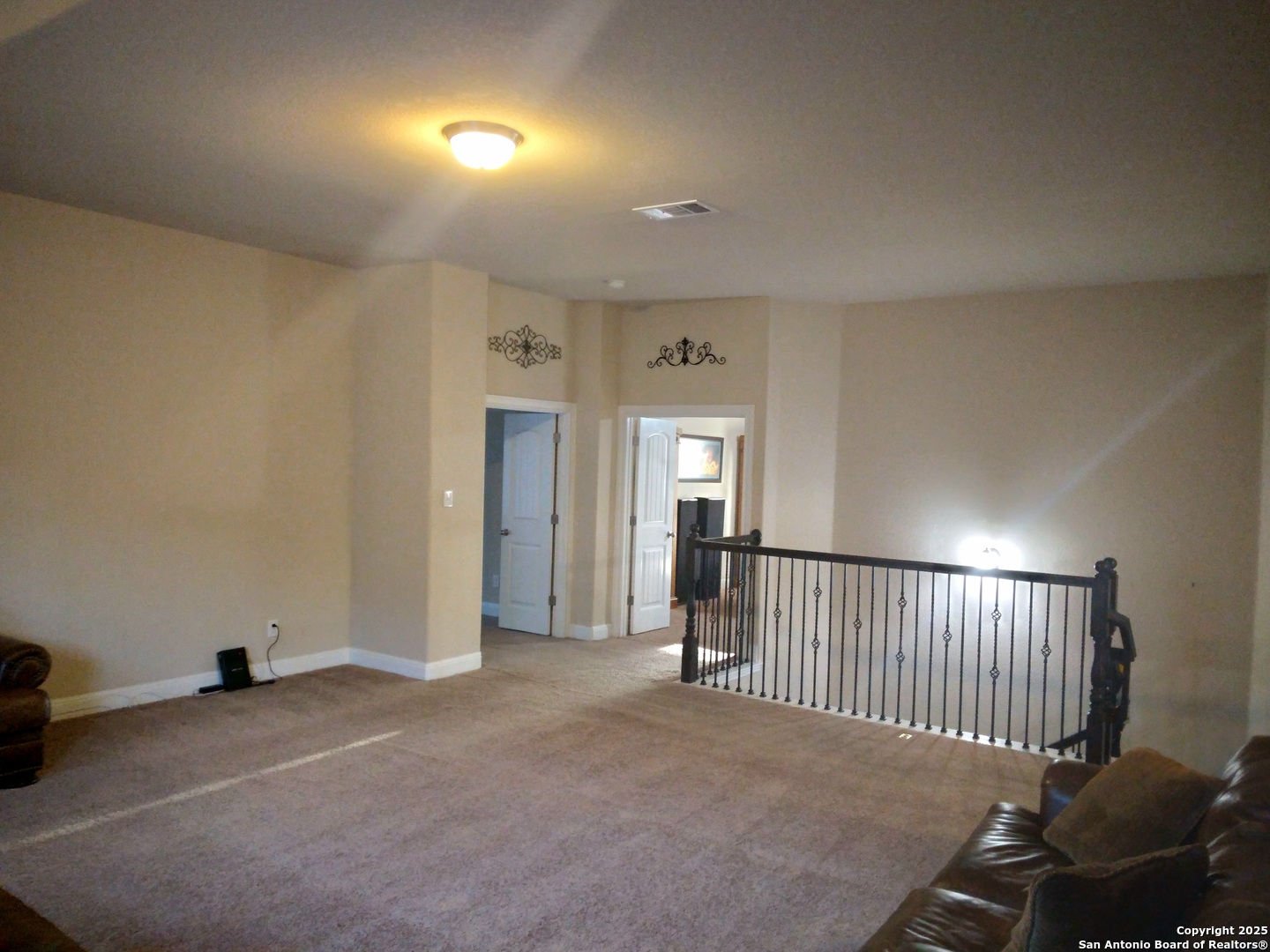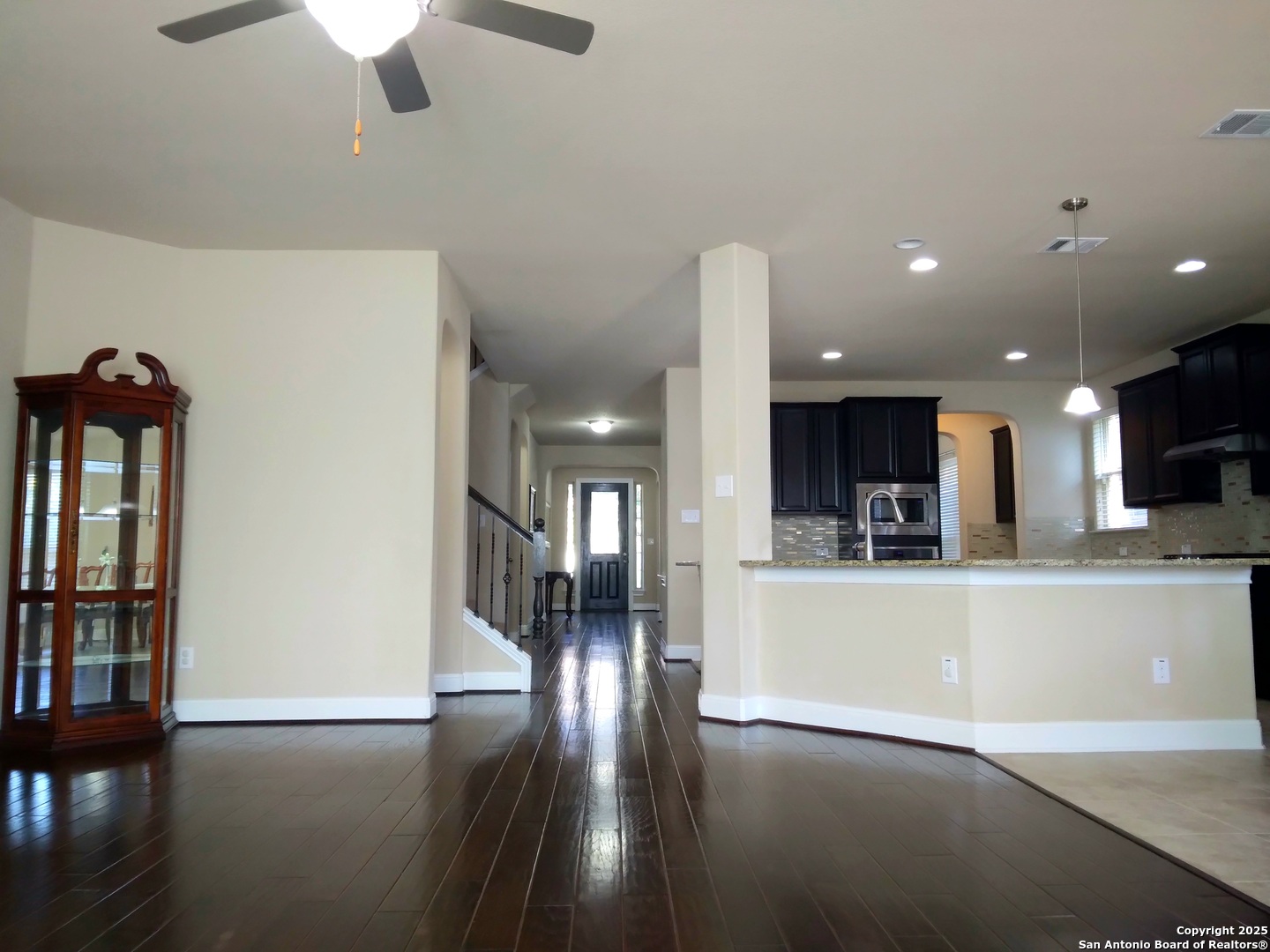 NEW ROOF installed May 2025! This SPACIOUS 2-story stunner (5 bed 4 full baths) features beautiful wood flooring, open/flowing floor plan, and expansive kitchen with walk-in pantry, butler pantry, recessed lighting, plentiful cabinet space, modern backsplash, and granite countertops/island. Lots of closet storage throughout the home with an upsized utility room. Upstairs you will behold large bedrooms with walk-in closets, along with a massive game room & media/flex areas for entertainment. A programmable sprinkler system keeps your entire lawn and trees growing. Modern amenities include a foam-sprayed attic, wooden window blinds, and stylized metal balusters on the stairway. New HVAC fan motor/blades installed March 2025 to keep the AC optimized. This hidden gem of a home is located close to Lackland, medical centers, restaurants/shopping, Sea World, Loop 410, and Hwy 151 to commute downtown expeditiously (and avoid the traffic jams on Hwy 151 to Alamo Ranch).