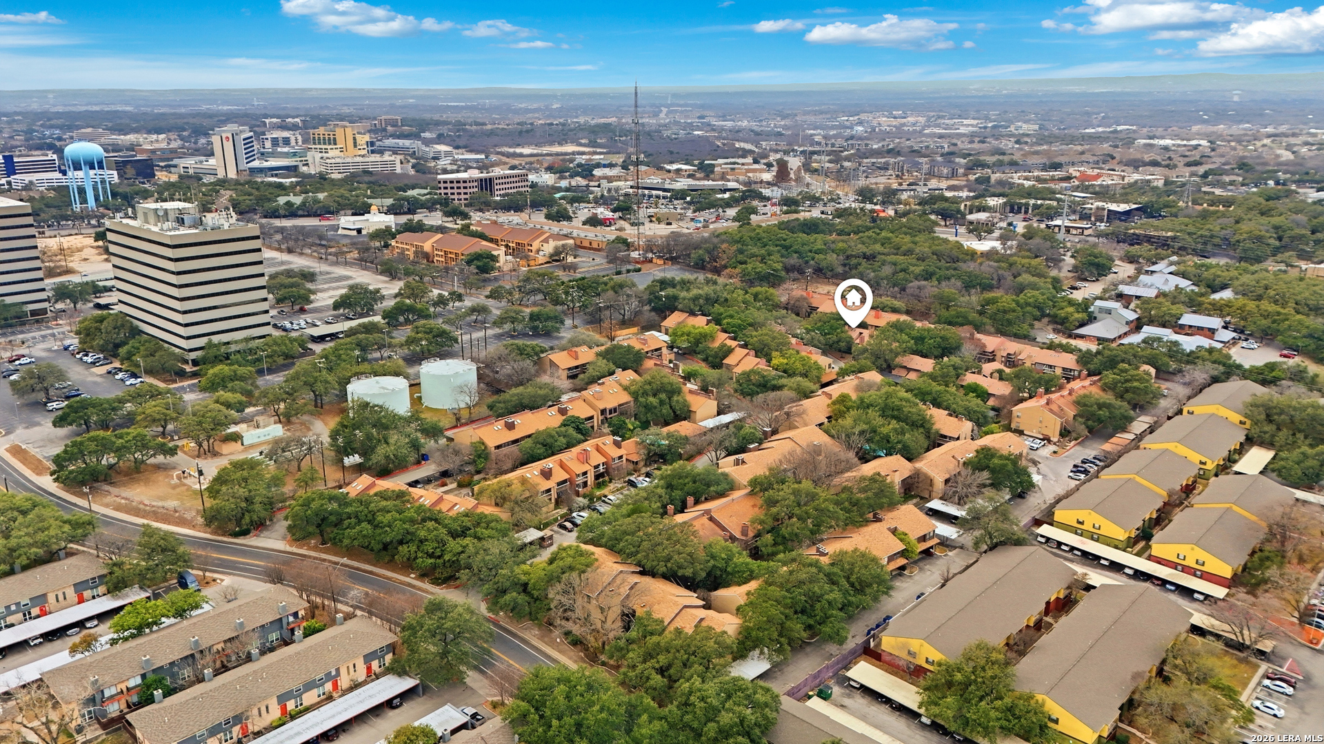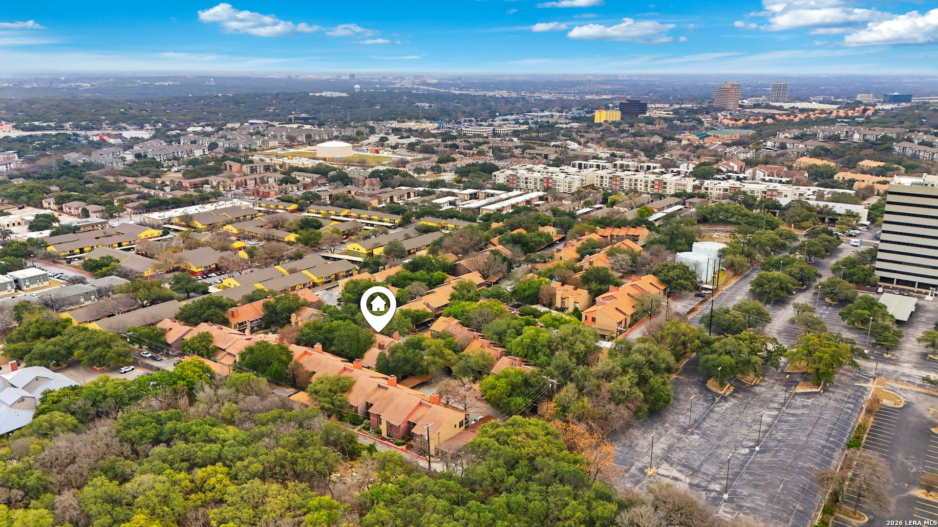 Welcome to this inviting condo in the heart of the Medical Center, offering comfort, convenience, and low-maintenance living. Step inside to an open, light-filled layout with soaring ceilings, a cozy fireplace, and large windows that fill the space with natural light. The dining area flows seamlessly into the kitchen, featuring ample cabinetry and a functional breakfast bar perfect for everyday living or entertaining. The spacious primary bedroom provides a relaxing retreat, while the private covered balcony overlooks the beautifully treed community. Additional highlights include attic space for extra storage and a designated covered parking spot for added convenience. Ideally located near USAA, major highways, shopping, dining, and top medical facilities, this move-in-ready condo offers exceptional value in a prime location.
