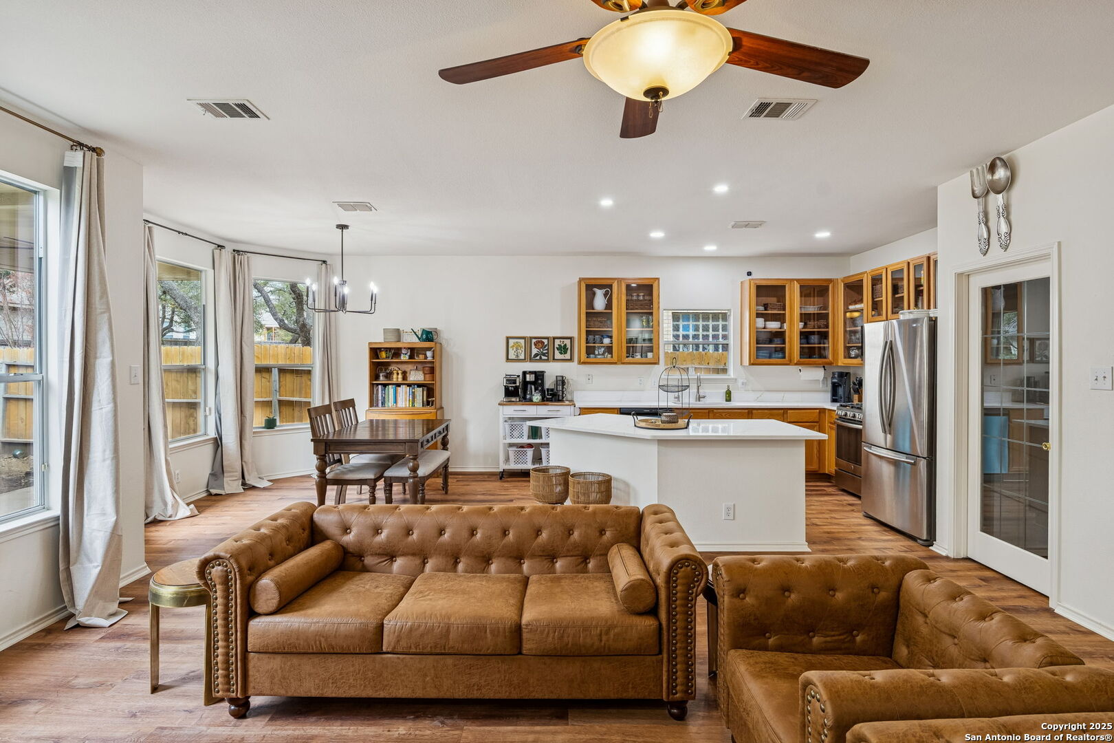 Welcome to your dream home nestled in the vibrant community of Sonoma Ranch in Helotes. This stunning two-story residence The Iron Horse plan, 3025 built by D.R. Horton, boast three bedrooms plus study/office, 2.5 Baths, and a versatile game room upstairs, providing ample space for very comfortable living. Step inside to discover a warm, inviting, open floor plan perfect for everyday living and entertaining. The living area has abundant light and very open to kitchen area. The home has been updated throughout the last 4 years and features 2 HVAC systems, brand new security system with cameras, master bath and kitchen remodelled and more. Please check out the list of updates in the Associated Docs. This home is unique with two HVAC systems and a private door from study to exterior. It sits in an extra large lot on culdesac street.