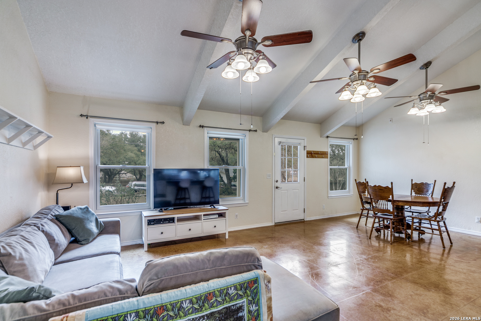 Welcome to 8639 Flint Rock! A Rare opportunity tucked away in the highly sought after Indian Hills Community in Boerne! NO HOA! Perfectly placed in the heart of the Texas Hill Country with nearly half an Acre and only one neighboring property. This is truly where Privacy meets Convenience. Just minutes from Boerne and San Antonio, but feels like you're miles away. Enter to find your BRIGHT, WIDE-OPEN FLOOR PLAN with Vaulted Ceilings, Spacious Breakfast Bar and Well Appointed Dining area. This home provides plenty of space for large gatherings, or cozy family nights in. Grand Primary Bedroom boasts a large Walk-in Closet, Ensuite with Double Vanity and plenty of storage. Really nice sized secondary bedrooms with shared Private Bath. Beaming with NATURAL LIGHT throughout and country VIEWS from every room in the house! Walk out to your SPRAWLING, FULLY FENCED backyard and enjoy evenings sitting out on your DECK stargazing and enjoying the outdoors. Large workshop has plenty of room to start your next project! Meticulously Maintained with New Windows in 2021, New Water Heater in 2021, New Range in 2024 and New Dishwasher in 2025! This is The Best of Both Worlds! We'd love to have you out! Welcome Home!