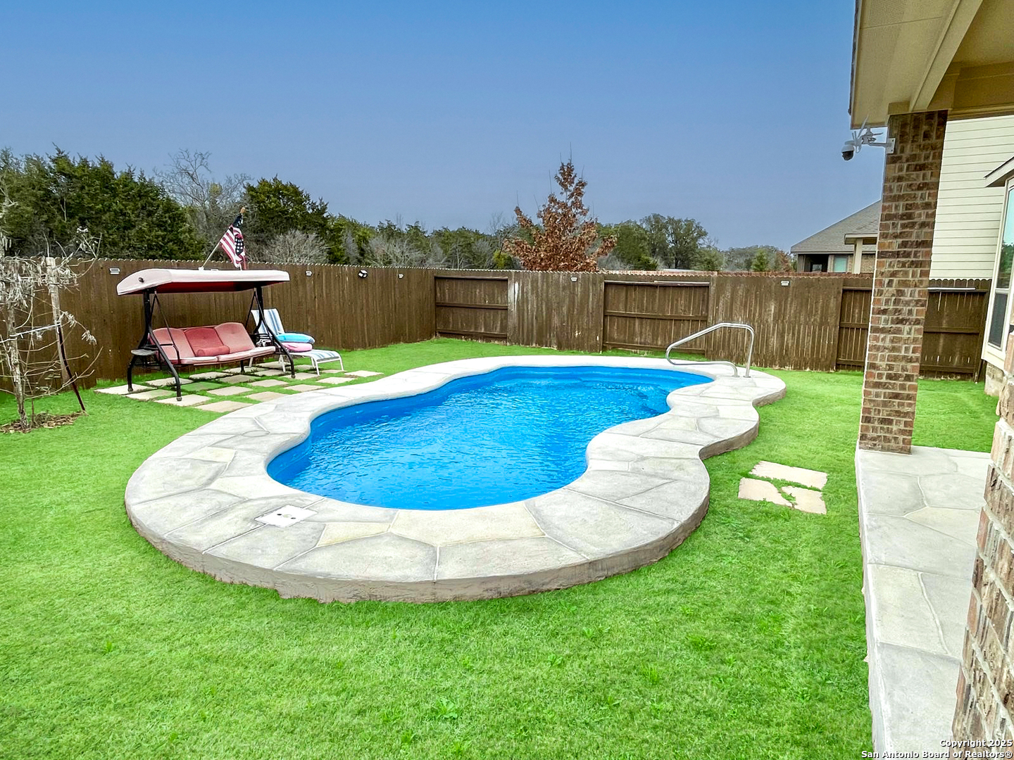 Luxury Living in Prime Location! Step into this stunning 4-bedroom, 3.5-bath home boasting 2,584 sq. ft. of bright, open living space in one of the area's most desirable gated communities. Designed for both comfort and style, the home features soaring ceilings, elegant chandelier lighting, 8-foot doors, and gorgeous marble countertops throughout. The gourmet kitchen centers around a spacious island-perfect for entertaining. Enjoy your own private backyard retreat with a sparkling in-ground pool and included