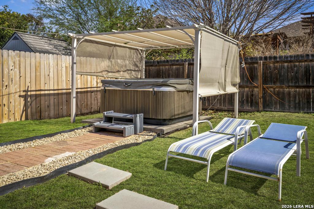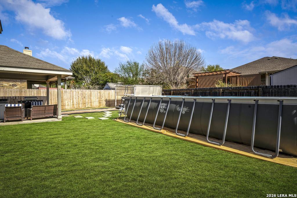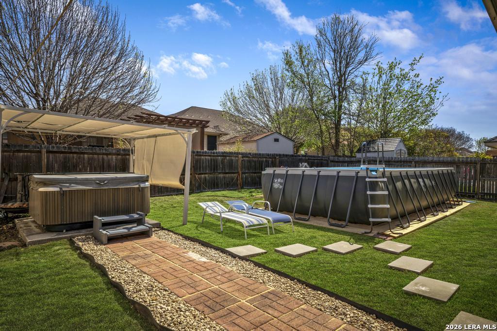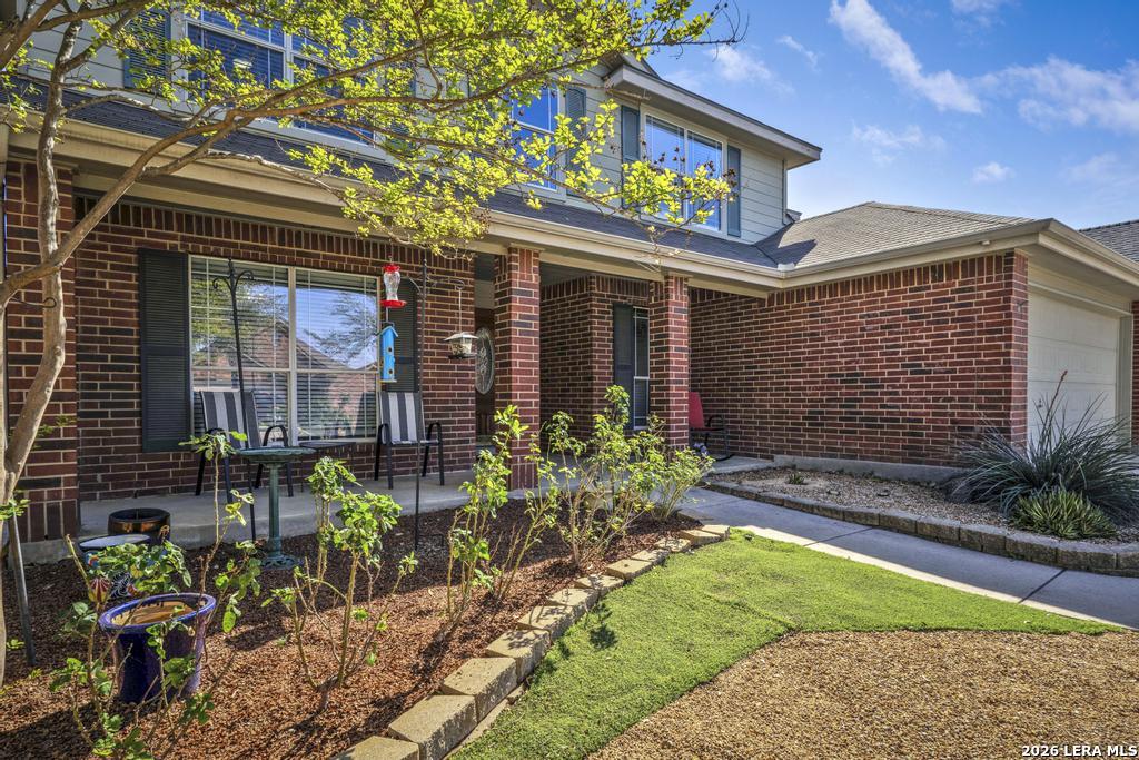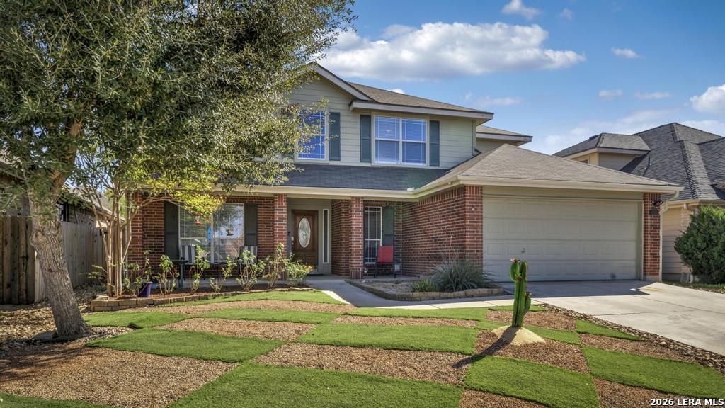 Impeccably maintained two-story brick home tucked on a quiet street. From the inviting covered front porch to the thoughtfully updated interior, this home offers both comfort and style. Step inside to a grand entry with tile flooring, fresh paint, updated lighting, newer carpet downstairs, and oversized ceiling fans throughout. The spacious family room overlooks the kitchen and spectacular backyard, creating an ideal layout for everyday living and entertaining. The kitchen features professionally painted cabinetry, stainless steel appliances, a smooth cooktop, bar seating, and a secondary dining area. An oversized laundry room offers added storage with built-in cabinets and shelving. Upstairs, a large game room and four bedrooms provide generous space, all with ample closets and updated ceiling fans, along with two full baths. The primary suite is located downstairs and offers a private retreat with a spa-style bath, dual vanities, garden tub, separate shower, and a large walk-in closet with built-ins. Outdoor living stands out with a covered patio, pergola over the hot tub, and a well-maintained above-ground pool. Additional upgrades include a xeriscaped front yard with synthetic grass, Ecobee smart thermostat, gutters, new water line to the curb, and updated HVAC components (upstairs unit 2024, downstairs compressor 2026). A rare combination of space, updates, and a peaceful setting.