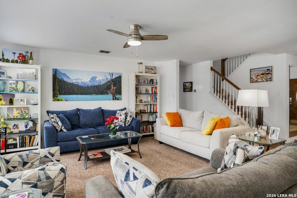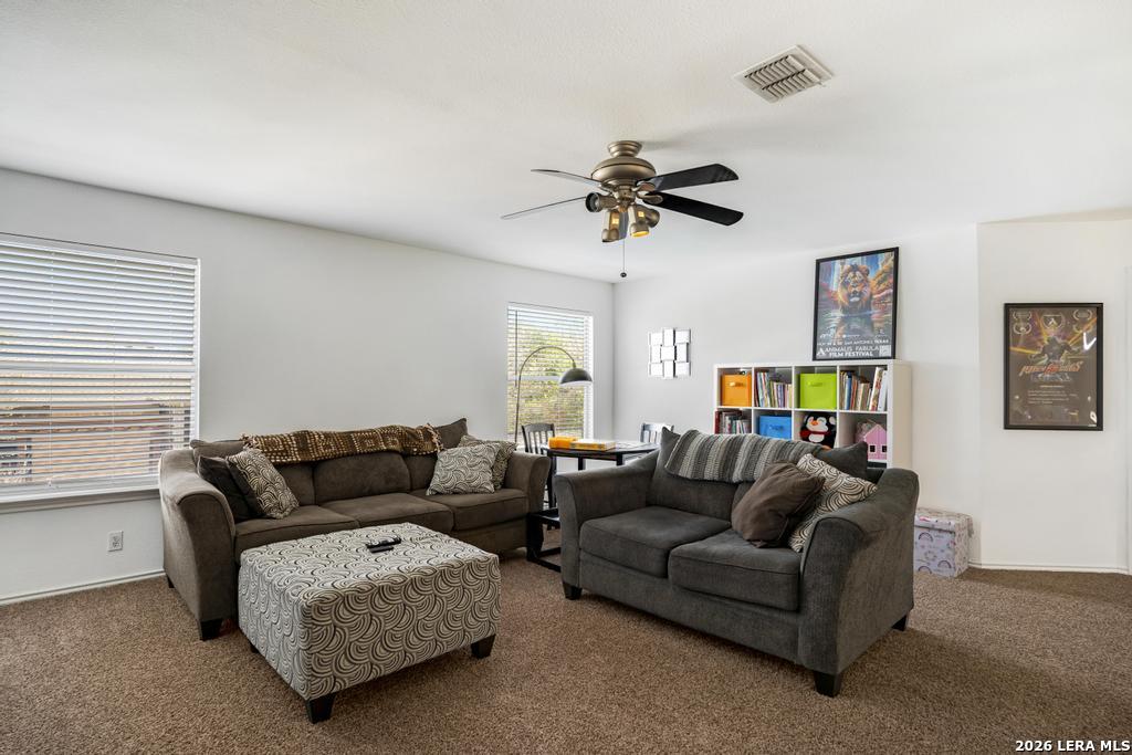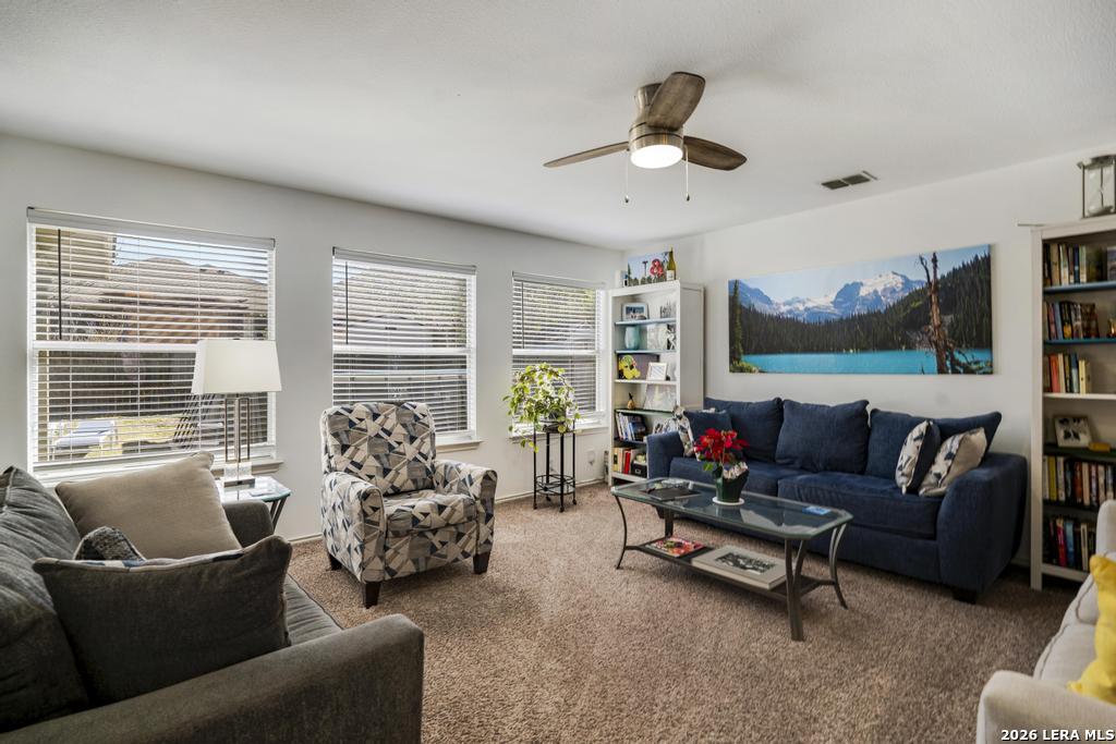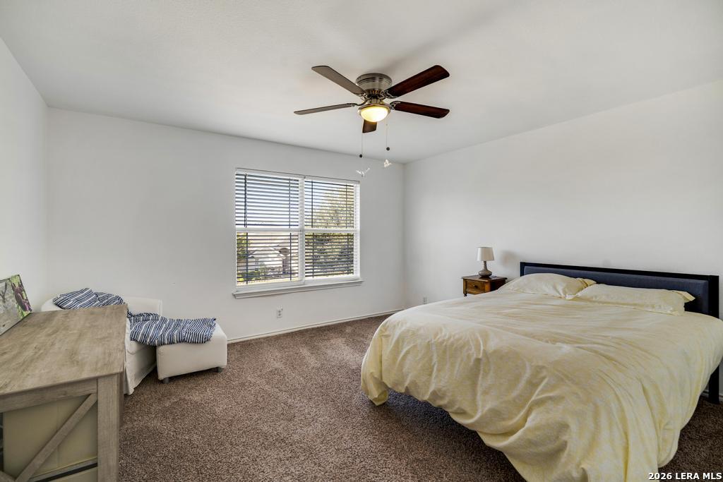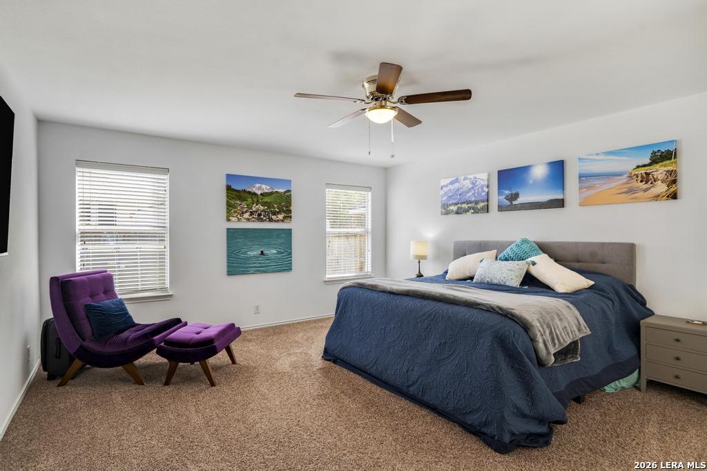 Impeccably maintained two-story brick home tucked on a quiet street. From the inviting covered front porch to the thoughtfully updated interior, this home offers both comfort and style. Step inside to a grand entry with tile flooring, fresh paint, updated lighting, newer carpet downstairs, and oversized ceiling fans throughout. The spacious family room overlooks the kitchen and spectacular backyard, creating an ideal layout for everyday living and entertaining. The kitchen features professionally painted cabinetry, stainless steel appliances, a smooth cooktop, bar seating, and a secondary dining area. An oversized laundry room offers added storage with built-in cabinets and shelving. Upstairs, a large game room and four bedrooms provide generous space, all with ample closets and updated ceiling fans, along with two full baths. The primary suite is located downstairs and offers a private retreat with a spa-style bath, dual vanities, garden tub, separate shower, and a large walk-in closet with built-ins. Outdoor living stands out with a covered patio, pergola over the hot tub, and a well-maintained above-ground pool. Additional upgrades include a xeriscaped front yard with synthetic grass, Ecobee smart thermostat, gutters, new water line to the curb, and updated HVAC components (upstairs unit 2024, downstairs compressor 2026). A rare combination of space, updates, and a peaceful setting.