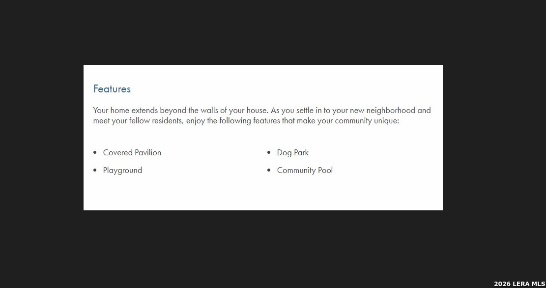 Brand new, energy-efficient home available by Mar 2026! Convert the guest room of the Hughes to a relaxation oasis or a study. From the centrally located laundry room to the gorgeous open kitchen, well thought out design features are found throughout this floorplan. Starting in the $300s, Estancia Ranch spans approximately 170 acres in Far North San Antonio. This community offers exceptional amenities, including a community pool, covered pavilion, playground, and dog park. Conveniently located near Loop 1604 and US 281, residents enjoy easy access to shopping, dining, and entertainment. The community is served by the Comal Independent School District, making it a wonderful place to call home. Each of our homes is built with innovative, energy-efficient features designed to help you enjoy more savings, better health, real comfort and peace of mind. Photo is not of the actual home, but is an inspirational photo of builder's model home and may depict options, furnishings, and/or decorator features that are not included