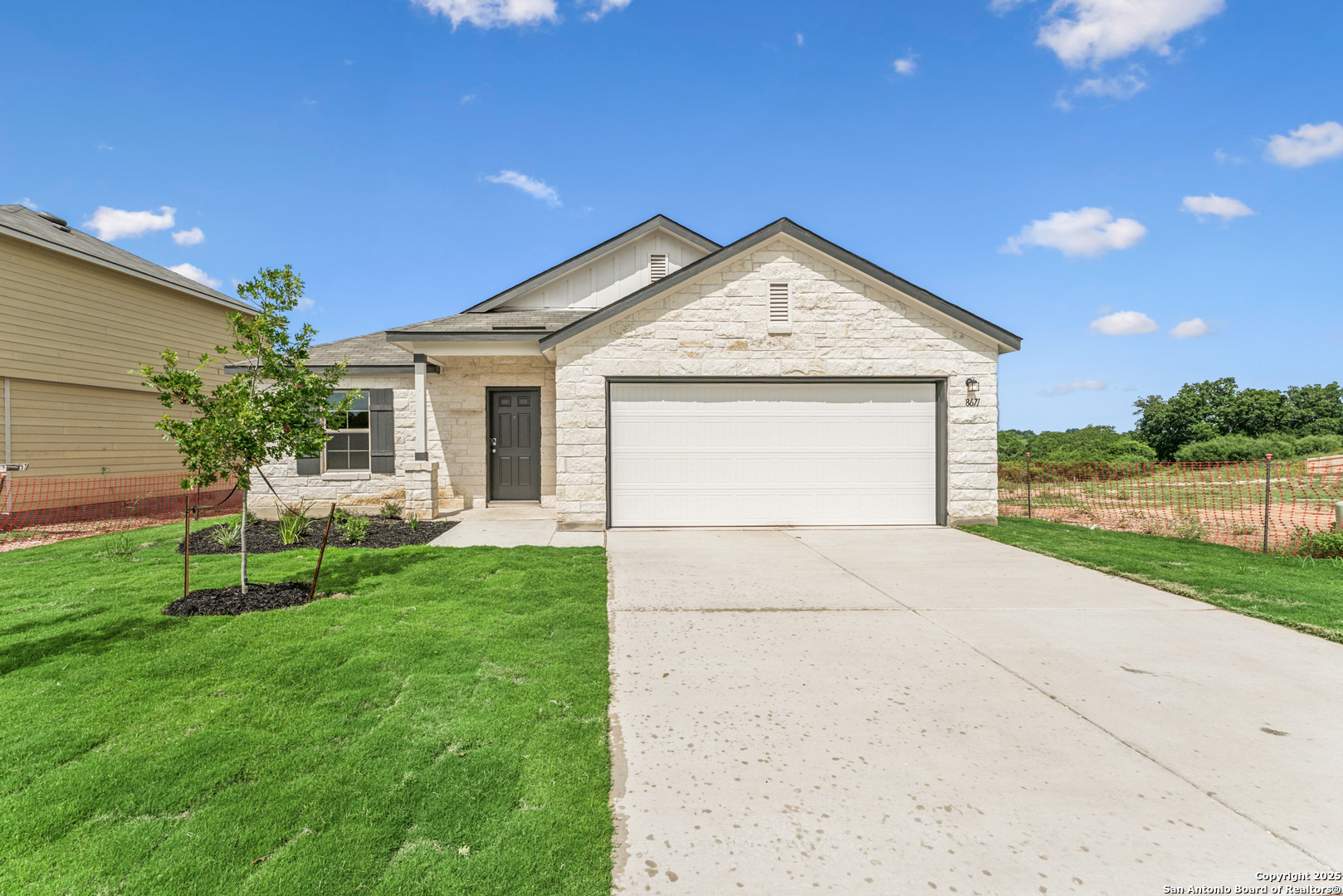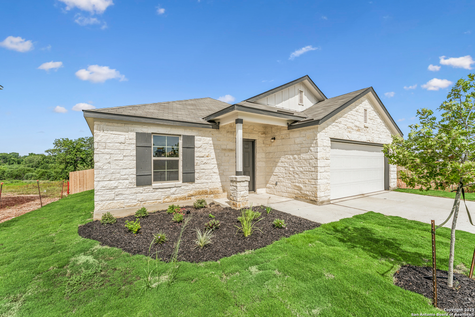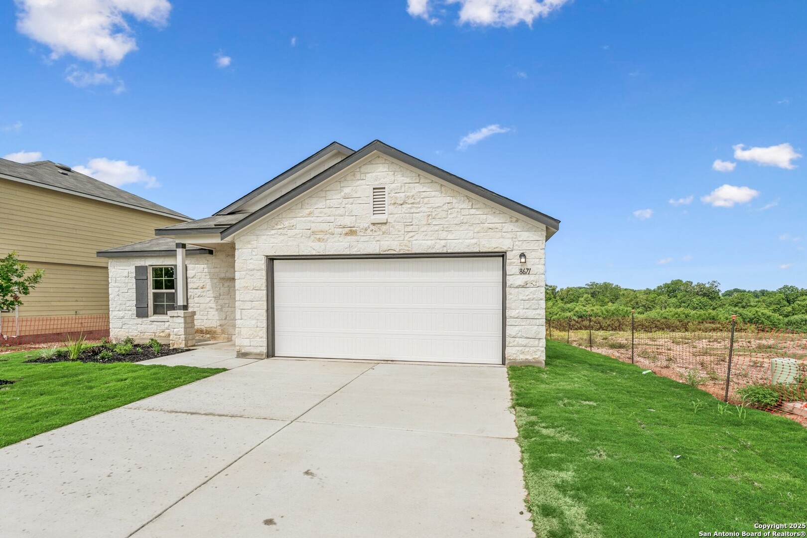 ***READY NOW**** Welcome to 8671 Rucker Pond Trail in the Cinco Lakes community, a beautifully appointed single-story home offering 1,697 square feet of open, functional living space. This 3-bedroom, 2-bathroom home also includes a 2-car garage and a thoughtfully designed layout perfect for modern living. Step through the charming front porch into a spacious foyer that leads to a versatile study-ideal for a home office, study, or creative space. Two secondary bedrooms and a full bathroom are tucked off the front hallway, creating a comfortable and private retreat for family members or guests. At the heart of the home lies an expansive open-concept living space where the kitchen, dining area, and family room flow seamlessly together. The kitchen features a large center island with room for seating, plenty of storage, and views into the dining and living areas, making it easy to cook, entertain, and connect. Just off the family room, step out onto the covered patio-an excellent spot for outdoor dining or relaxing in the shade. The owner's suite is privately situated at the rear of the home and includes a charming bay window, a spacious walk-in closet, and an en-suite bathroom with a walk-in shower, water closet, and dual-sink vanity. Additional highlights include a convenient laundry room, designer-selected finishes, and a smart layout that maximizes every square foot.