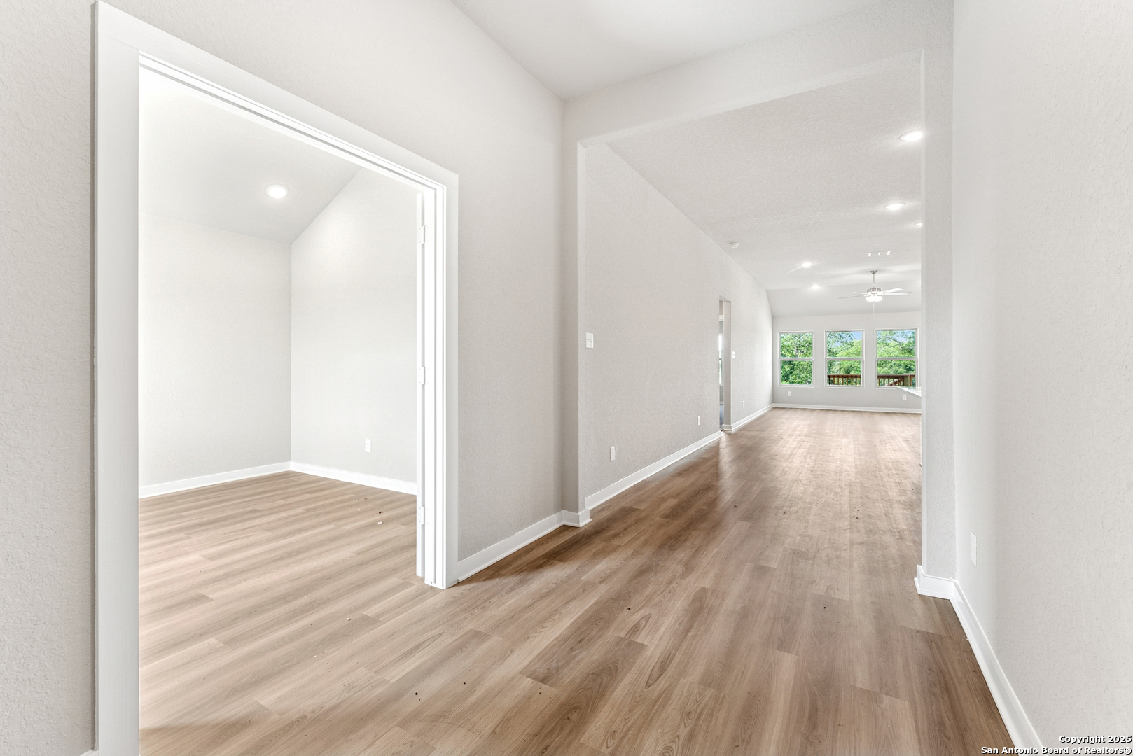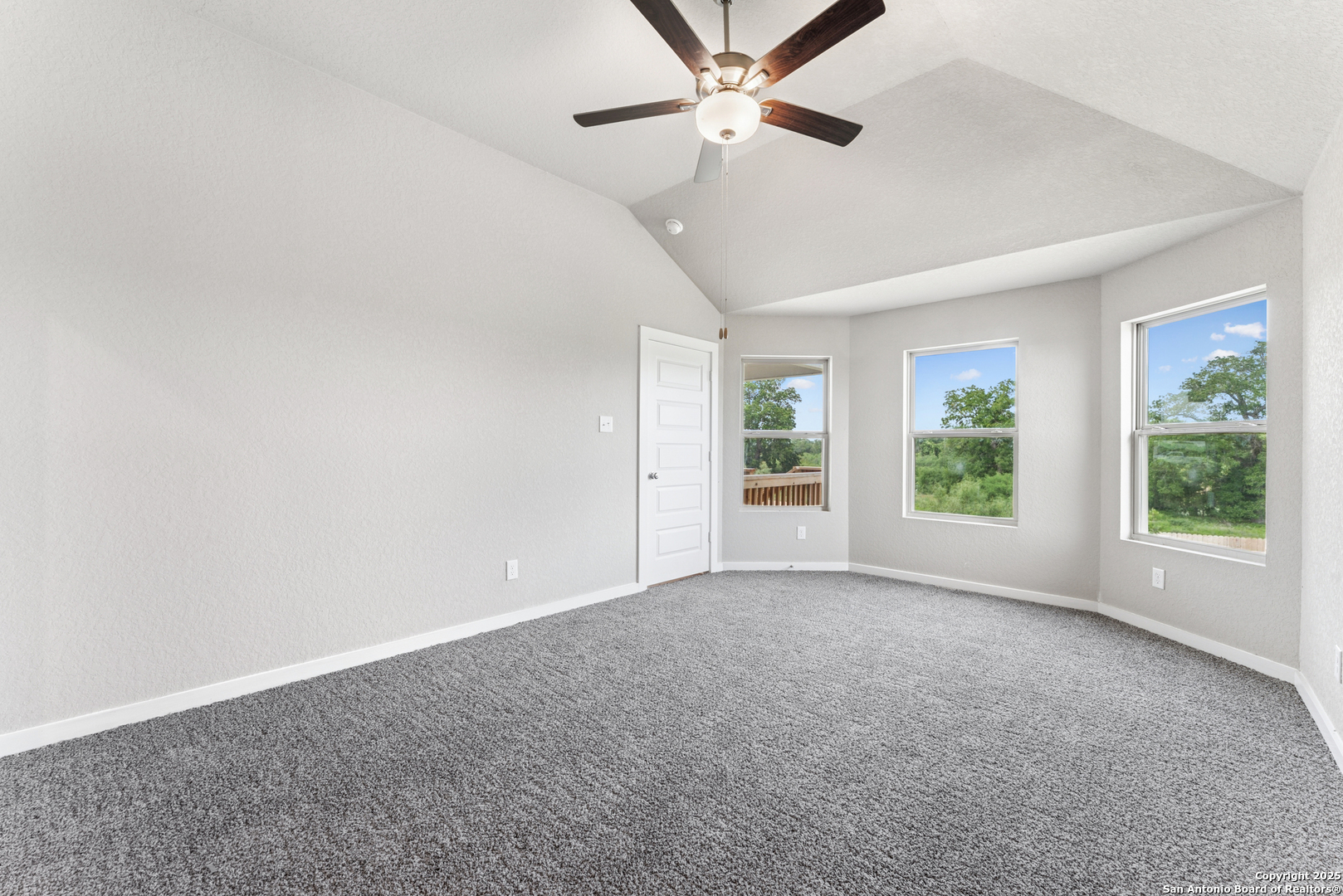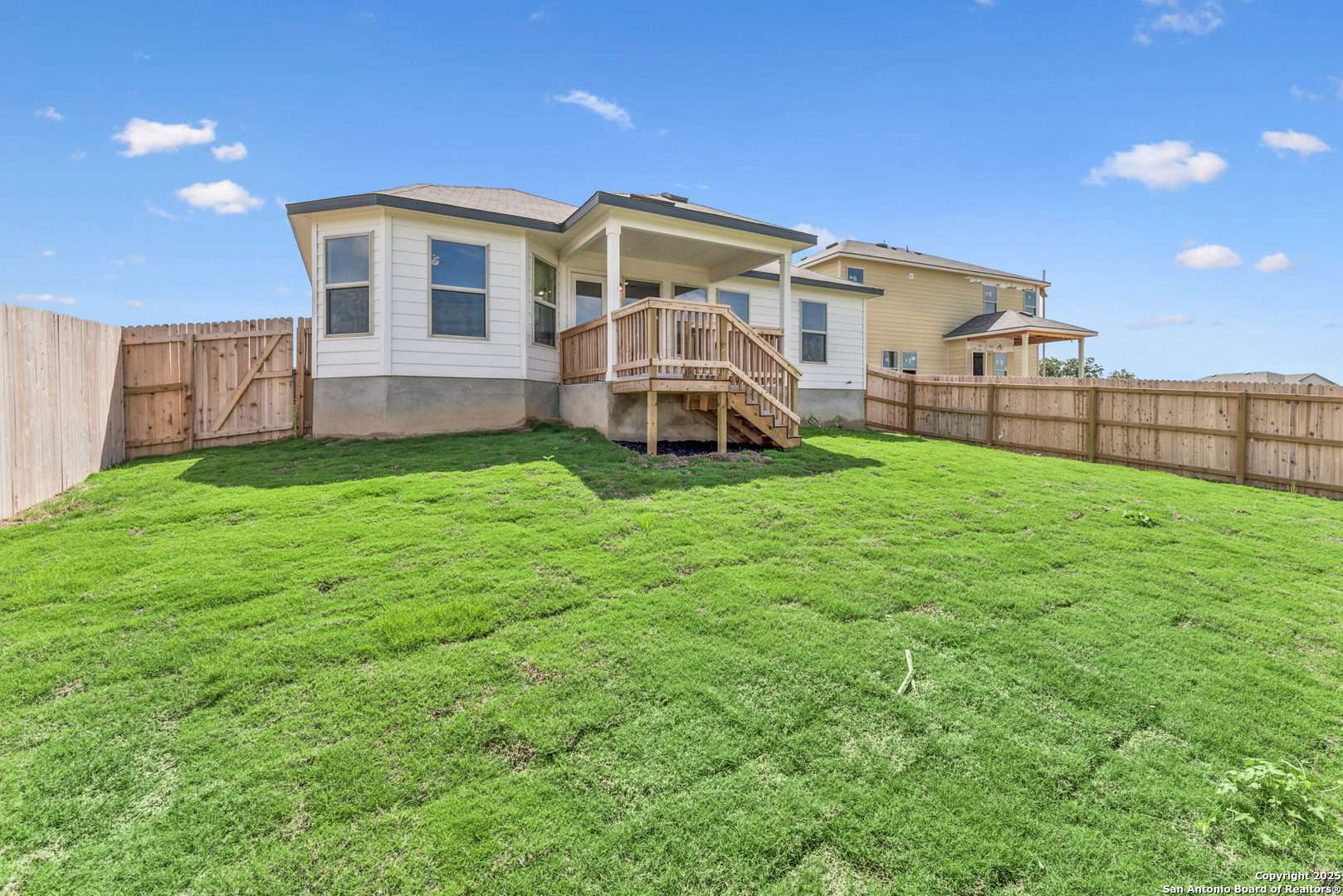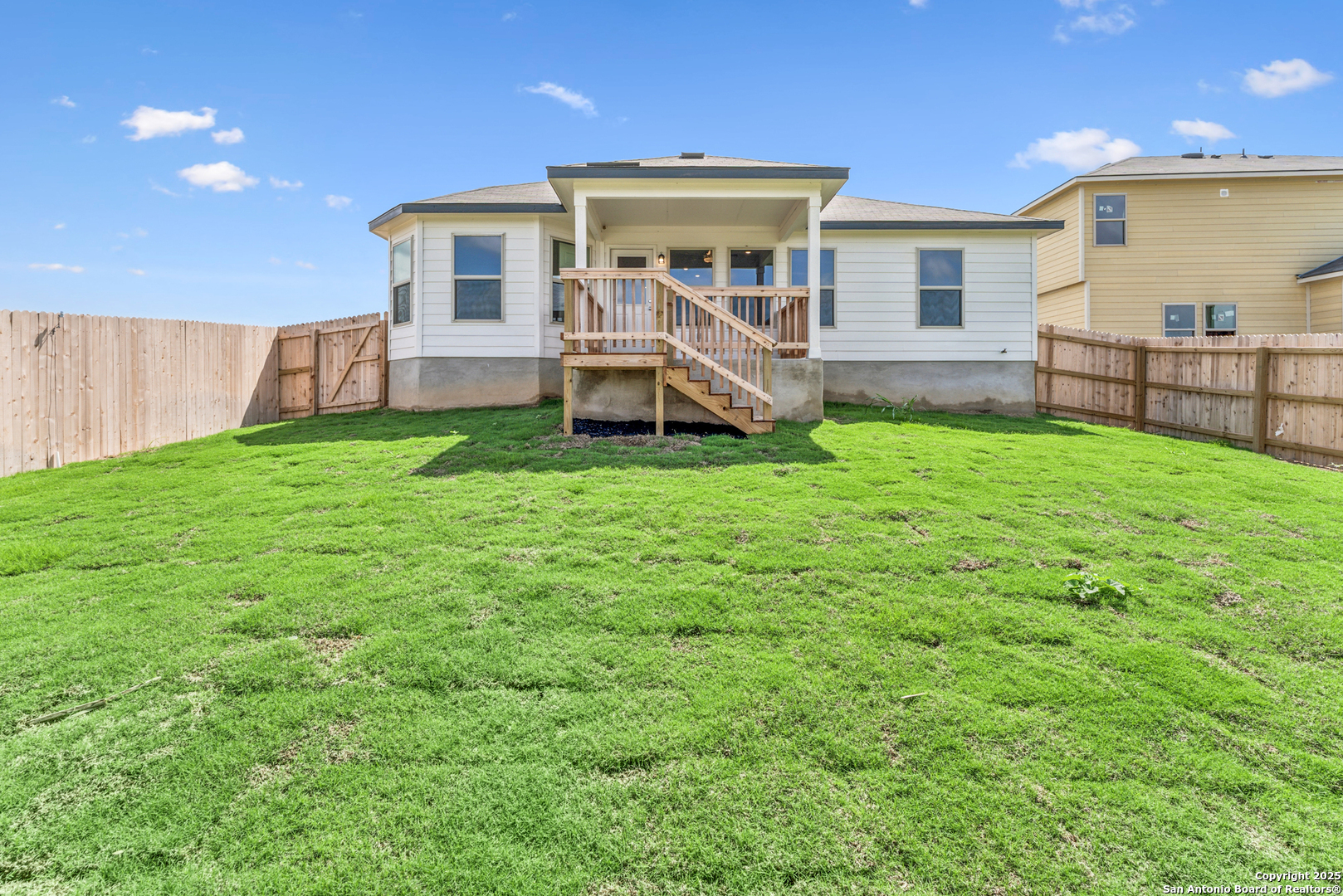 ***READY NOW**** Welcome to 8671 Rucker Pond Trail in the Cinco Lakes community, a beautifully appointed single-story home offering 1,697 square feet of open, functional living space. This 3-bedroom, 2-bathroom home also includes a 2-car garage and a thoughtfully designed layout perfect for modern living. Step through the charming front porch into a spacious foyer that leads to a versatile study-ideal for a home office, study, or creative space. Two secondary bedrooms and a full bathroom are tucked off the front hallway, creating a comfortable and private retreat for family members or guests. At the heart of the home lies an expansive open-concept living space where the kitchen, dining area, and family room flow seamlessly together. The kitchen features a large center island with room for seating, plenty of storage, and views into the dining and living areas, making it easy to cook, entertain, and connect. Just off the family room, step out onto the covered patio-an excellent spot for outdoor dining or relaxing in the shade. The owner's suite is privately situated at the rear of the home and includes a charming bay window, a spacious walk-in closet, and an en-suite bathroom with a walk-in shower, water closet, and dual-sink vanity. Additional highlights include a convenient laundry room, designer-selected finishes, and a smart layout that maximizes every square foot.
