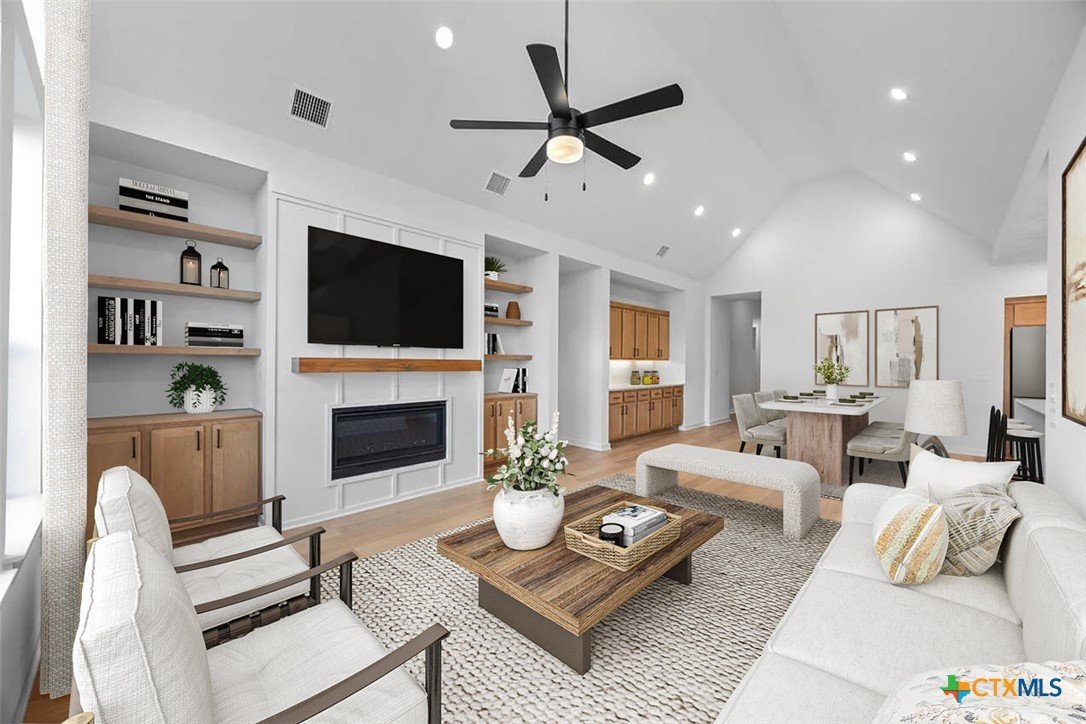 Boasting 2151 sq. ft., this remarkable home seamlessly combines elegance and practicality, featuring 4 bedrooms, 3 bathrooms, and a dedicated study. The inviting entry leads to a spacious living and dining area with a vaulted ceiling and a stunning kitchen, perfect for hosting and everyday living. The split-bedroom layout ensures privacy, while the front-positioned study offers a quiet, secluded workspace. Unwind in the spa-inspired primary bath after a long day. Additional highlights include an extra-deep garage bay, a laundry room with a wall of built-in shelves, and an oversized linen closet, providing abundant storage throughout. Optional upgrades include - - Full bath ILO storage - Enhanced extended outdoor living - Fireplace in living room