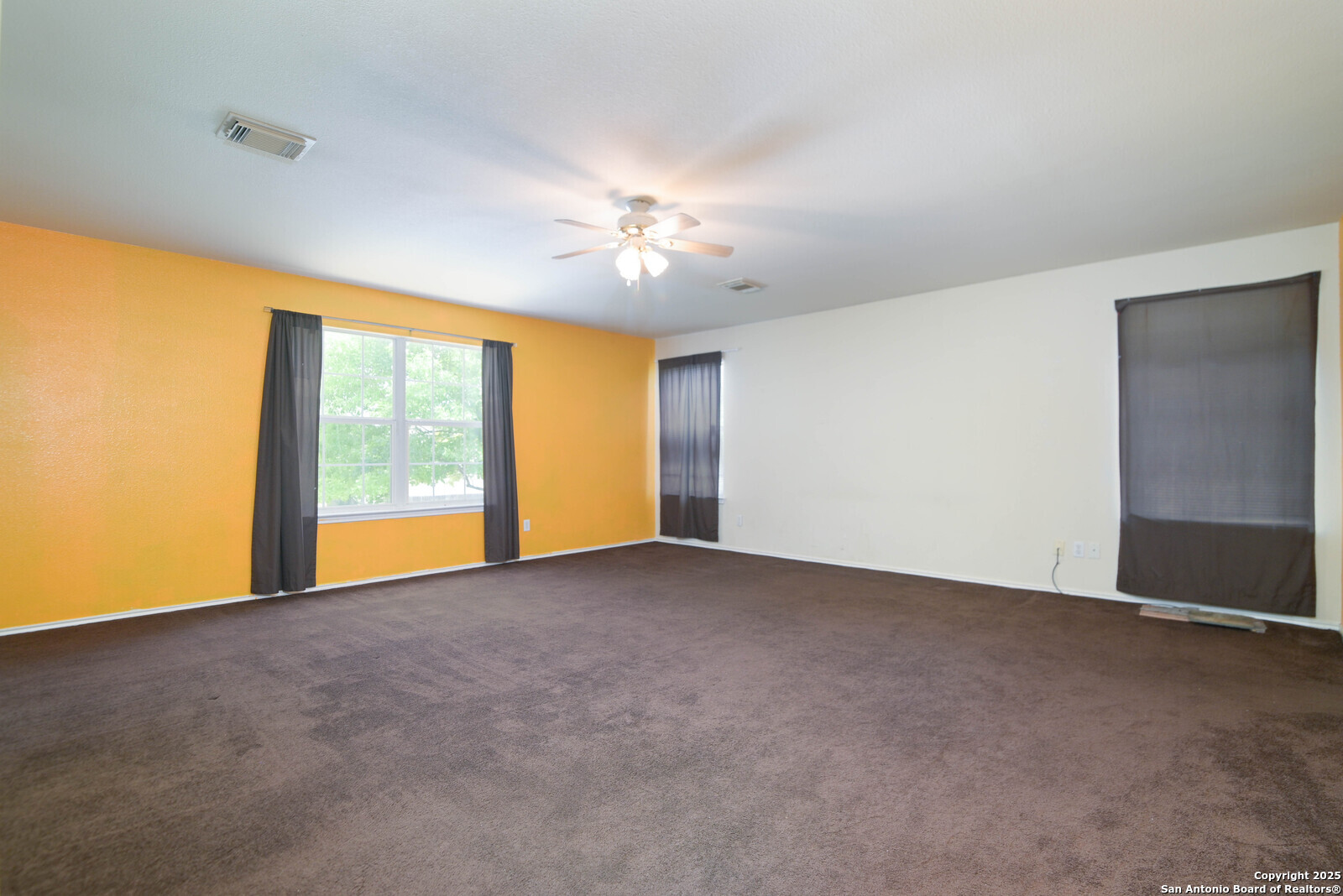 Home is conveniently located on the bend of a cul de sac. Single owner. With 3 bedrooms and 2 1/2 bathrooms, the spacious interior offers a seamless flow between living areas. The upstairs offers a generously sized master bedroom, comfortable loft area, and secondary bedrooms. Room downstairs can be used for study/office or formal dining and is separate from family room.