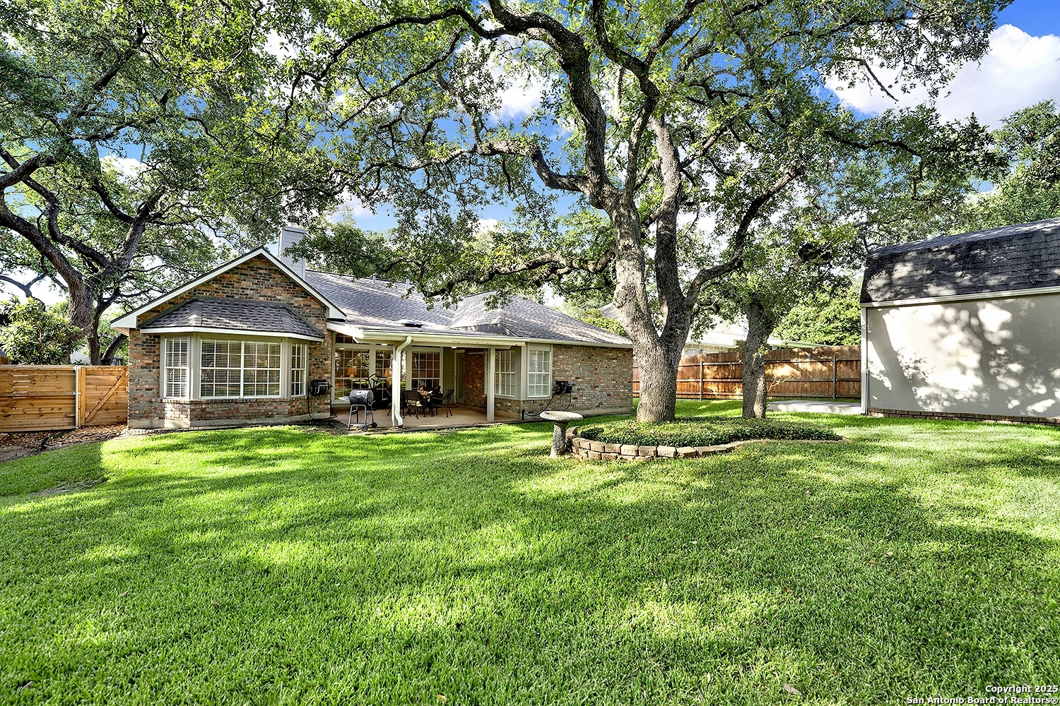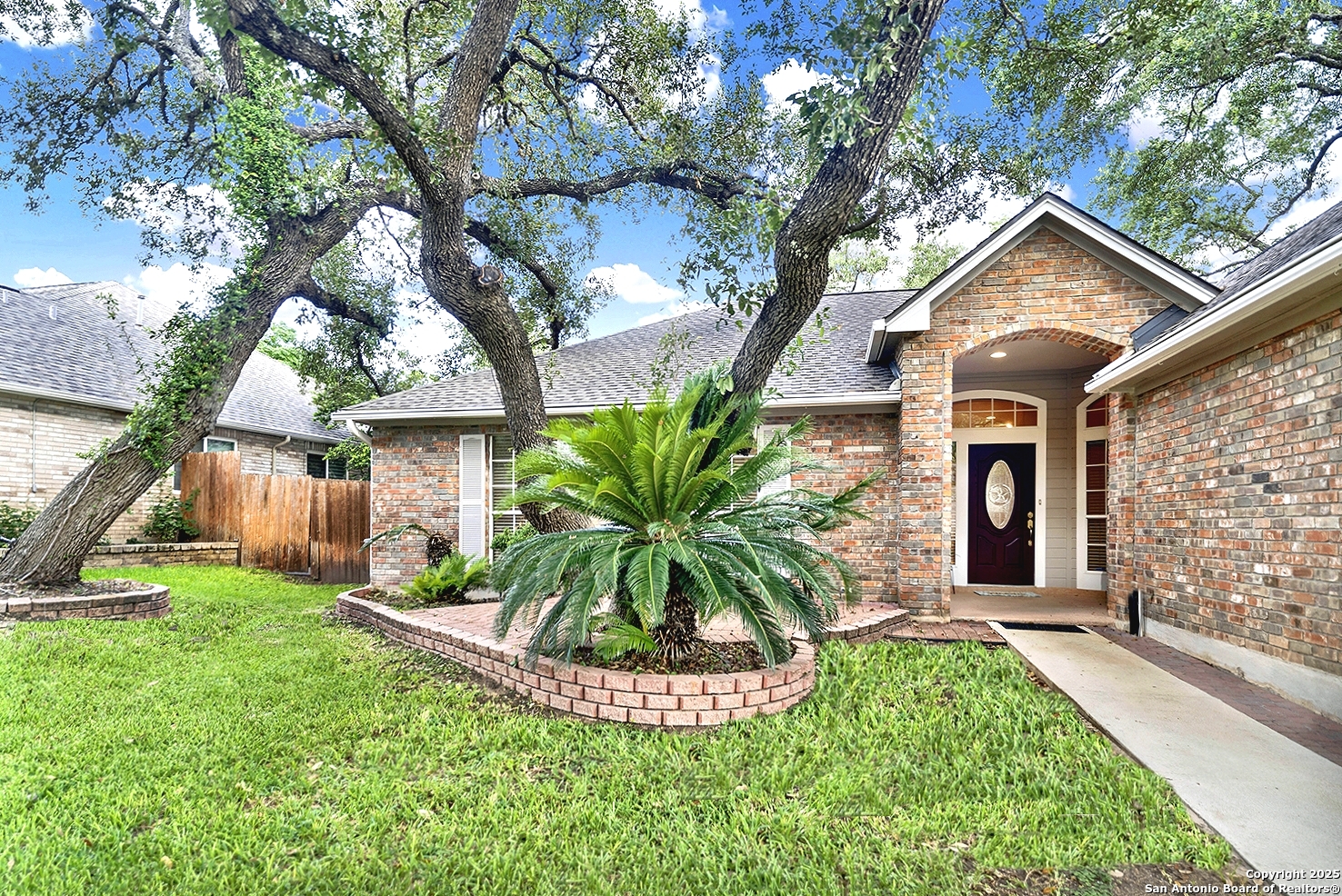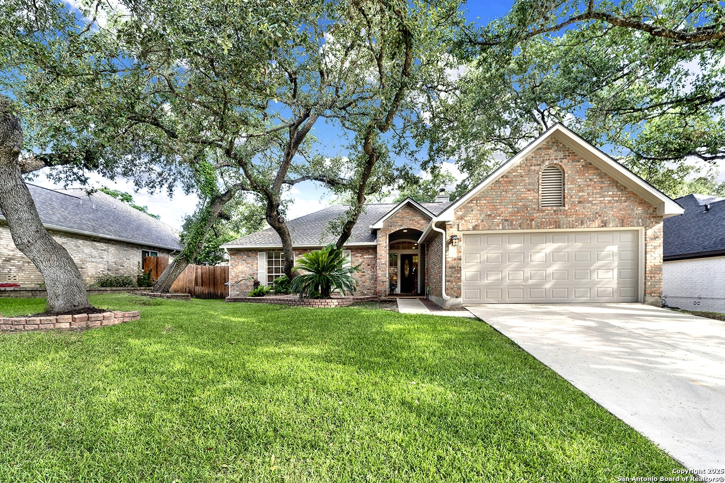 Prepare to fall in love with this immaculate one-story home, featuring four sides brick and perfectly situated on a picturesque cul-de-sac street. As you enter, you'll be greeted by soaring high ceilings that create an airy and inviting atmosphere. This beautiful residence hosts a formal dining area, a large open living room with picture windows that fill the space with natural light, and crown molding that adds an elegant touch. The updated kitchen is a chef's delight, featuring granite counters and custom cabinets designed for optimal storage and practicality. The split master bedroom floor plan offers privacy and comfort, with the spacious master bedroom providing outside access to the serene private covered patio-perfect for enjoying the park-like scenery. The master bath has been updated to include an oversized spa-like walk-in shower, creating a luxurious retreat. Step outside to discover your own private oasis! The covered patio, adorned with a stunning tongue and groove cedar ceiling, skylight, and ceiling fans, is the ideal setting for both entertaining and relaxation. The beautifully landscaped front and back yards, complete with mature oak trees, enhance the tranquil ambiance. Additional highlights include built-in cabinets in both bathrooms, a cozy gas log fireplace, and a welcoming entry foyer. This home has been truly cared for and maintained, exuding wonderful curb appeal. Brand new hot water heater! Don't miss your chance to own this beautifully appointed home in a delightful neighborhood, ready for you to make it your own!