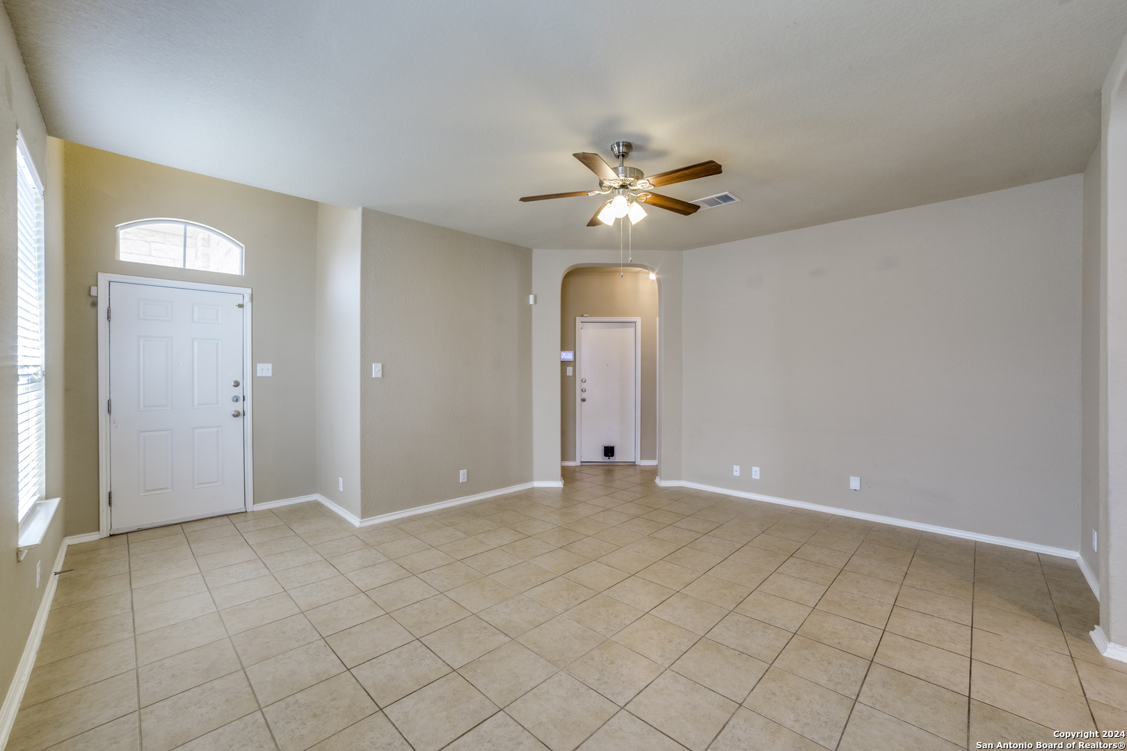 Discover this beautiful move-in-ready 3-bedroom, 2-bathroom home, perfectly situated in Northwest San Antonio with easy access to Highway 1604. Enter into a welcoming living area that flows seamlessly into an open kitchen, complete with a cozy dining area and a large pantry. Off the entrance, an additional room serves perfectly as an office or guest bedroom, providing flexibility and convenience. The spacious primary suite and high ceiling in the secondary bedroom create a comfortable and airy atmosphere. Outside, a large backyard shaded by a mature tree offers a peaceful retreat or the perfect space for entertaining. This home combines charm, functionality, and a fantastic location near all the best that San Antonio has to offer.