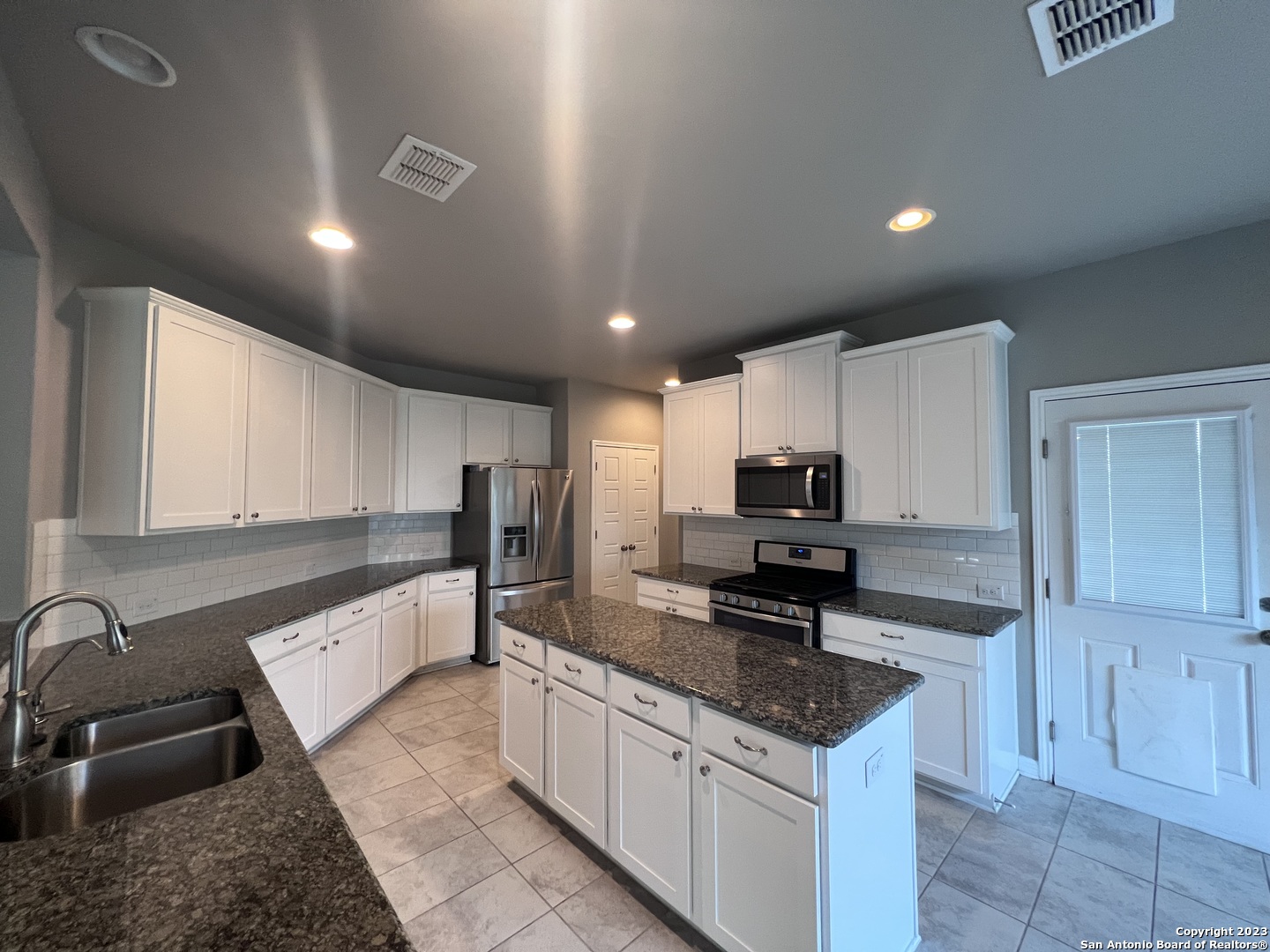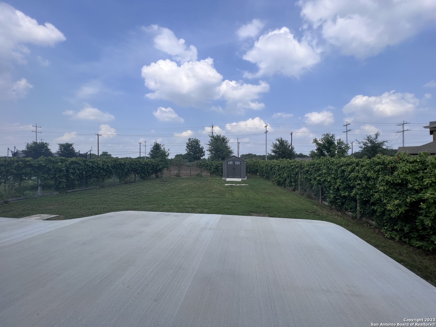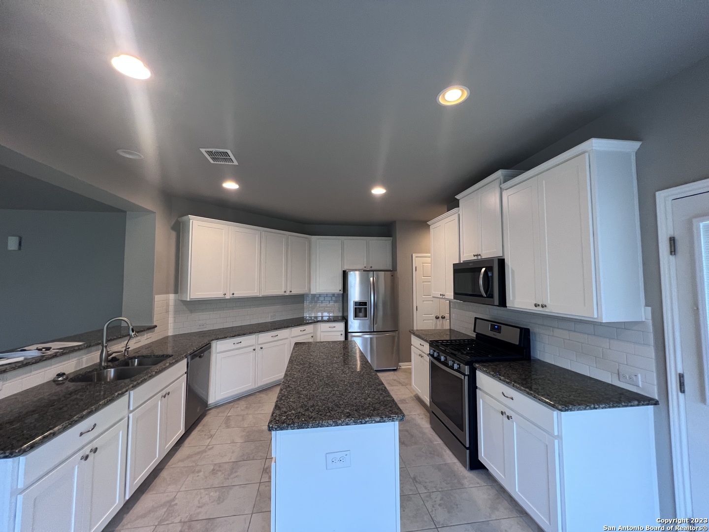 Amazing home close to Randolph AFB, in The Crossvine, also close to 4 schools in the area. This home has an open floor plan with the three guest bedroom towards the front of the home with full bath to share. Huge open living, with attached entertainment unit, dining, and kitchen toward the back of the home. The master is off of the living room, with two walk in closet, double separate vanity and a walk in shower. The kitchen has granite countertops with a gas stove, dishwasher, disposal, microwave and a refrigerator the owner has left as a convenience. The owner has also left the washer and dryer to use. Large back yard with a covered patio, and storage shed. This home will be available for move in the first part of April with approved application.