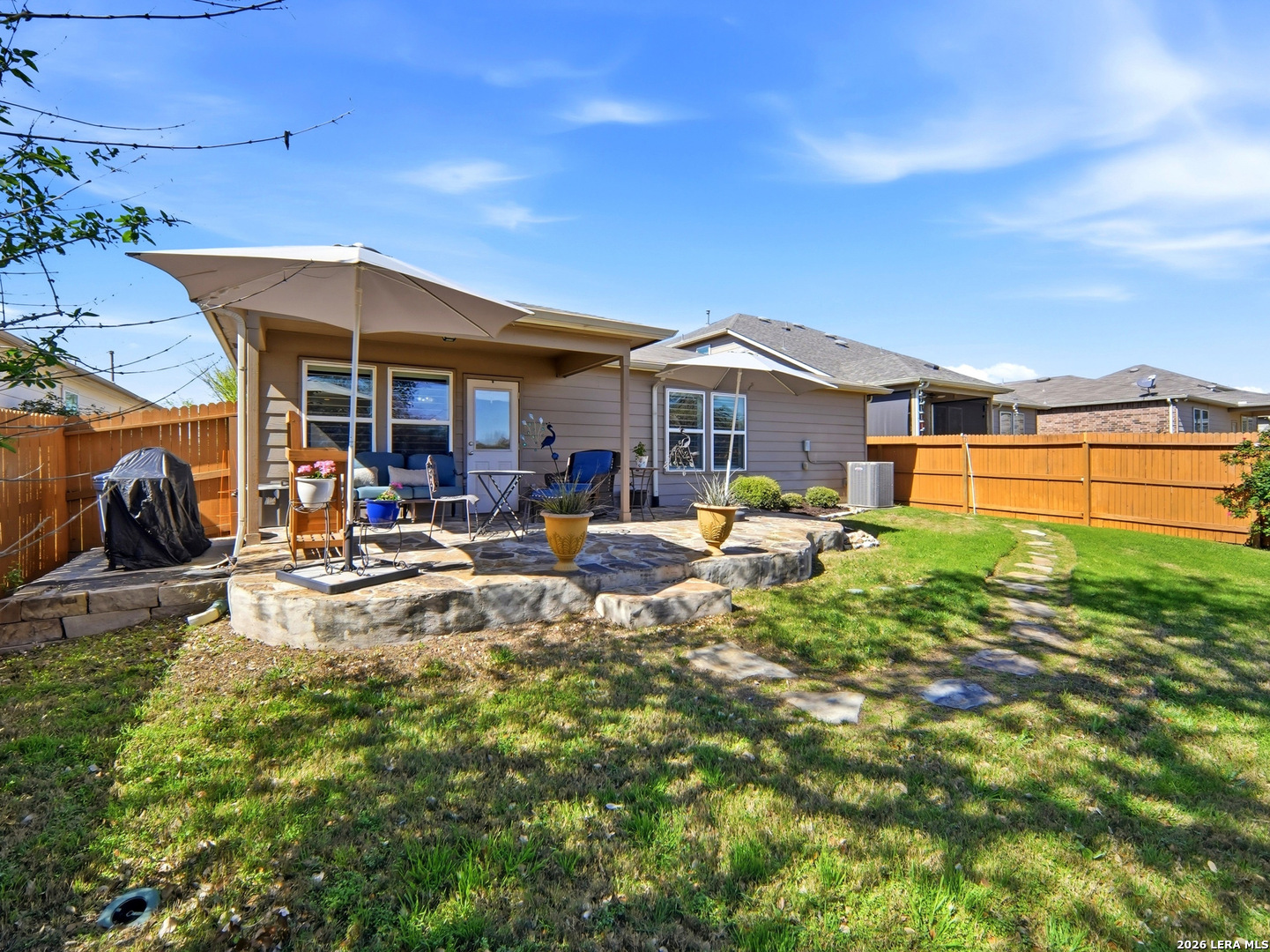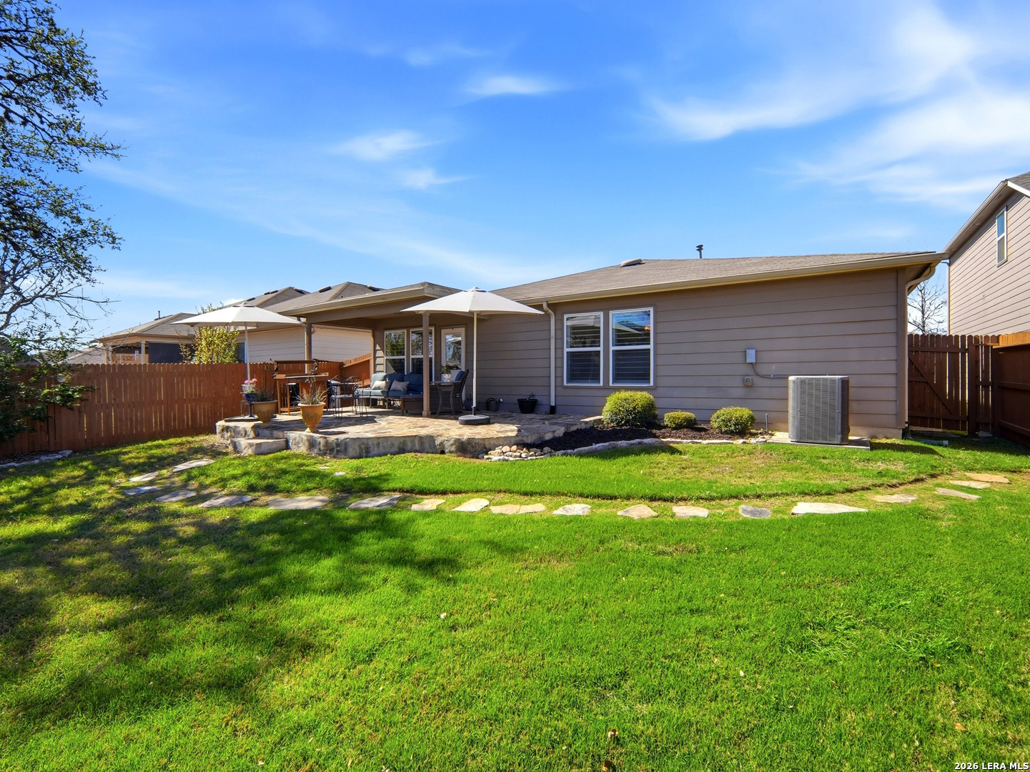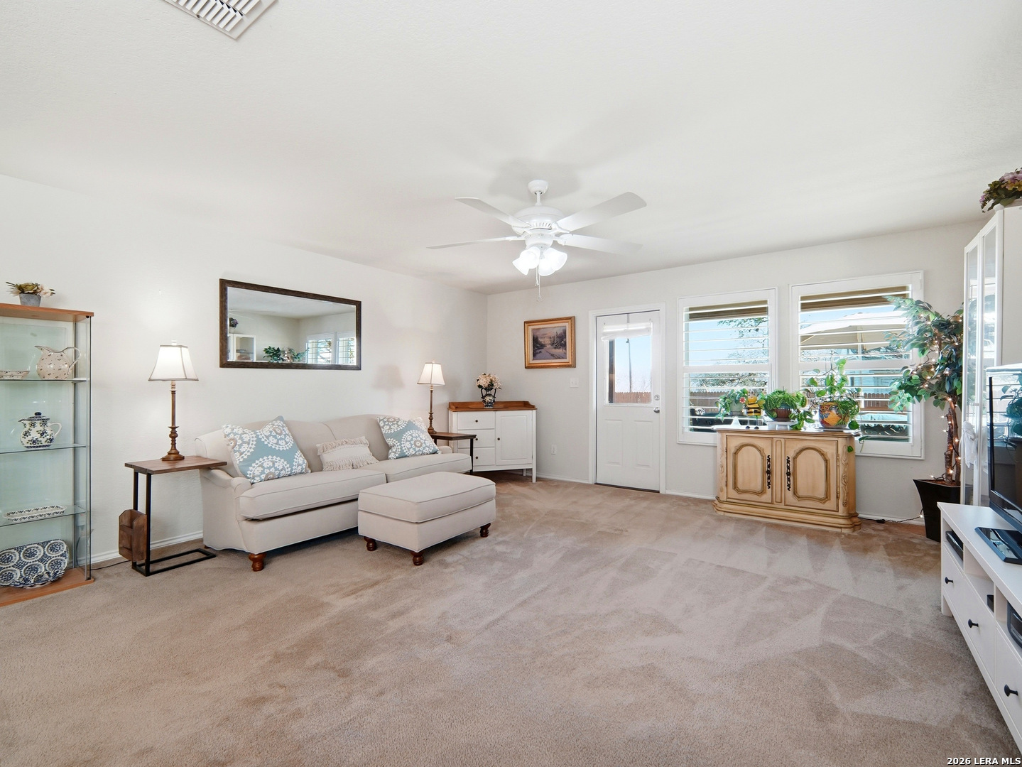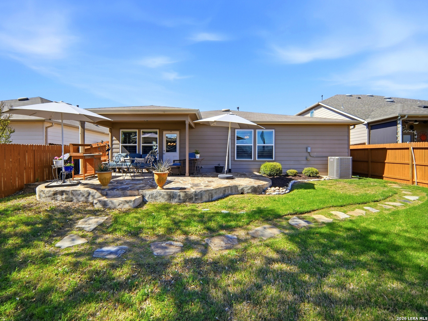 Beautifully maintained and thoughtfully upgraded, this inviting Converse home offers comfort, craftsmanship, and a backyard setting that is truly special. An upgraded front entry door immediately elevates the arrival experience, setting the tone for the quality and care found throughout the home. Inside, the open layout allows the living, dining, and kitchen areas to flow naturally together, creating an ideal space for both daily living and entertaining. Gorgeous plantation shutters throughout the home add timeless character while helping keep the interior cool during the warm Texas months. The private owner's suite provides a relaxing retreat and features an upgraded walk-in shower designed with comfort in mind, including a convenient collapsible seat that enhances the overall shower experience. Additional thoughtful features include an owned water softener and reverse osmosis system at the kitchen faucet, providing convenience and enhanced water quality. Outdoors is where this property truly shines. A custom masonry deck, handcrafted with remarkable care by a skilled artisan, anchors the backyard and creates a welcoming space to relax and unwind. With Scheel Farm positioned directly behind the property, the view offers a rare sense of privacy and open space, providing a peaceful and beautiful backdrop. The next homeowner can enjoy quiet mornings with coffee in their backyard oasis or wind down in the evening with a glass of wine or their favorite beverage under the Texas sky. Conveniently located with easy access to I-35, commuting toward San Antonio is simple, with Randolph Air Force Base, shopping, dining, and everyday conveniences just minutes away. Homes offering this combination of thoughtful upgrades, beautifully crafted outdoor living space, and convenient access to major destinations are not often available. Schedule a private tour to experience everything 8718 Flint Rock Way has to offer.