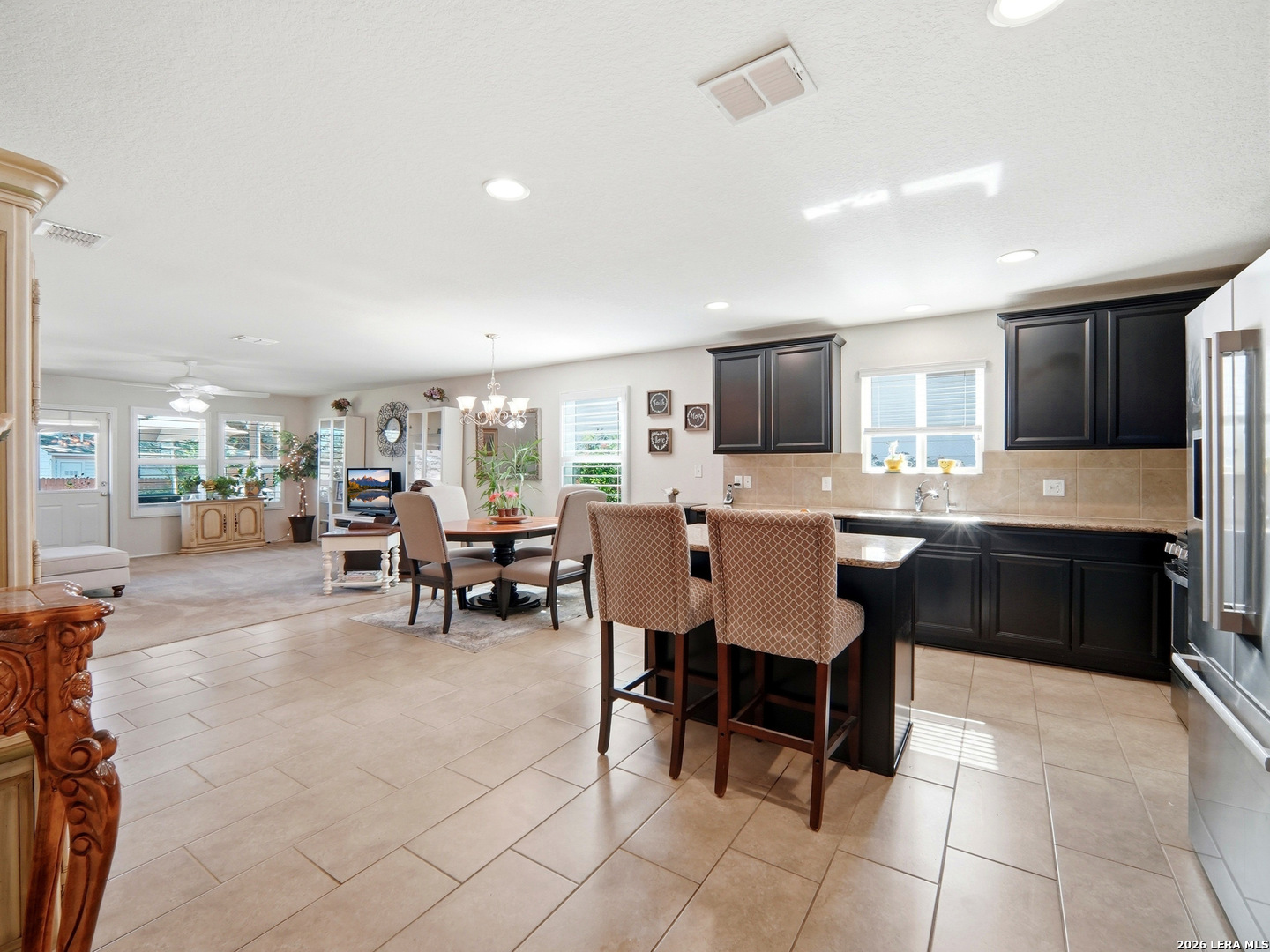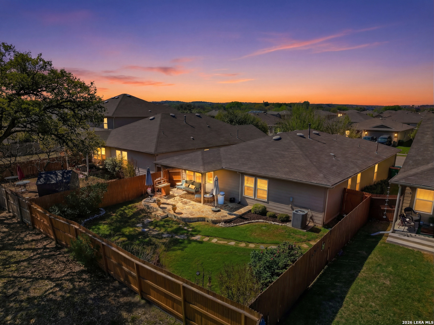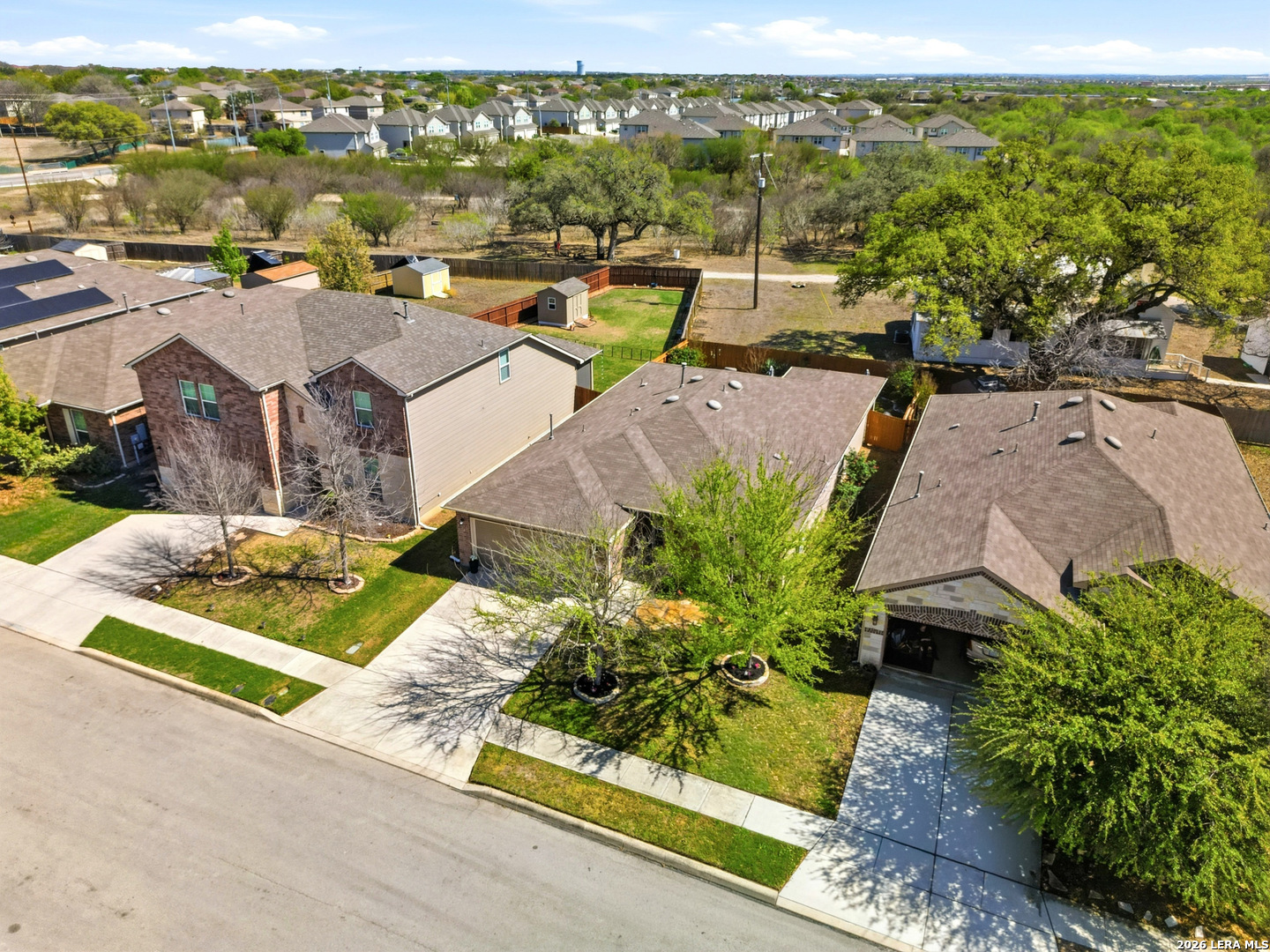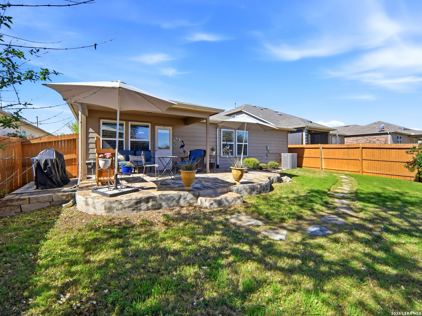 Beautifully maintained and thoughtfully upgraded, this inviting Converse home offers comfort, craftsmanship, and a backyard setting that is truly special. An upgraded front entry door immediately elevates the arrival experience, setting the tone for the quality and care found throughout the home. Inside, the open layout allows the living, dining, and kitchen areas to flow naturally together, creating an ideal space for both daily living and entertaining. Gorgeous plantation shutters throughout the home add timeless character while helping keep the interior cool during the warm Texas months. The private owner's suite provides a relaxing retreat and features an upgraded walk-in shower designed with comfort in mind, including a convenient collapsible seat that enhances the overall shower experience. Additional thoughtful features include an owned water softener and reverse osmosis system at the kitchen faucet, providing convenience and enhanced water quality. Outdoors is where this property truly shines. A custom masonry deck, handcrafted with remarkable care by a skilled artisan, anchors the backyard and creates a welcoming space to relax and unwind. With Scheel Farm positioned directly behind the property, the view offers a rare sense of privacy and open space, providing a peaceful and beautiful backdrop. The next homeowner can enjoy quiet mornings with coffee in their backyard oasis or wind down in the evening with a glass of wine or their favorite beverage under the Texas sky. Conveniently located with easy access to I-35, commuting toward San Antonio is simple, with Randolph Air Force Base, shopping, dining, and everyday conveniences just minutes away. Homes offering this combination of thoughtful upgrades, beautifully crafted outdoor living space, and convenient access to major destinations are not often available. Schedule a private tour to experience everything 8718 Flint Rock Way has to offer.