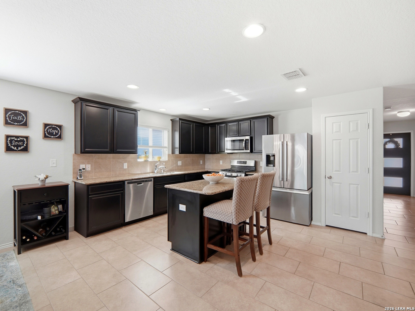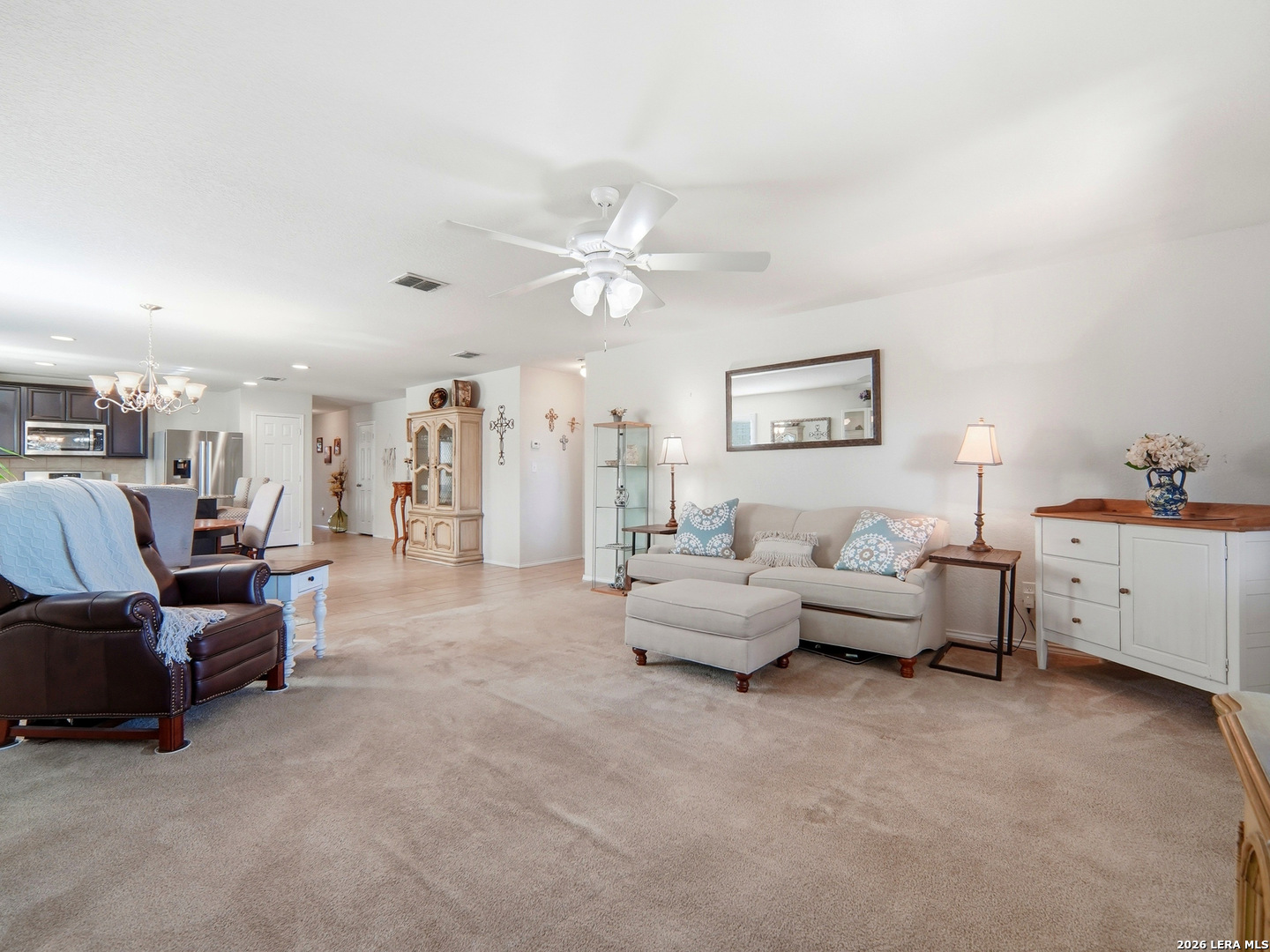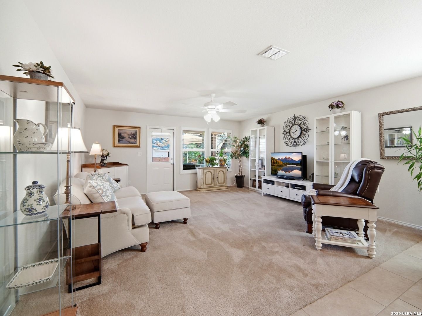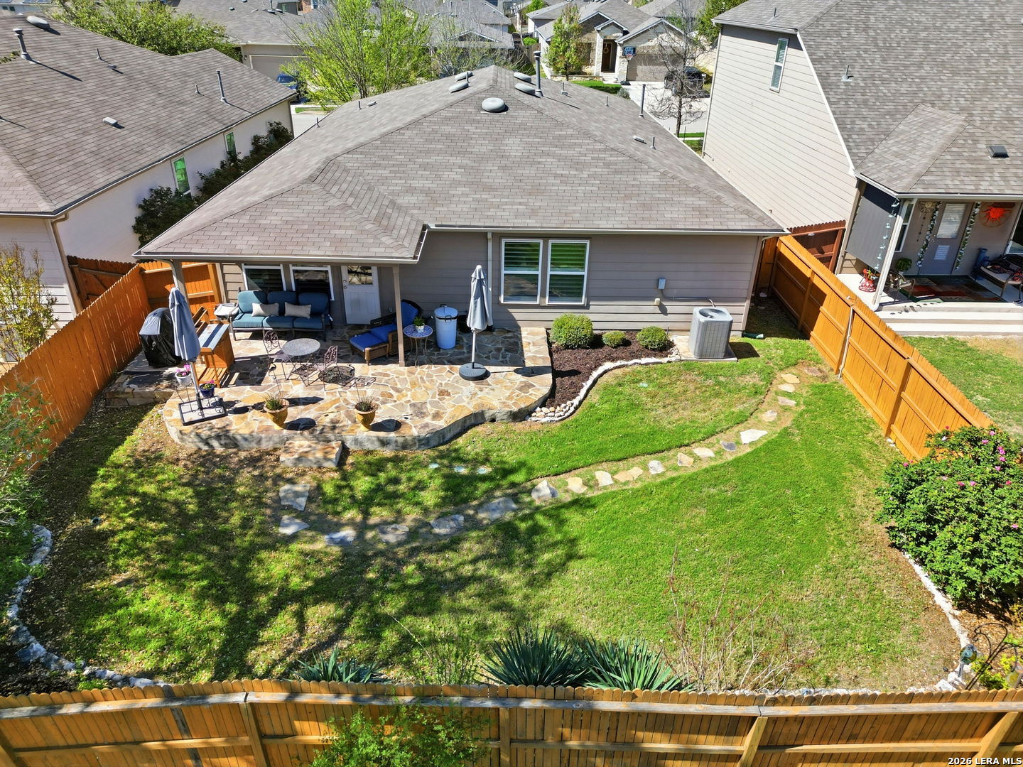 Beautifully maintained and thoughtfully upgraded, this inviting Converse home offers comfort, craftsmanship, and a backyard setting that is truly special. An upgraded front entry door immediately elevates the arrival experience, setting the tone for the quality and care found throughout the home. Inside, the open layout allows the living, dining, and kitchen areas to flow naturally together, creating an ideal space for both daily living and entertaining. Gorgeous plantation shutters throughout the home add timeless character while helping keep the interior cool during the warm Texas months. The private owner's suite provides a relaxing retreat and features an upgraded walk-in shower designed with comfort in mind, including a convenient collapsible seat that enhances the overall shower experience. Additional thoughtful features include an owned water softener and reverse osmosis system at the kitchen faucet, providing convenience and enhanced water quality. Outdoors is where this property truly shines. A custom masonry deck, handcrafted with remarkable care by a skilled artisan, anchors the backyard and creates a welcoming space to relax and unwind. With Scheel Farm positioned directly behind the property, the view offers a rare sense of privacy and open space, providing a peaceful and beautiful backdrop. The next homeowner can enjoy quiet mornings with coffee in their backyard oasis or wind down in the evening with a glass of wine or their favorite beverage under the Texas sky. Conveniently located with easy access to I-35, commuting toward San Antonio is simple, with Randolph Air Force Base, shopping, dining, and everyday conveniences just minutes away. Homes offering this combination of thoughtful upgrades, beautifully crafted outdoor living space, and convenient access to major destinations are not often available. Schedule a private tour to experience everything 8718 Flint Rock Way has to offer.