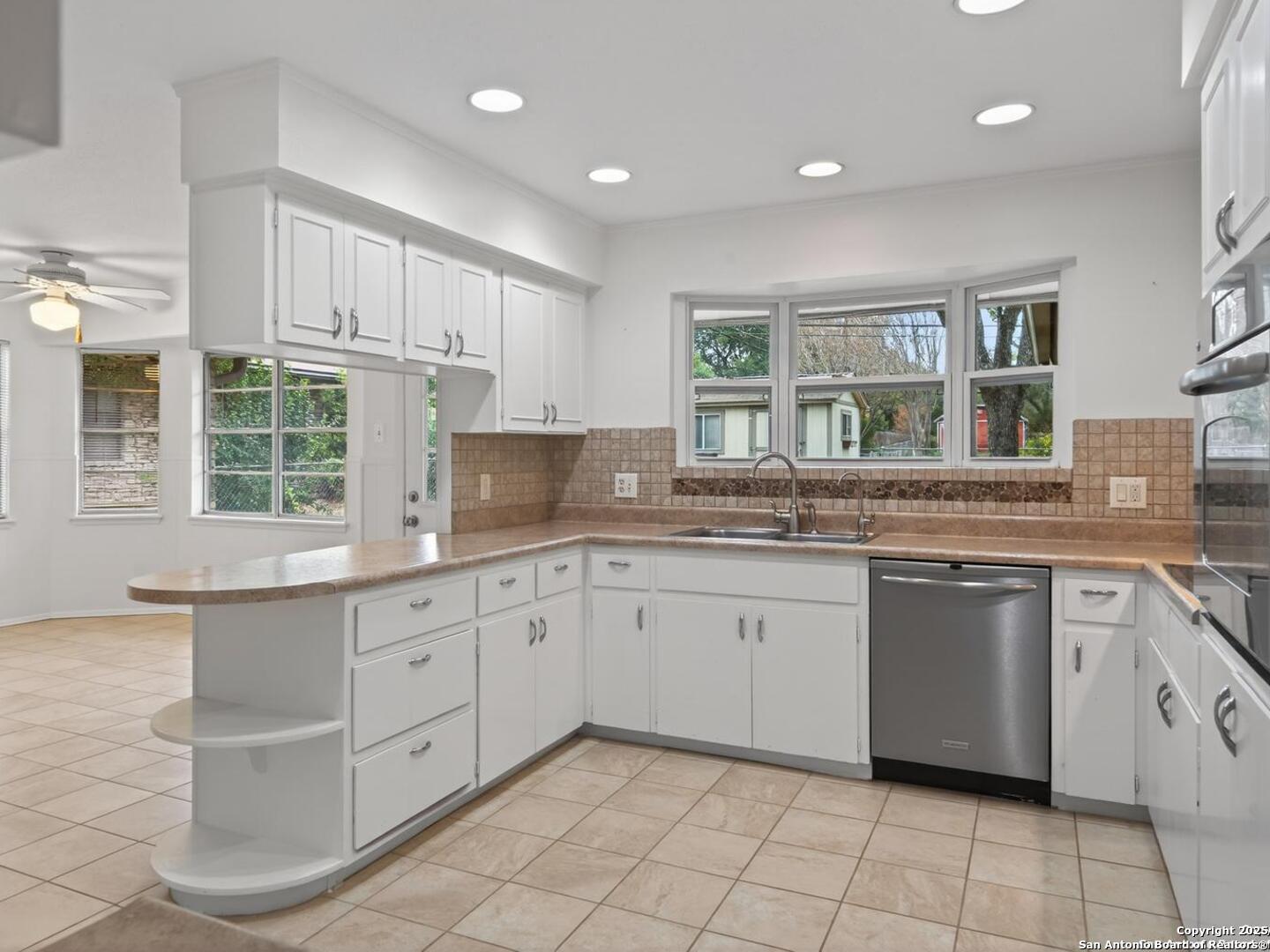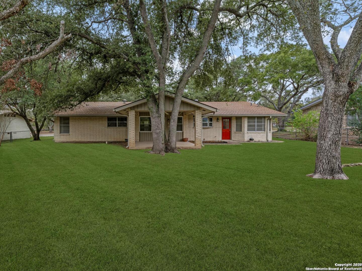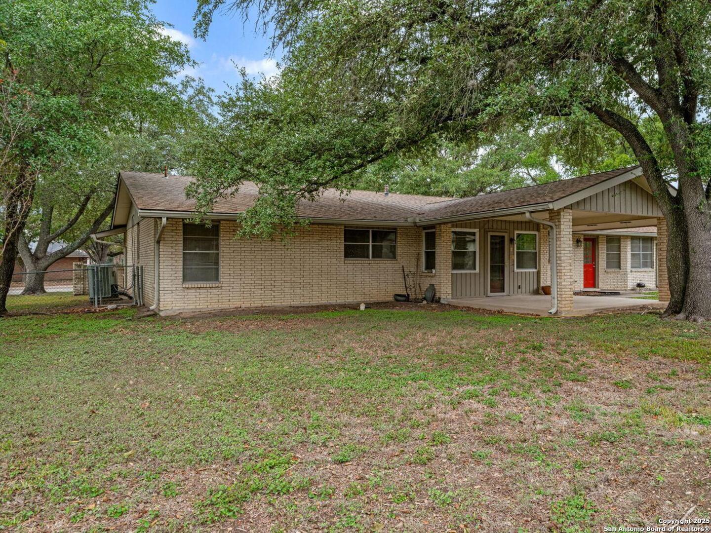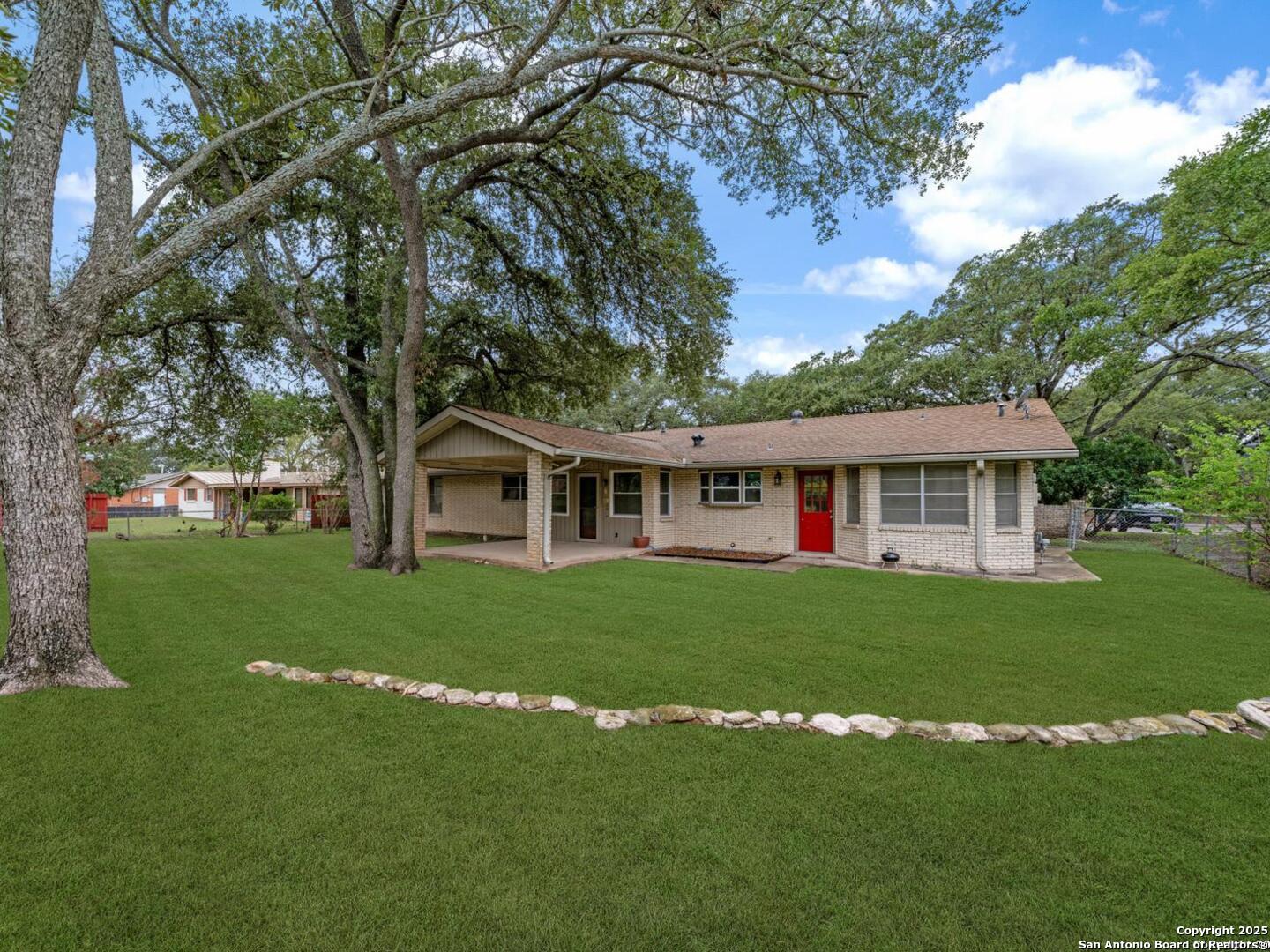 Come check out this super spacious one-story ranch style home in the heart of Windcrest! Sitting on a large .32-acre lot with a circular driveway, this 3/2 has plenty of room to spread out. Inside, you'll find a huge living room, a separate family room, and an open kitchen with stainless steel appliances, tile backsplash, a breakfast bar, and space for both casual and formal dining. The home has porcelain tile throughout, fresh interior paint, and major updates already taken care of-roof (2015), HVAC (2013), and sprinkler system (2013). Enjoy relaxing on the covered front and back patios, and you'll love the oversized storage shed out back for all your extras. If you're looking for a roomy, move-in-ready home in a great Windcrest location, this one's definitely worth seeing!