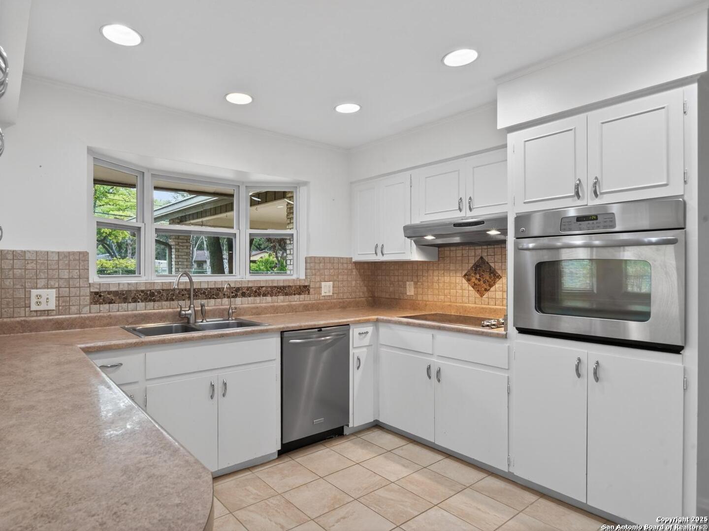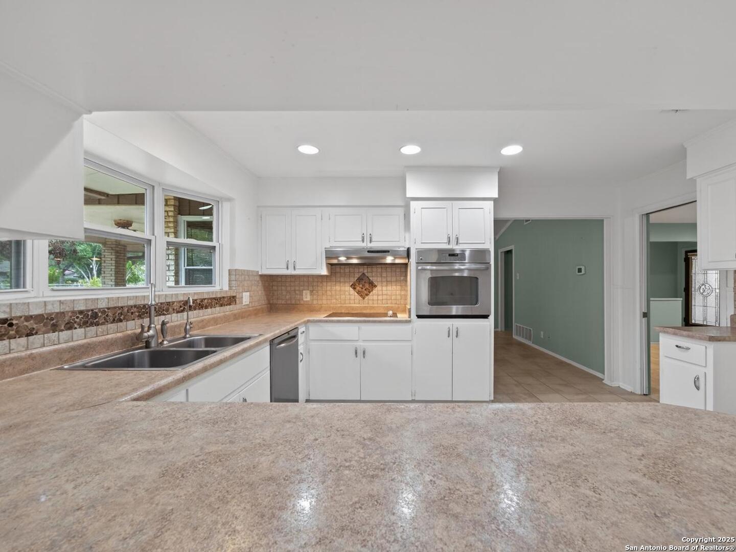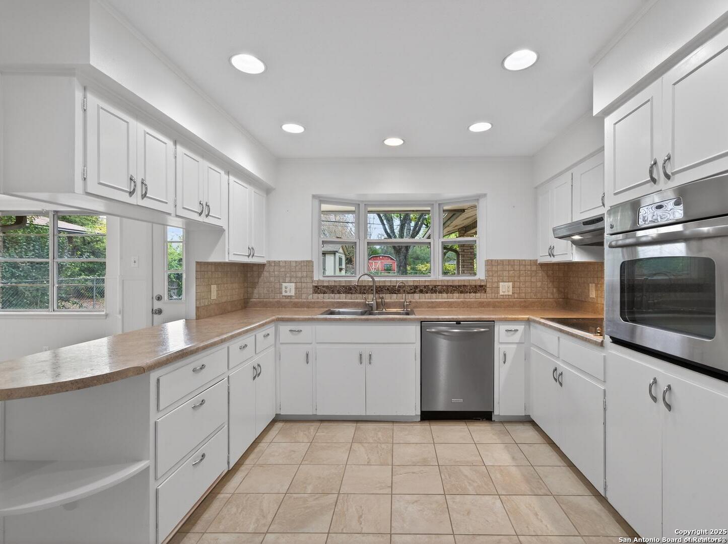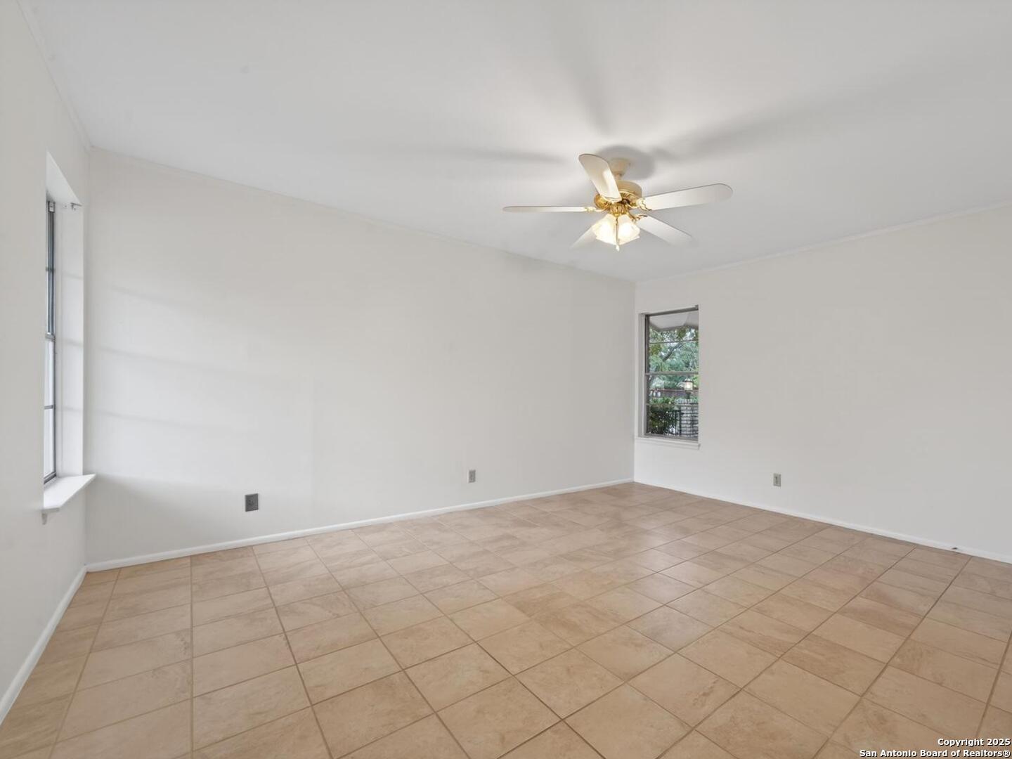 Come check out this super spacious one-story ranch style home in the heart of Windcrest! Sitting on a large .32-acre lot with a circular driveway, this 3/2 has plenty of room to spread out. Inside, you'll find a huge living room, a separate family room, and an open kitchen with stainless steel appliances, tile backsplash, a breakfast bar, and space for both casual and formal dining. The home has porcelain tile throughout, fresh interior paint, and major updates already taken care of-roof (2015), HVAC (2013), and sprinkler system (2013). Enjoy relaxing on the covered front and back patios, and you'll love the oversized storage shed out back for all your extras. If you're looking for a roomy, move-in-ready home in a great Windcrest location, this one's definitely worth seeing!