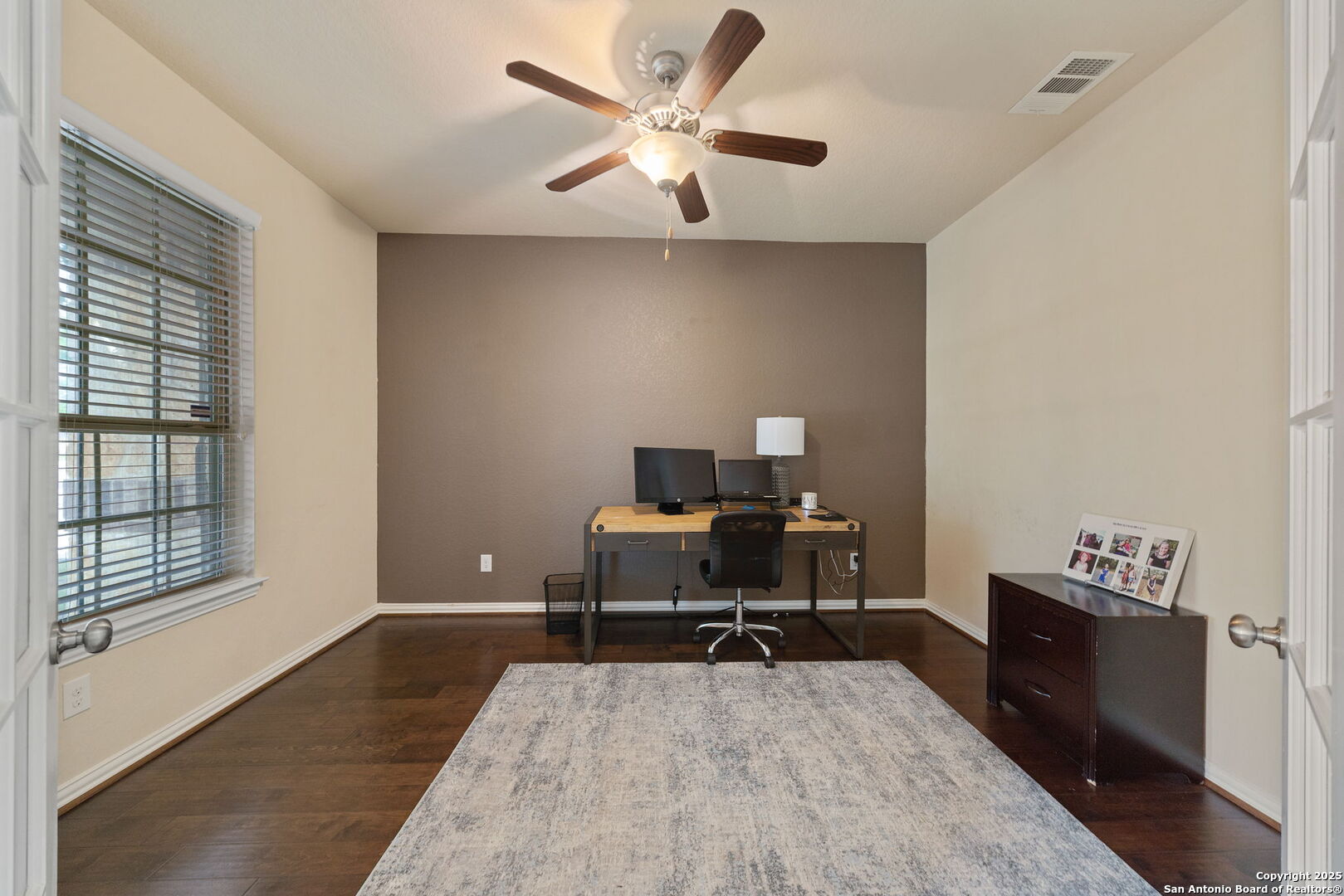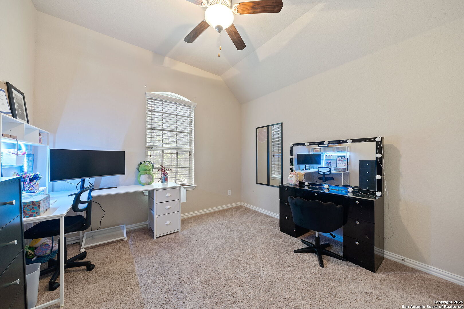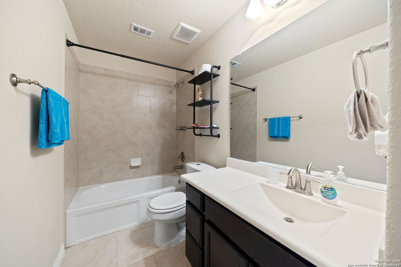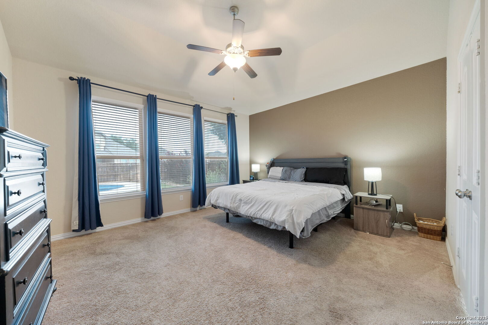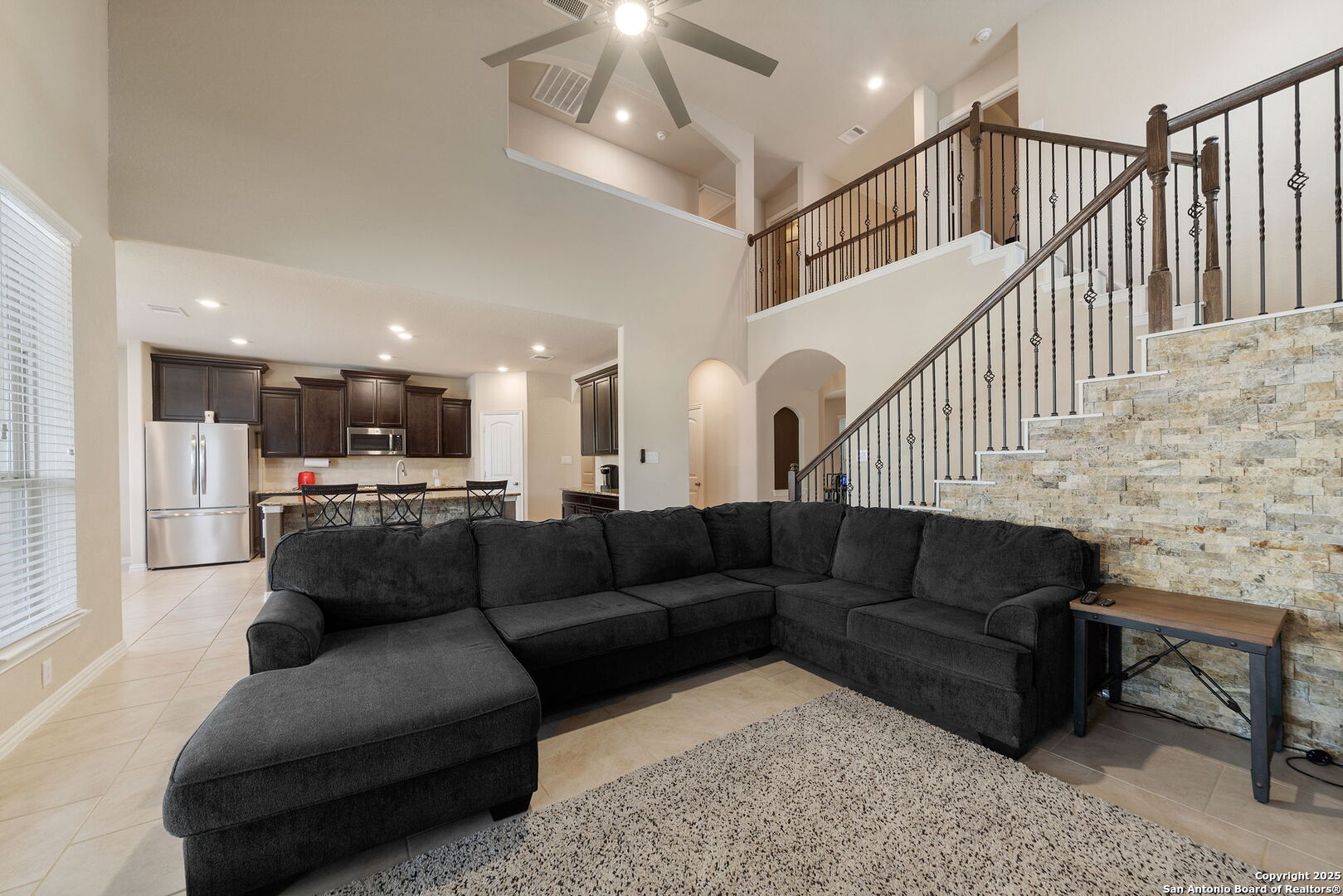 Step into comfort, elegance, and convenience of this beautifully maintained 4-bedroom, 3.5-bath home located in the sought-after Kallison Ranch community of San Antonio. This 2,868 sq ft residence offers elevated design, smart layout, and family-friendly features - all within one of the city's fastest-growing corridors. Enjoy a warm, inviting space with a custom stone backsplash and fireplace as the living room centerpiece. Chef's kitchen featuring granite countertops, 42" cabinetry, gas cooking, and a spacious island for family meals and entertaining. Media room perfect for movie nights, sports viewing, or gaming - your private home theater awaits upstairs. Primary suite downstairs includes double vanities, garden tub, walk-in shower, and a massive closet. Kids hideout: large under-the-stairs closet doubles as a magical nook for kids or clever storage. Enjoy your own resort style retreat with heated in ground pool with waterfall feature, covered patio and pergola and beautiful landscaping! Zoned to John M. Harlan High School, a rising star in Texas athletics! Prime location and exciting growth.