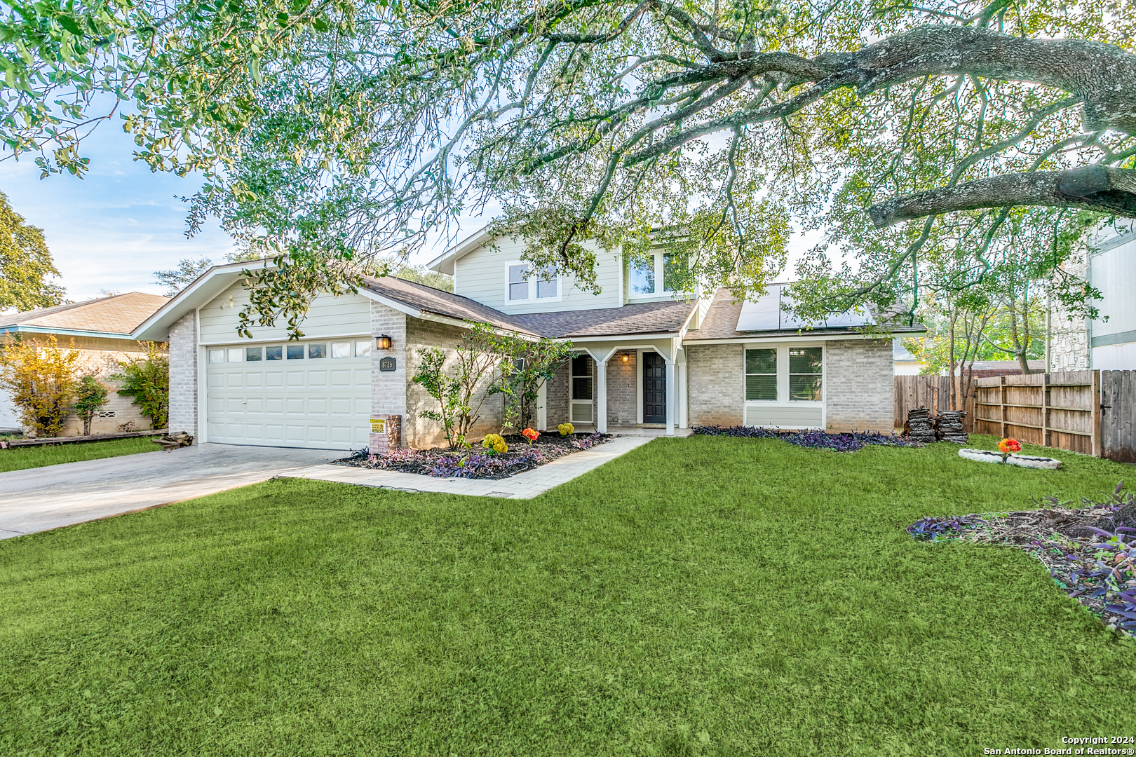 * This stunning 4-bedroom, 2-bathroom home combines charm, functionality, and modern energy efficiency with its solar panels. The inviting curb appeal sets the stage for a bright and spacious open layout, perfect for both relaxation and entertaining. A cozy fireplace in the living room creates a warm gathering space. Built-in shelving in the kitchen area adds style and storage. The main bedroom and bath are conveniently located downstairs, offering privacy and convenience, while three generously sized bedrooms upstairs provide room for loved ones or guests. Step outside to a grand backyard with ample grassy space, perfect for creating your personal outdoor oasis. Located near Bandera Road, this home offers easy access to shopping, dining, and the scenic trails of OP Schnabel Park. Move-in ready and situated in a prime location, this home is the perfect blend of comfort and convenience. Don't miss your chance to make it yours!