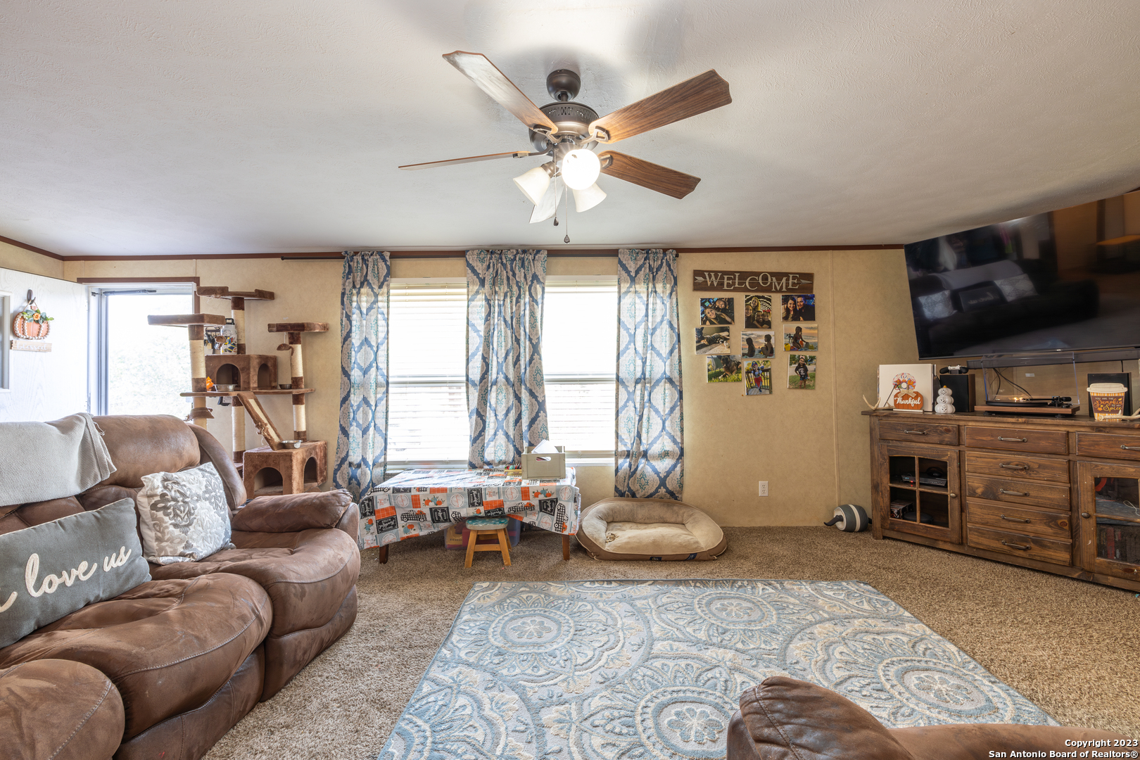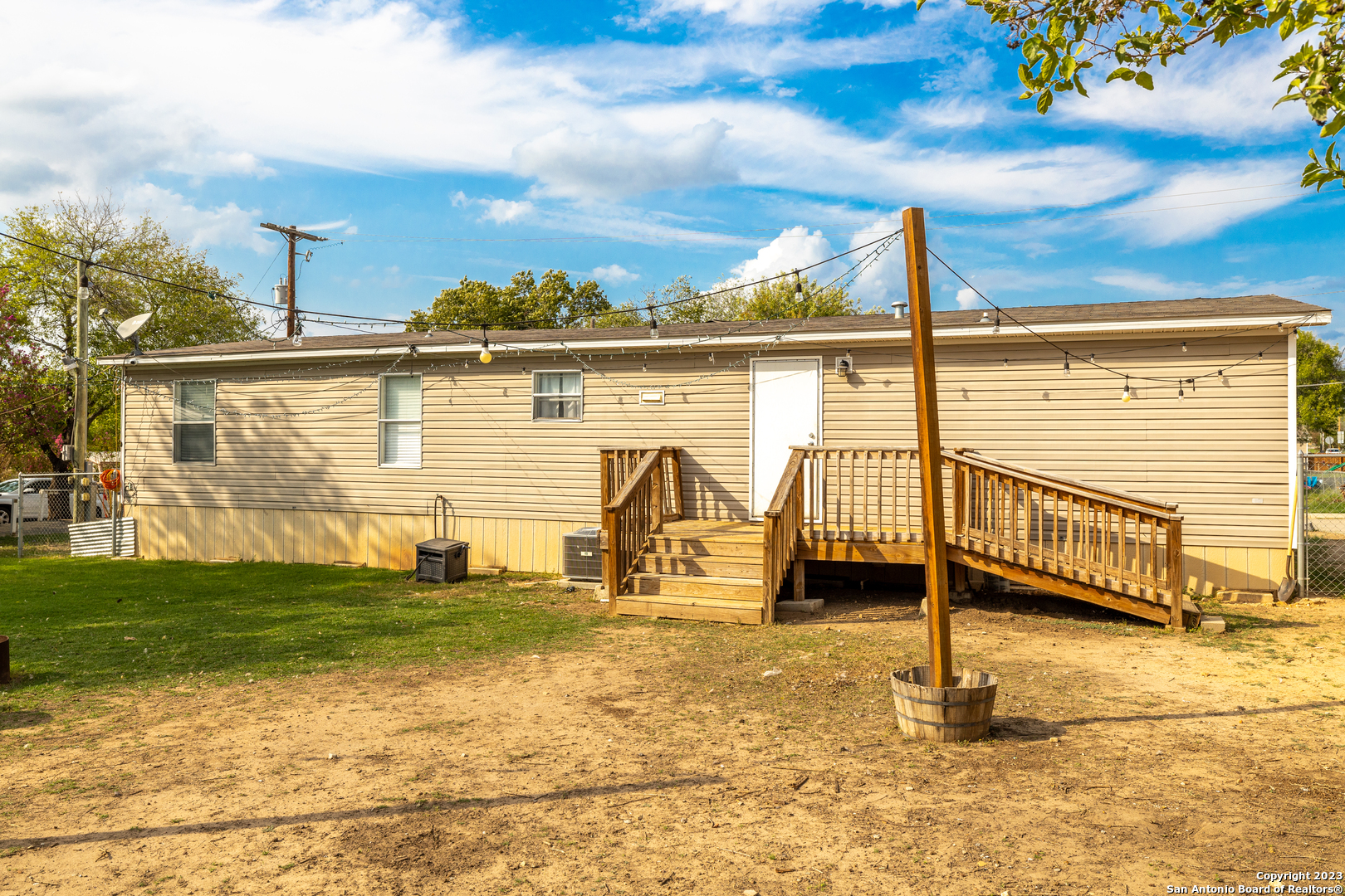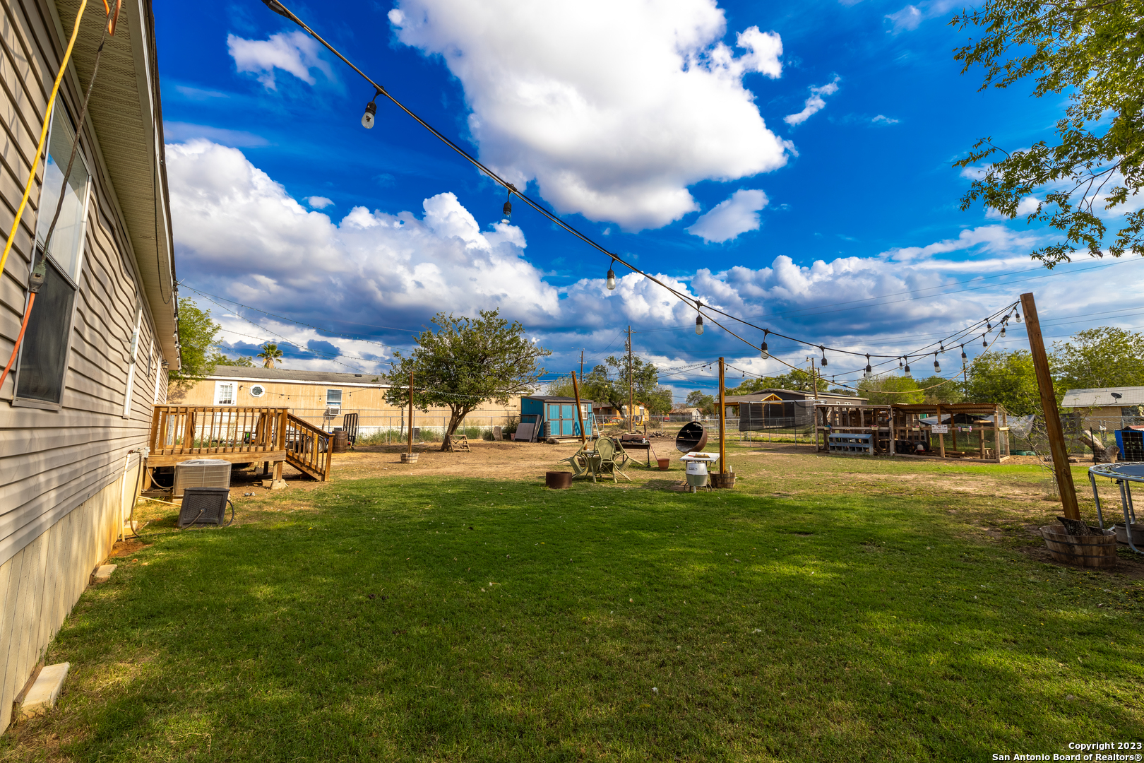 Introducing an exceptional opportunity in the heart of peaceful living! This 3-bedroom, 2-bathroom home is set on a huge oversized lot, boasting a comfortable living setup with plenty of space to spare. The expansive open concept living room and kitchen combo create a welcoming atmosphere for gatherings and relaxation. Nestled in the charming town of Poteet, Texas, this property offers the tranquility of no traffic while being conveniently located close to the school district. A short 20-minute drive north will lead you to the vibrant city of San Antonio, teeming with shops and numerous job opportunities, while an 8-minute drive south takes you to Pleasanton, Texas, providing all your common shopping needs, from clothing to groceries and small-town eateries. The spacious lot, measuring 100 feet in width and 125 feet in depth, offering endless possibilities for customizing the property to suit your preferences. Enjoy the newly added splash pad along with basketball court, sand volleyball court and playground that is within walking distance. Don't miss your chance to make this slice of peaceful living in Poteet, Texas, your own!
