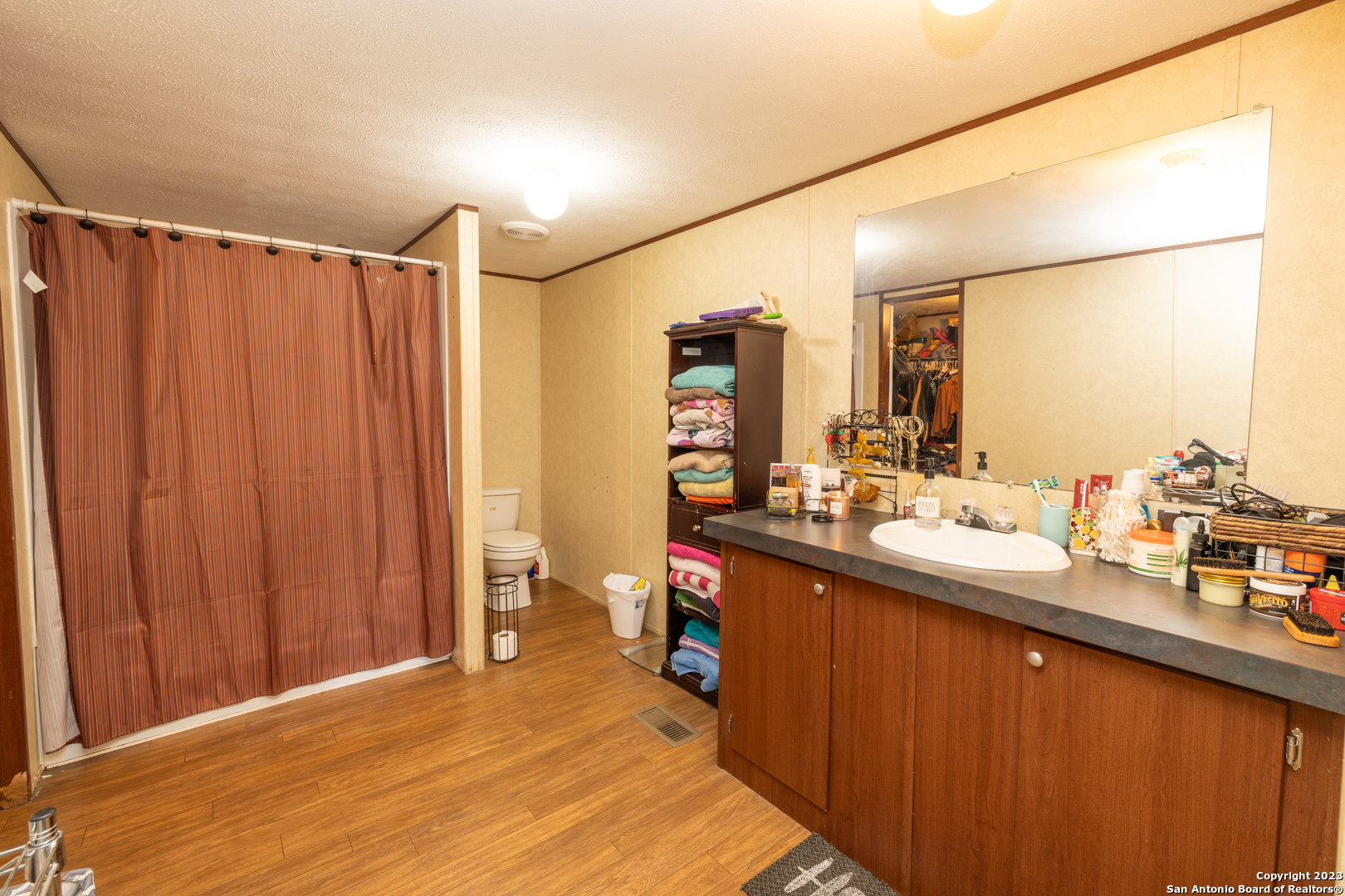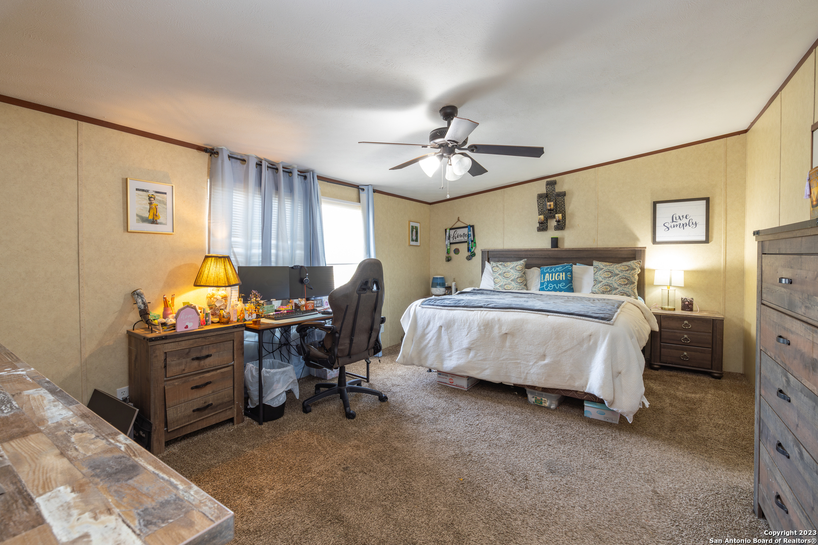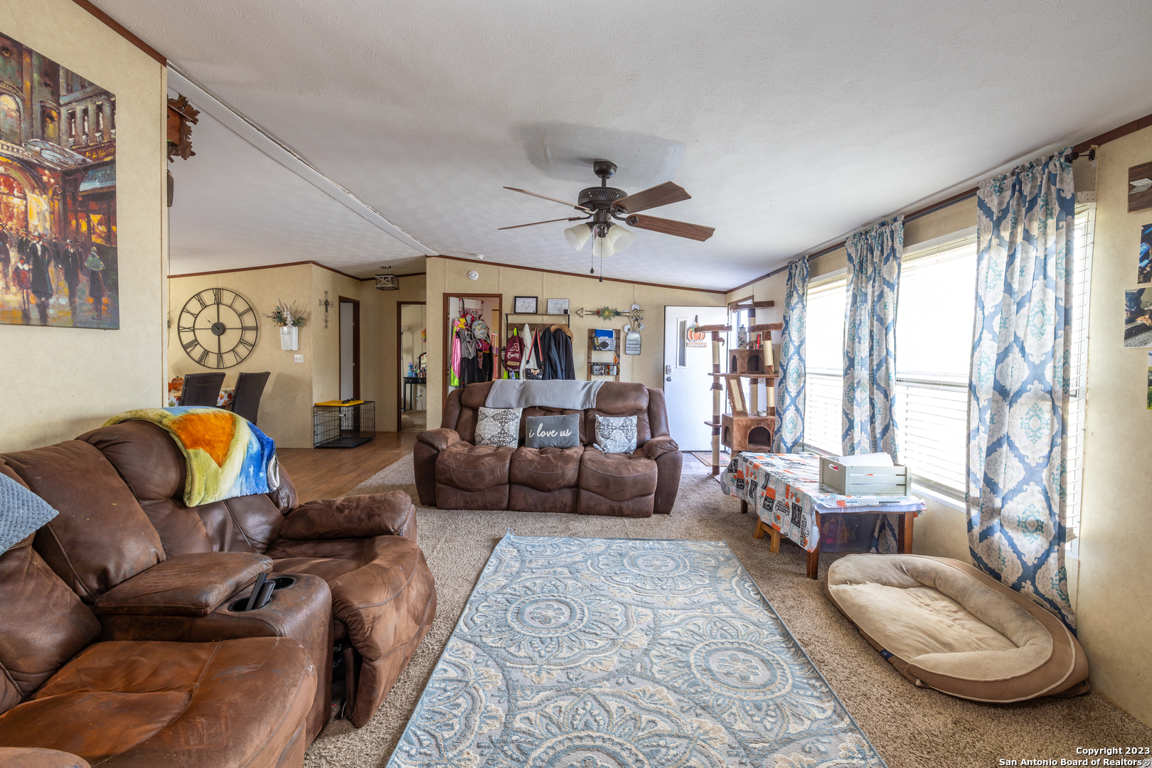 Introducing an exceptional opportunity in the heart of peaceful living! This 3-bedroom, 2-bathroom home is set on a huge oversized lot, boasting a comfortable living setup with plenty of space to spare. The expansive open concept living room and kitchen combo create a welcoming atmosphere for gatherings and relaxation. Nestled in the charming town of Poteet, Texas, this property offers the tranquility of no traffic while being conveniently located close to the school district. A short 20-minute drive north will lead you to the vibrant city of San Antonio, teeming with shops and numerous job opportunities, while an 8-minute drive south takes you to Pleasanton, Texas, providing all your common shopping needs, from clothing to groceries and small-town eateries. The spacious lot, measuring 100 feet in width and 125 feet in depth, offering endless possibilities for customizing the property to suit your preferences. Enjoy the newly added splash pad along with basketball court, sand volleyball court and playground that is within walking distance. Don't miss your chance to make this slice of peaceful living in Poteet, Texas, your own!