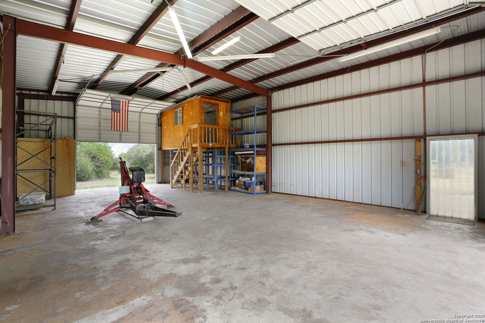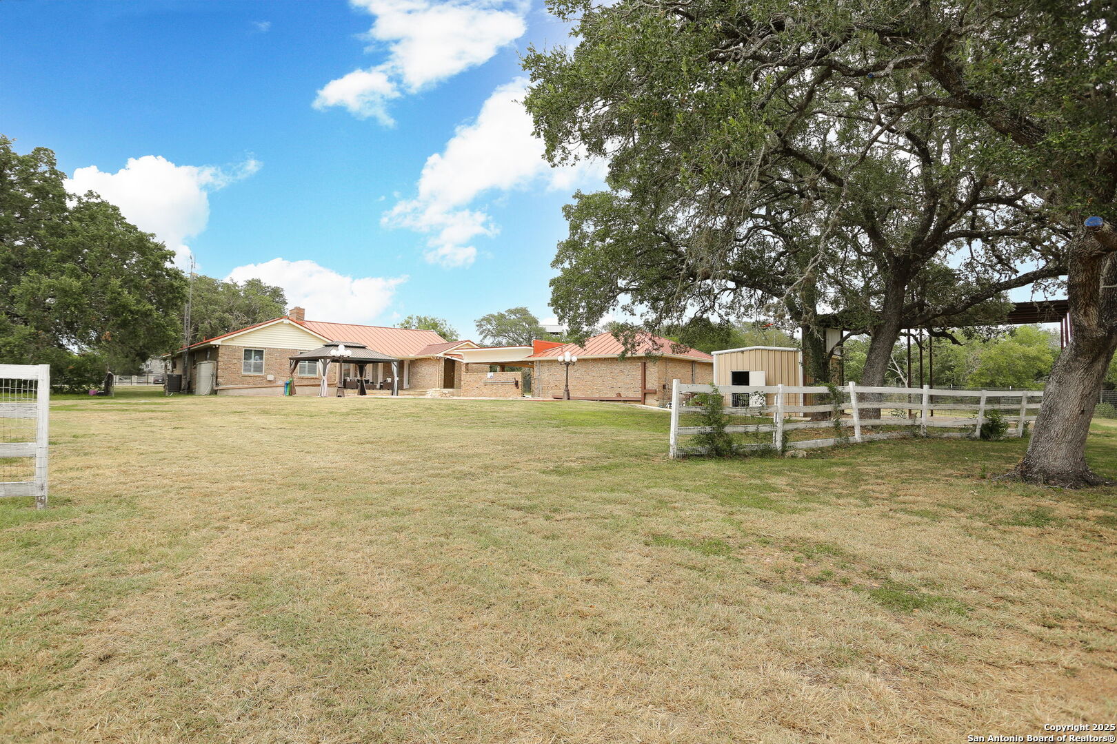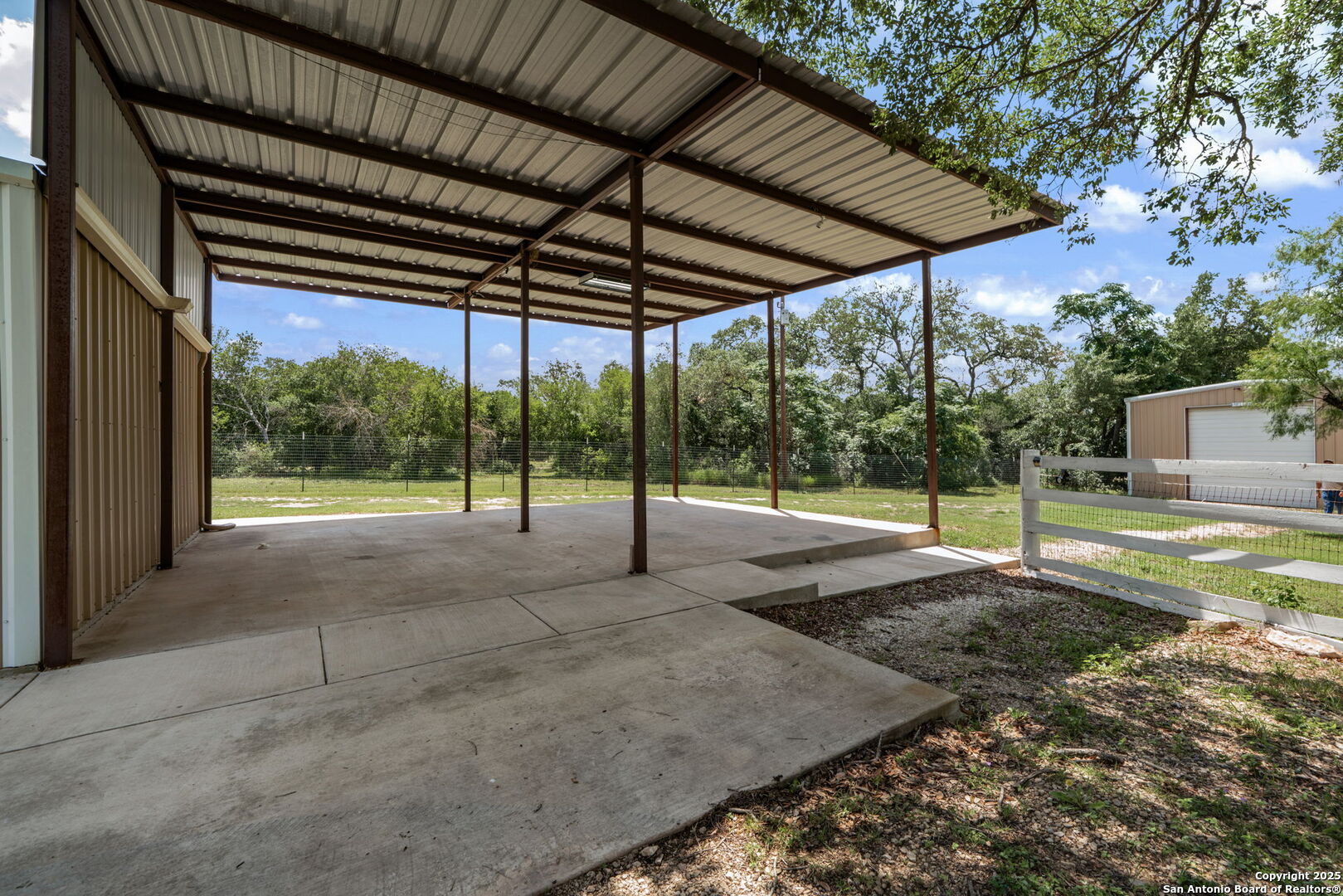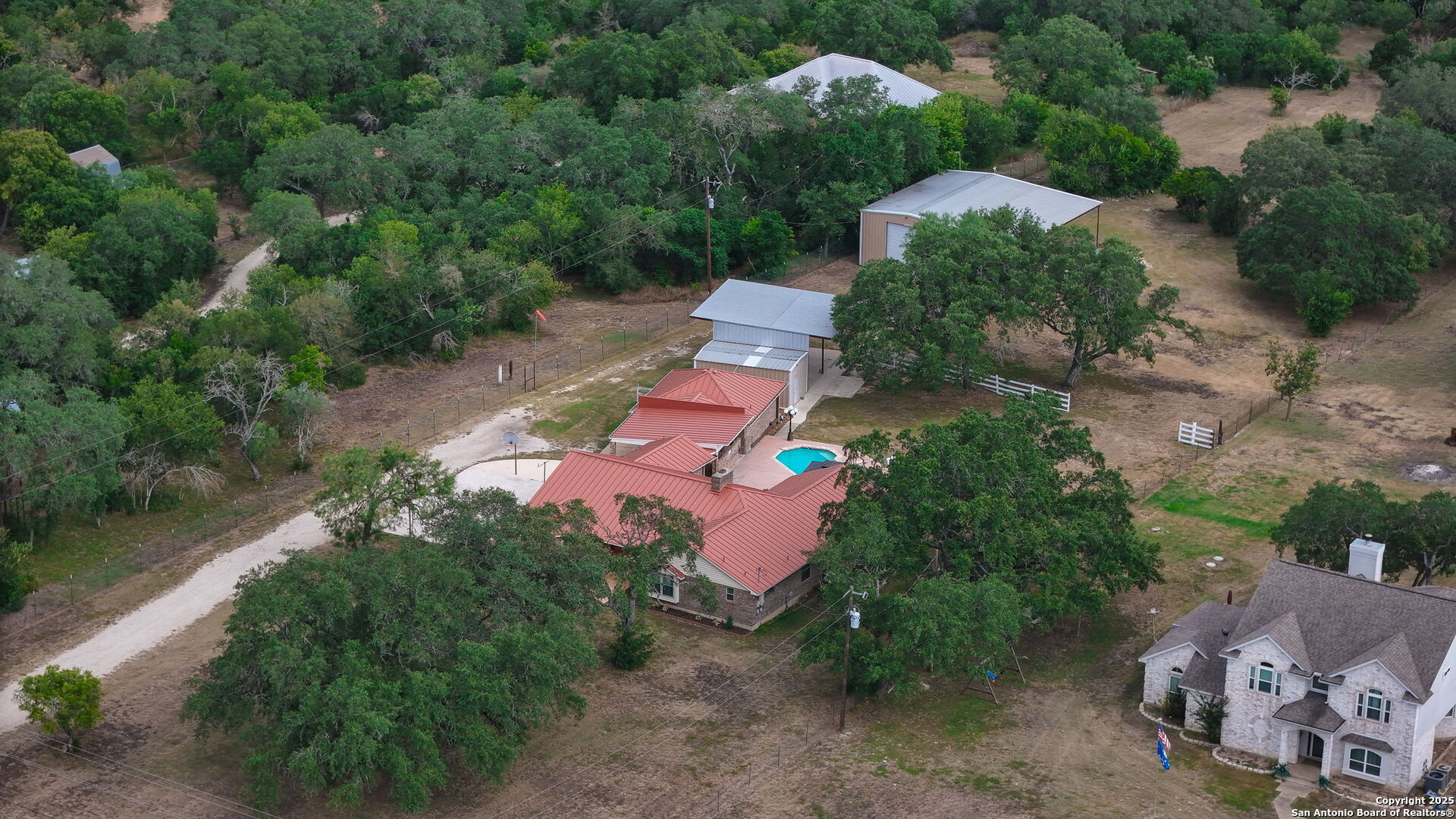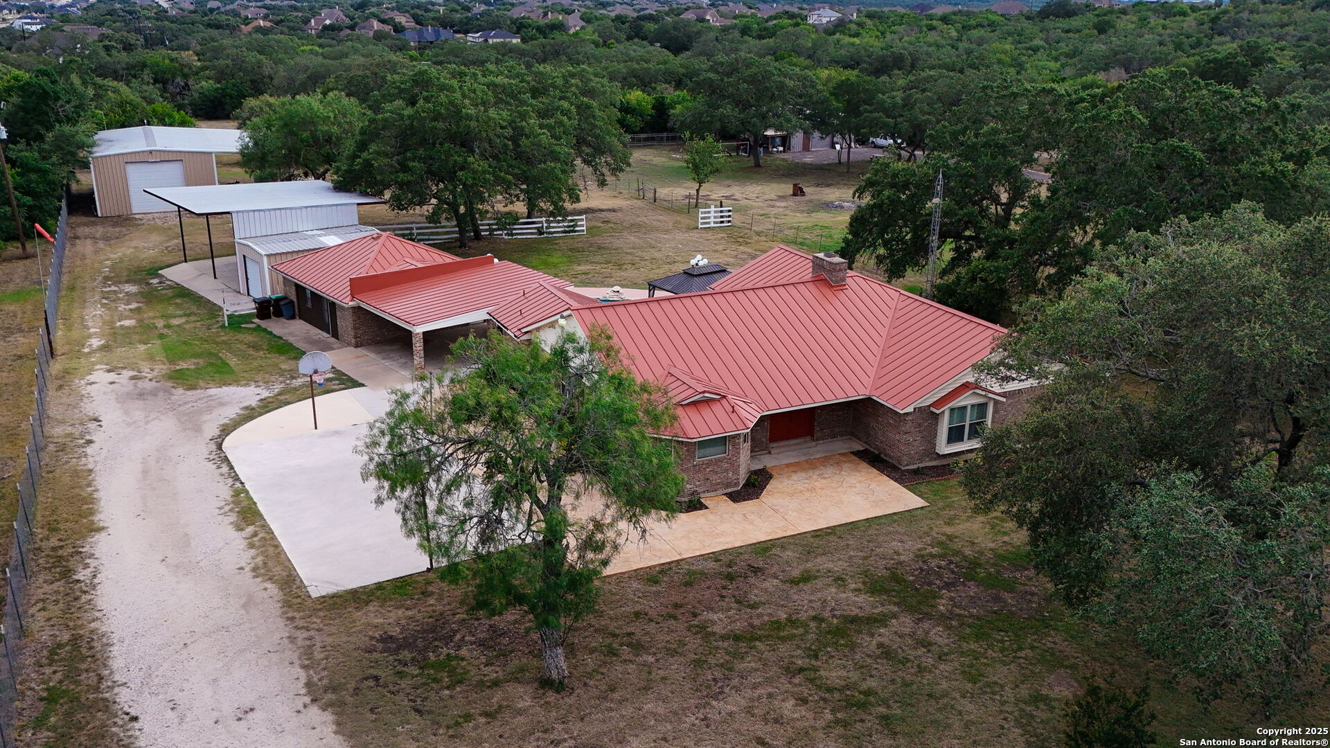 Set on 3.14 fully fenced acres, this beautiful and well maintained property offers a spacious 3-bedroom, 3-bath, 2524 sq ft main home plus a 675 sq ft casita perfect for multi-generational living, guests, or a private office. The main house features an oversized primary suite with a luxurious 6' cast iron soaking tub, separate shower, and custom solid oak built-ins for exceptional storage. The gourmet kitchen is a showstopper, featuring Blue Bahia granite countertops, custom oak cabinetry, and high-end appliances. The inviting living area boasts a cozy wood burning fireplace, creating the ideal space for relaxing evenings. This home has been modified to include wide 36" doorways, a wheelchair ramp entry, and a guest bath with a roll-in shower & safety rails. Outdoors, you'll love the sparkling pool and oversized flagstone patio that is perfect for entertaining. A short walk through the breezeway connects the main house to a 1-bedroom, 1-bath guest house with living area and kitchenette. Additionally, there is a 1,500 sq. ft. workshop with an air-conditioned upstairs office. The workshop contains another 1,000 sq. ft. of covered storage overhead with 220/110 wiring. In addition to the 2 car carport, there are 2 covered RV parking with 30 AMP hookup and an additional storage building. Best of all, this home is part of an HOA with no restrictions, giving you the freedom to truly make the property your own. Conveniently located just 27 miles west of downtown San Antonio and 11 miles from downtown Castroville. This property truly combines comfort, function, and style. Other upgrades include a standing seam metal roof, energy-efficient double-pane windows with a transferable lifetime warranty, and a high-efficiency A/C system with WiFi thermostat. Don't miss this rare opportunity-schedule your private showing today!
