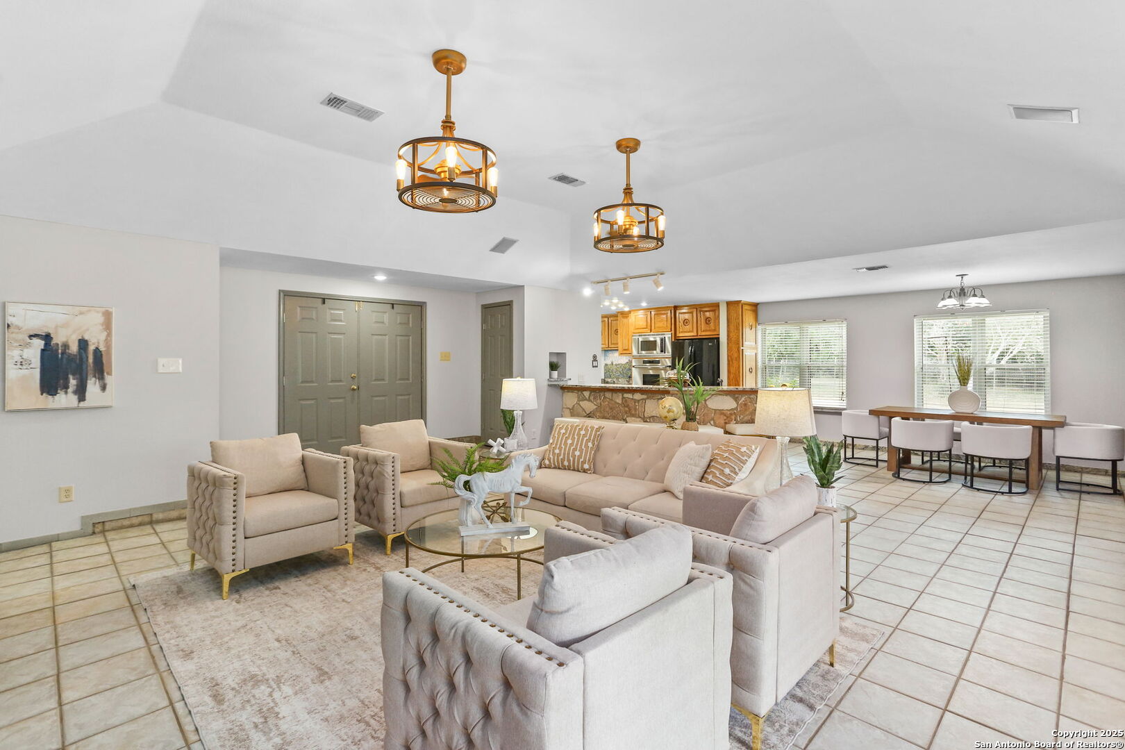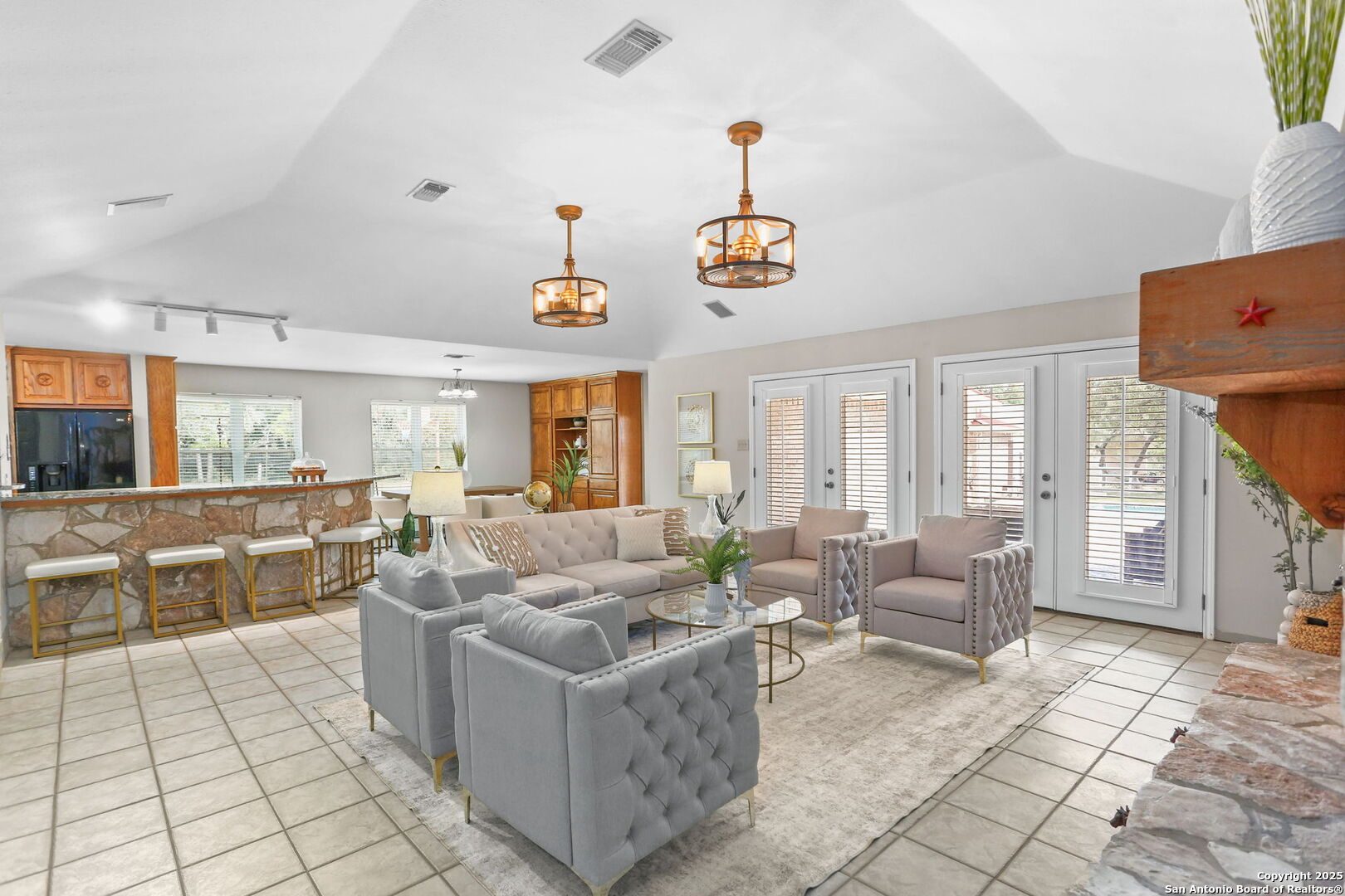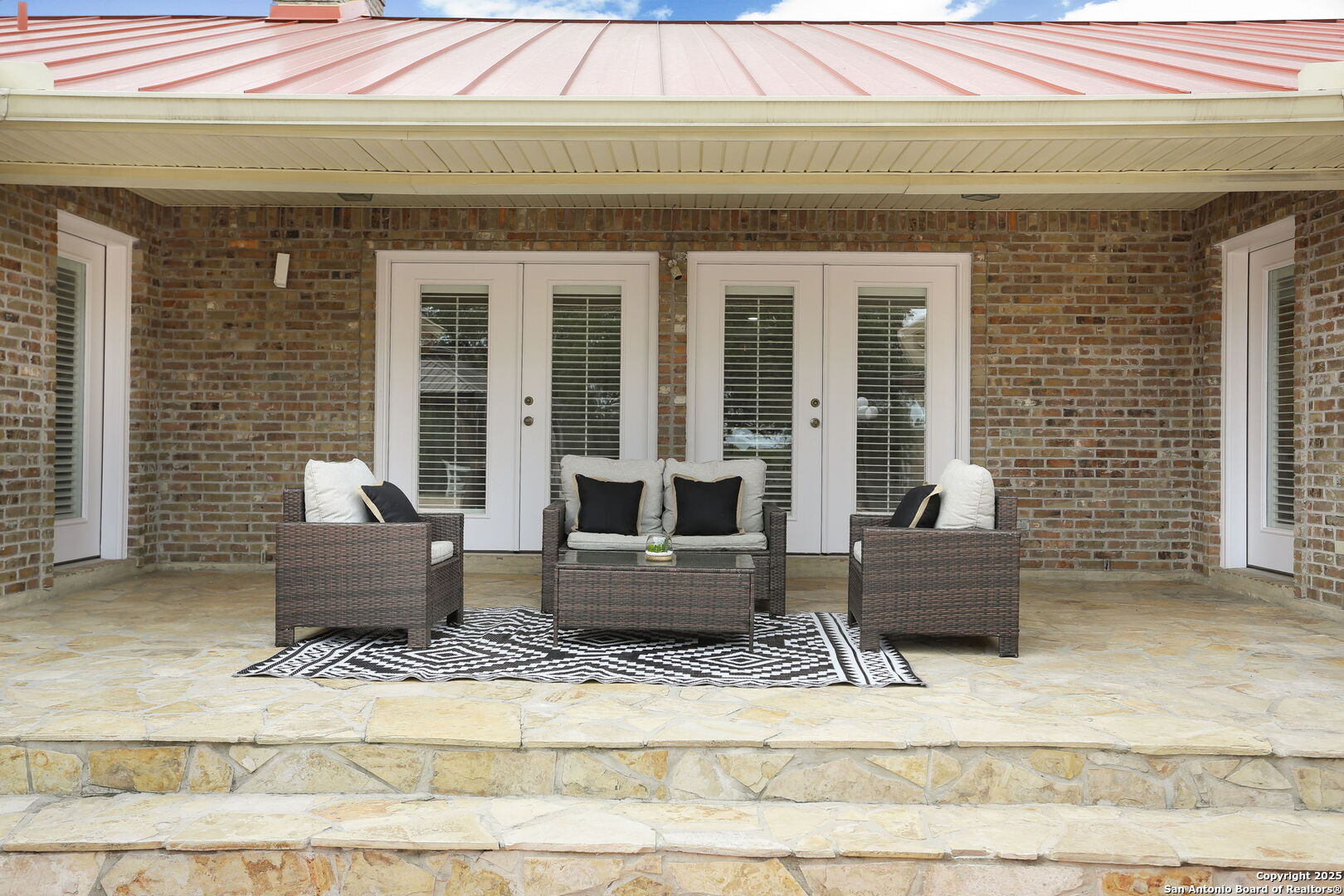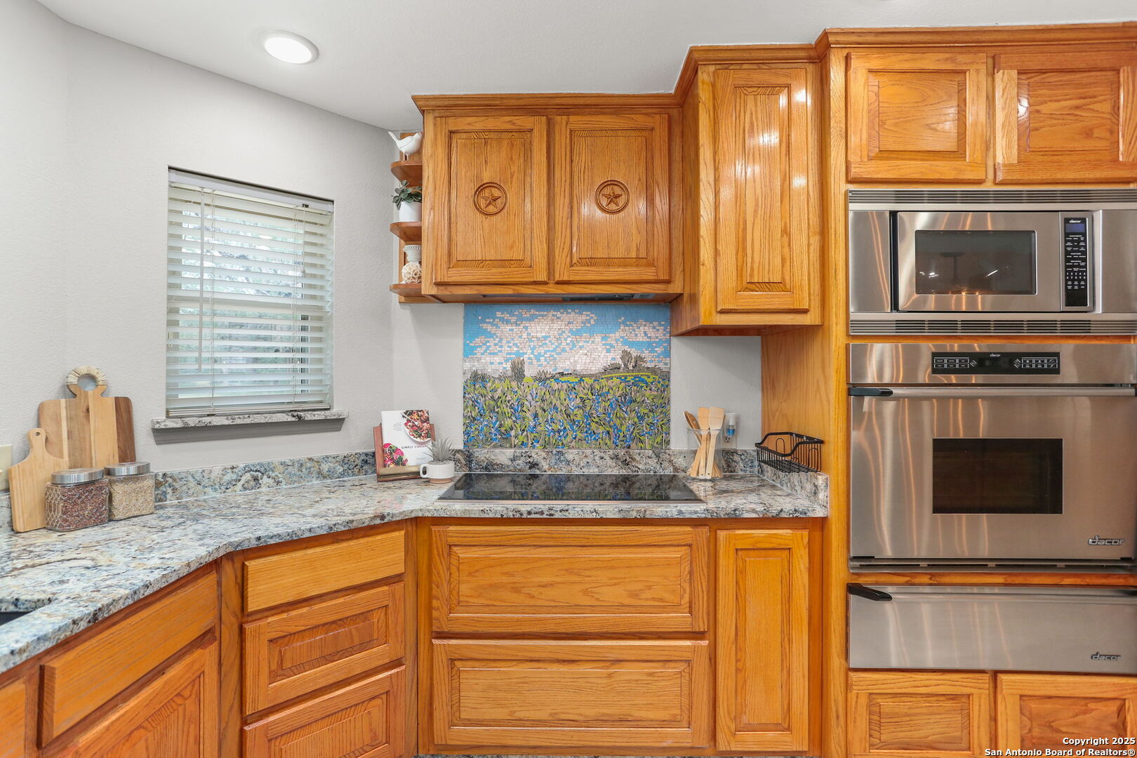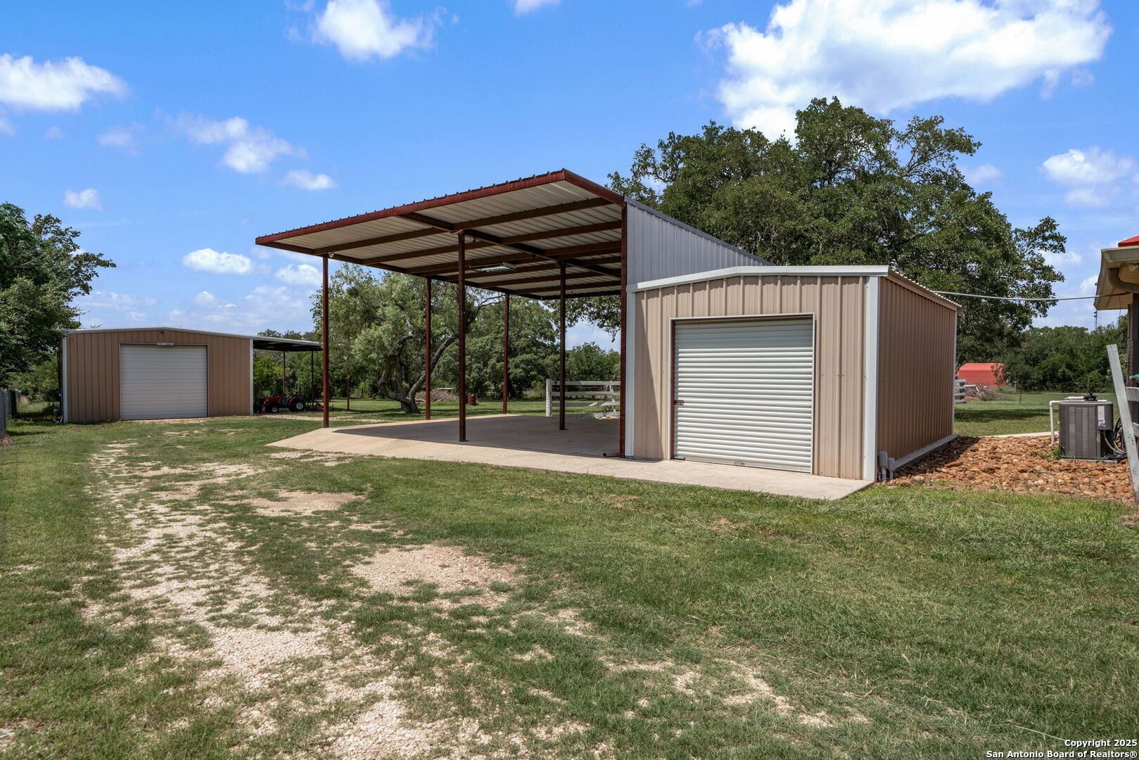 Set on 3.14 fully fenced acres, this beautiful and well maintained property offers a spacious 3-bedroom, 3-bath, 2524 sq ft main home plus a 675 sq ft casita perfect for multi-generational living, guests, or a private office. The main house features an oversized primary suite with a luxurious 6' cast iron soaking tub, separate shower, and custom solid oak built-ins for exceptional storage. The gourmet kitchen is a showstopper, featuring Blue Bahia granite countertops, custom oak cabinetry, and high-end appliances. The inviting living area boasts a cozy wood burning fireplace, creating the ideal space for relaxing evenings. This home has been modified to include wide 36" doorways, a wheelchair ramp entry, and a guest bath with a roll-in shower & safety rails. Outdoors, you'll love the sparkling pool and oversized flagstone patio that is perfect for entertaining. A short walk through the breezeway connects the main house to a 1-bedroom, 1-bath guest house with living area and kitchenette. Additionally, there is a 1,500 sq. ft. workshop with an air-conditioned upstairs office. The workshop contains another 1,000 sq. ft. of covered storage overhead with 220/110 wiring. In addition to the 2 car carport, there are 2 covered RV parking with 30 AMP hookup and an additional storage building. Best of all, this home is part of an HOA with no restrictions, giving you the freedom to truly make the property your own. Conveniently located just 27 miles west of downtown San Antonio and 11 miles from downtown Castroville. This property truly combines comfort, function, and style. Other upgrades include a standing seam metal roof, energy-efficient double-pane windows with a transferable lifetime warranty, and a high-efficiency A/C system with WiFi thermostat. Don't miss this rare opportunity-schedule your private showing today!