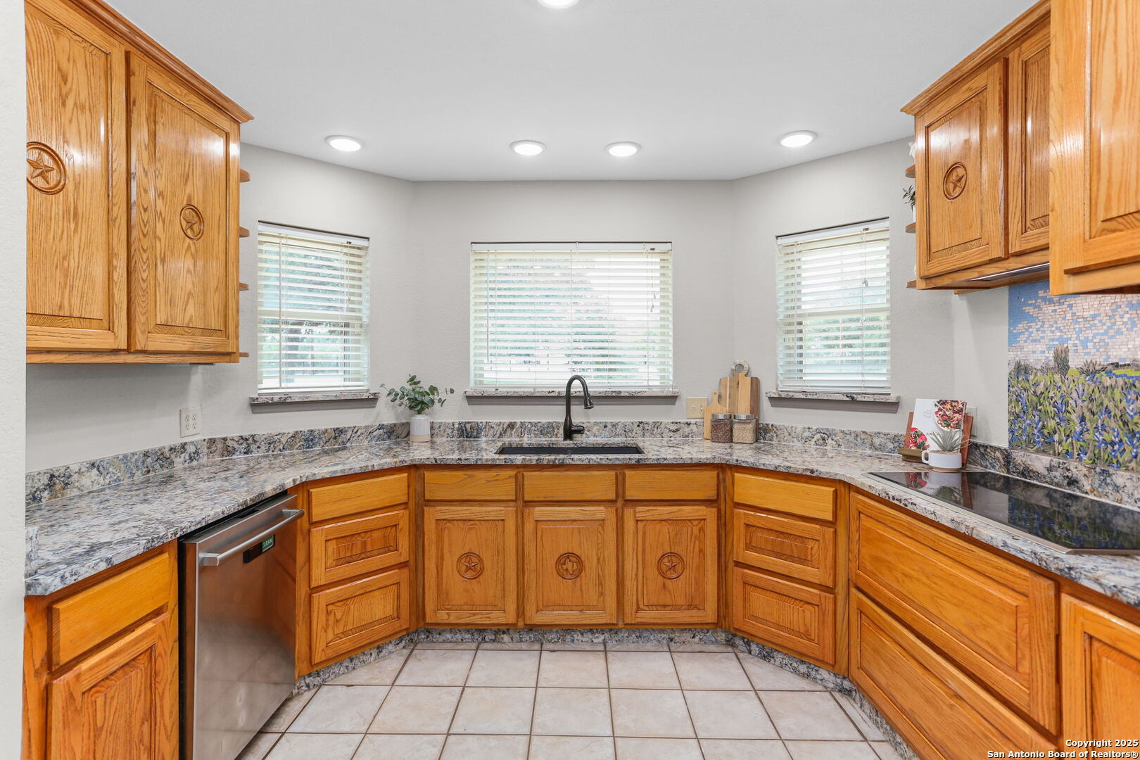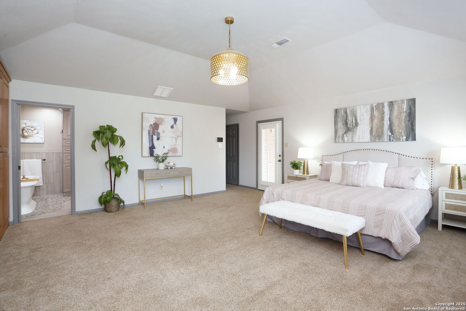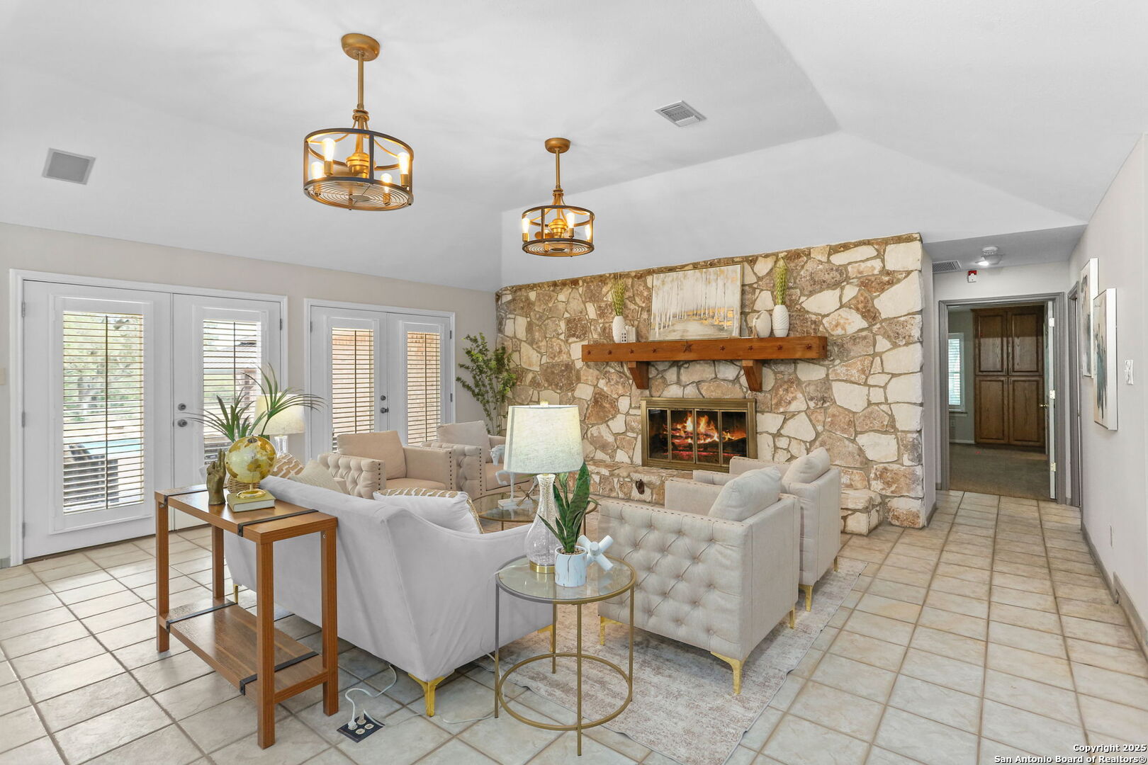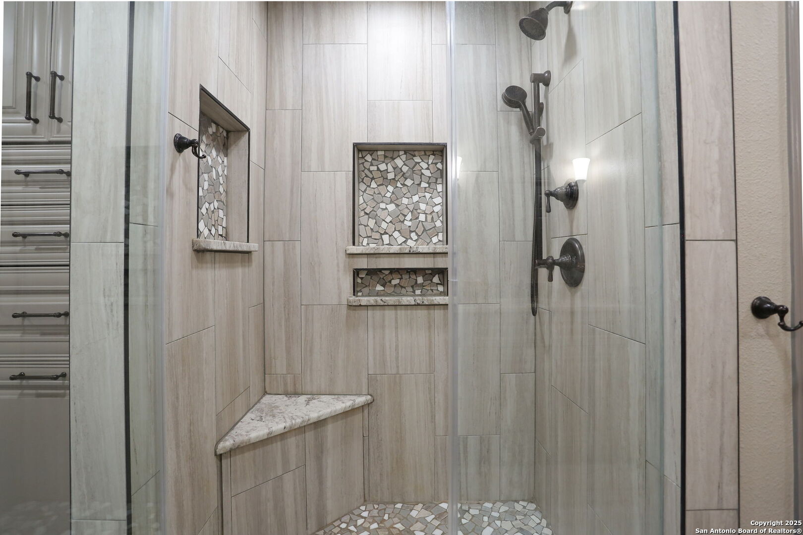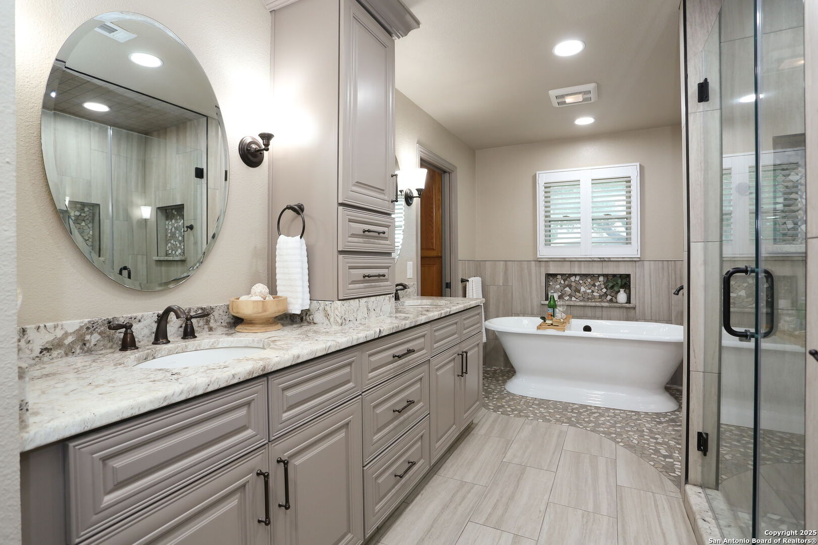 Set on 3.14 fully fenced acres, this beautiful and well maintained property offers a spacious 3-bedroom, 3-bath, 2524 sq ft main home plus a 675 sq ft casita perfect for multi-generational living, guests, or a private office. The main house features an oversized primary suite with a luxurious 6' cast iron soaking tub, separate shower, and custom solid oak built-ins for exceptional storage. The gourmet kitchen is a showstopper, featuring Blue Bahia granite countertops, custom oak cabinetry, and high-end appliances. The inviting living area boasts a cozy wood burning fireplace, creating the ideal space for relaxing evenings. This home has been modified to include wide 36" doorways, a wheelchair ramp entry, and a guest bath with a roll-in shower & safety rails. Outdoors, you'll love the sparkling pool and oversized flagstone patio that is perfect for entertaining. A short walk through the breezeway connects the main house to a 1-bedroom, 1-bath guest house with living area and kitchenette. Additionally, there is a 1,500 sq. ft. workshop with an air-conditioned upstairs office. The workshop contains another 1,000 sq. ft. of covered storage overhead with 220/110 wiring. In addition to the 2 car carport, there are 2 covered RV parking with 30 AMP hookup and an additional storage building. Best of all, this home is part of an HOA with no restrictions, giving you the freedom to truly make the property your own. Conveniently located just 27 miles west of downtown San Antonio and 11 miles from downtown Castroville. This property truly combines comfort, function, and style. Other upgrades include a standing seam metal roof, energy-efficient double-pane windows with a transferable lifetime warranty, and a high-efficiency A/C system with WiFi thermostat. Don't miss this rare opportunity-schedule your private showing today!