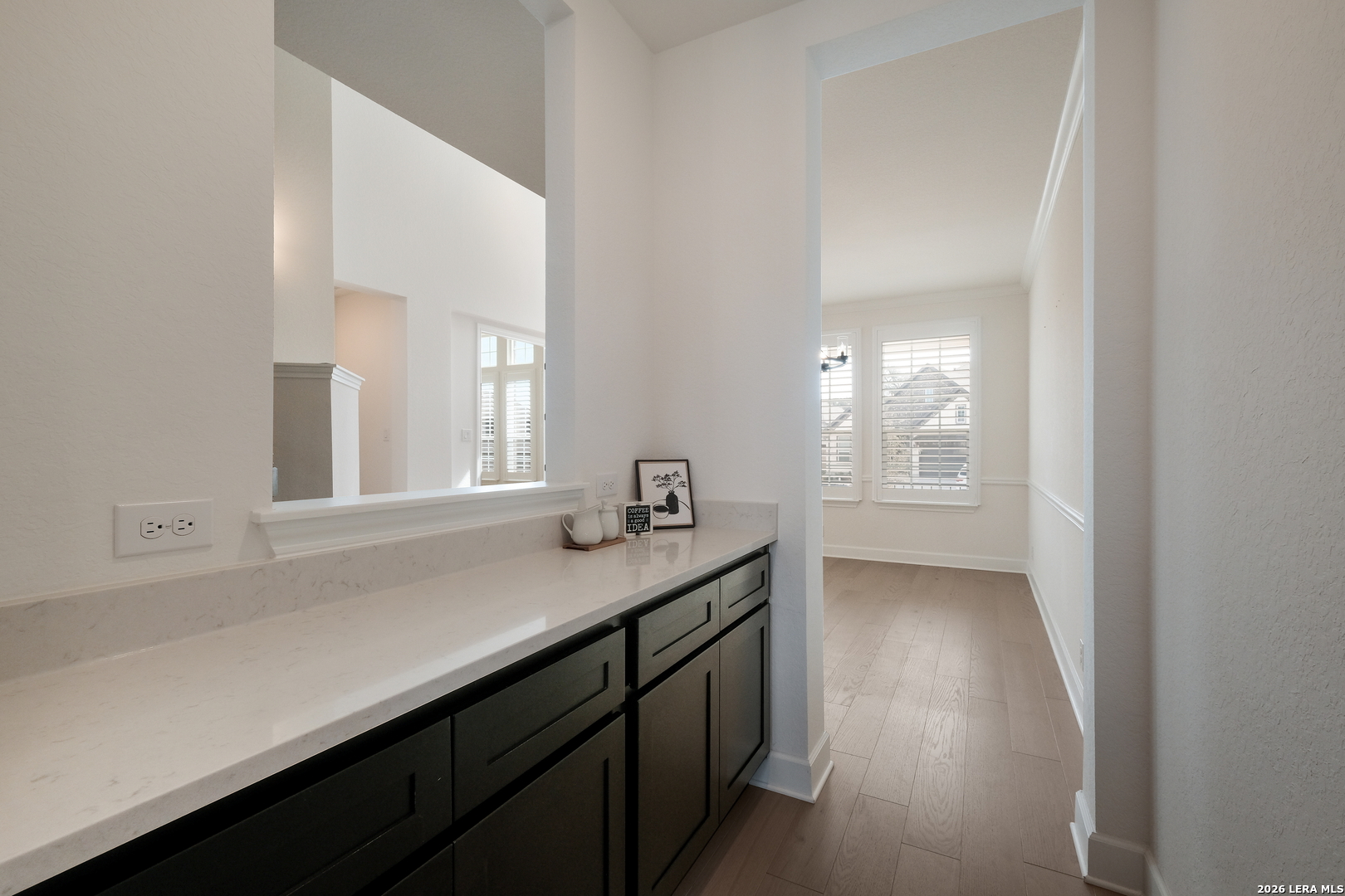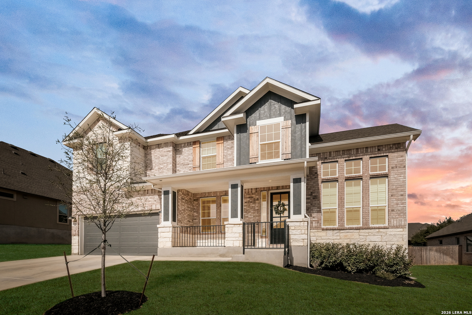 Welcome to this stunning 4 bedroom 3.5 bath home, just over a year old located in sought after Fair Oaks Ranch, rated among the top 5 safest places to live in the State of Texas. Designed with both comfort and entertaining in mind, this home features a bright, open floorplan centered around a gourmet kitchen with an abundance of cabinetry, generous counter space, and seamless flow into the living and dining areas. A cozy gas fireplace anchors the living room, creating the perfect gathering space. Plantation shutters add timeless charm to the formal dining room and private office. The spacious primary suite offers a true retreat with separate "his and hers" oversized walk-in closets and a luxurious en-suite bath. Upstairs, you'll find a large game room and generously sized secondary bedrooms, providing plenty of space for family and guests. Step outside to an oversized backyard complete with several mature oak trees that were professionally trimmed in November, 2025. There's ample room to design your dream outdoor oasis - whether that's a pool, casita, or full outdoor kitchen. A gas hookup on the back patio makes grilling effortless, and the home is pre-wired for a generator for added peace of mind. Enjoy life in this friendly golf cart community with convenient access to IH-10, premier shopping and dining at The Shops at La Cantera and The Rim, or a quick drive down the highway to charming downtown Boerne. Buyer to verify schools and room measurements.