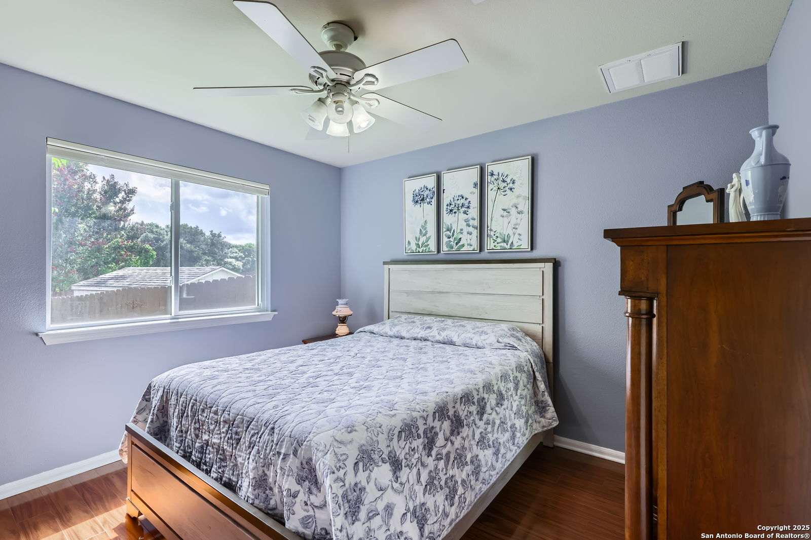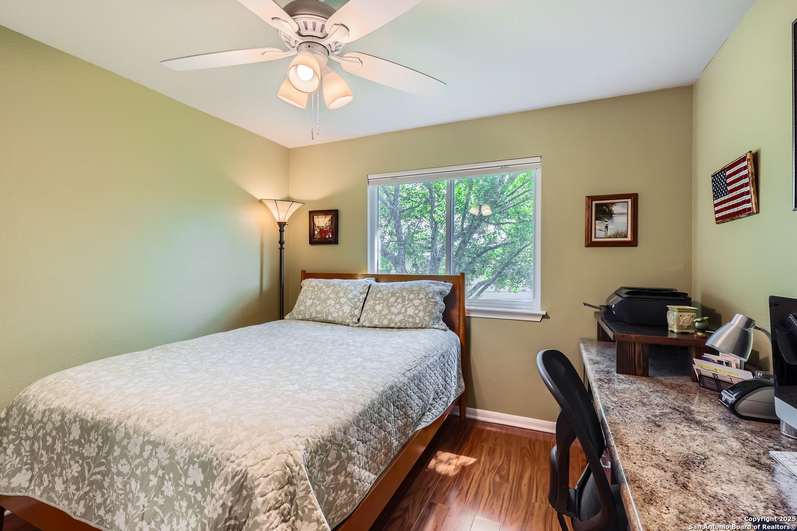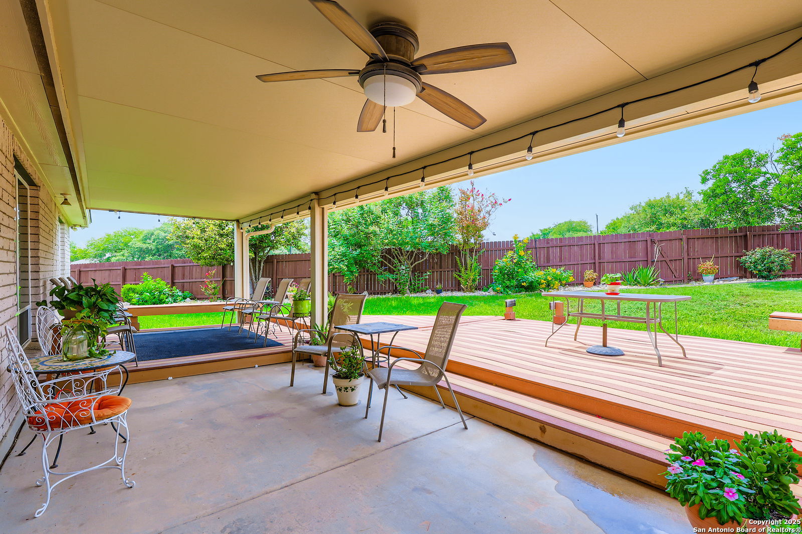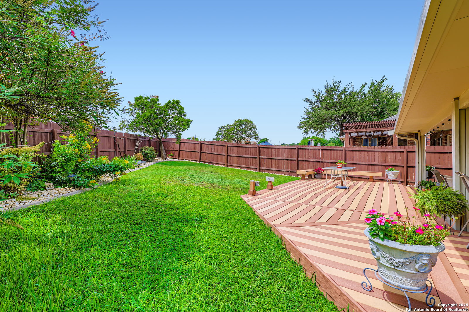 SELLER WILL PAY UP TO $10,000 towards closing costs and updates. This beautifully maintained all brick single story home is located in the desirable Olympia Hills area in Universal City. The home is situated on a corner and cul-de-sac lot on nearly 1/4 of an acre. This charming property comes with PAID OFF solar panels, keeping energy bills as low as $5.00! You will also enjoy the benefits of brand new windows and shades (2024). New A/C heating units and water heater (2022), and a water softner system for added home comfort. Master bedroom walk in closet boosts custom shelves and drawers. Relax in the most peaceful backyard setting with a large partially covered deck. Home also has a large storage shed in the back yard. Close to shopping, restaurants, Olympia Hills golf course, and military bases.