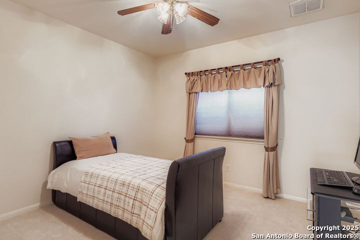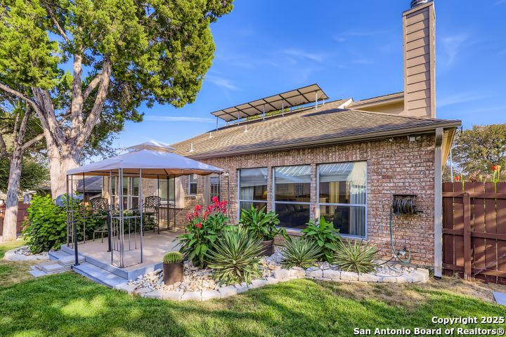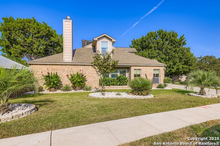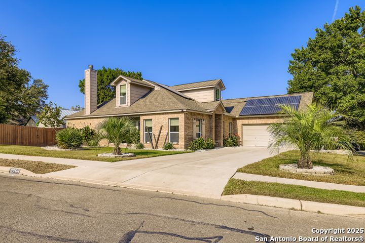 Seller is offering $10,000 towards closing costs and or upgrades. This beautifully maintained all brick home is located in the desirable Olympia Hills area in Universal City. The home is situated on a corner and cul-de-sac lot. This charming property comes with PAID OFF solar panels, keeping energy bills as low as $5.00! New A/C heating units and Leaf Filter Gutters (2022). For added comfort this home has a Reverse Osmosis Water System. The large kitchen with a large amount of counter and cabinet space is perfect for entertaining and tamale parties. All bedrooms and bathrooms are conveniently located downstairs. The upstairs boosts a large family area with lots of storage. Relax in the most peaceful and beautifully landscaped front and backyard settings with a large partially covered deck. All yard art and water features remain with the home. Home also has a storage shed in the back yard. Close to shopping, restaurants, Olympia Hills golf course, and military bases.