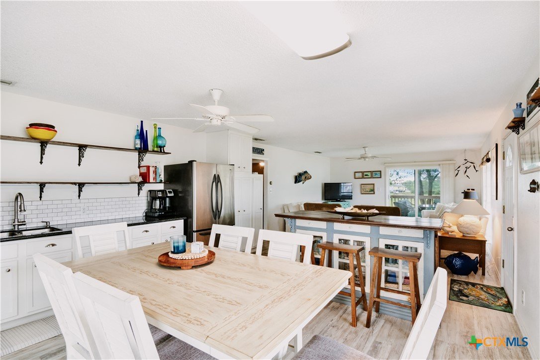 Welcome to your coastal retreat in Port O'Connor! This semi-furnished bay house sits less than a half mile from the boat ramp at Froggies and 5D Steakhouse - perfectly positioned for fun on and off the water! Lovingly maintained and nicely updated, the home offers plenty sleeping space and room to entertain. The converted garage is a party-ready bar scene, complete with furnishings that stay! Fresh exterior paint, lots of parking and no flooding history make this home a true fisherman's dream come true! Relax with a good book on the back exterior deck shaded by established trees in the back yard. Downstairs you'll find a full bathroom with outdoor shower perfect for days in the sun and sand! Call today to schedule a showing!