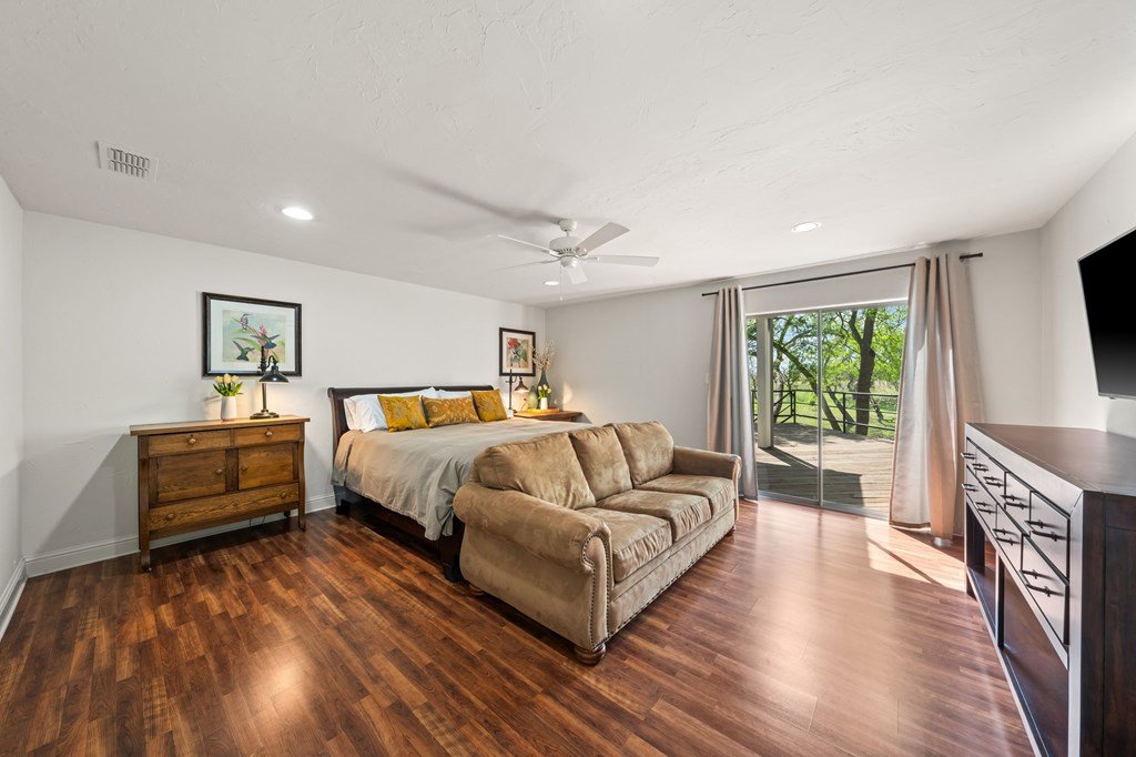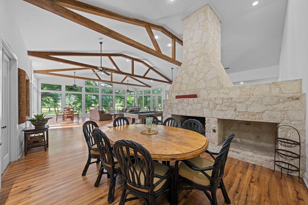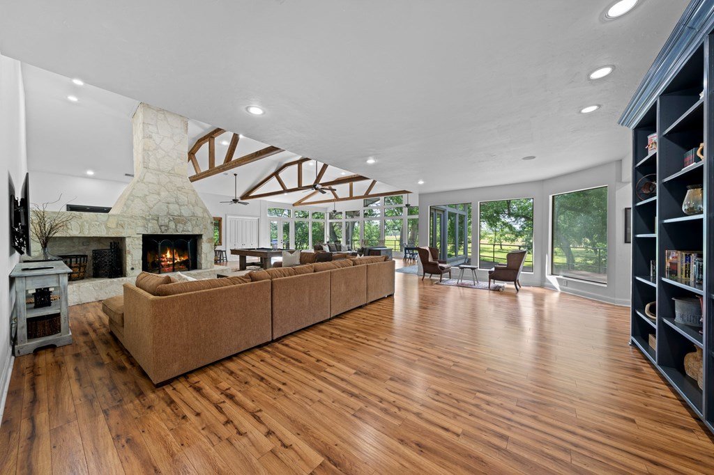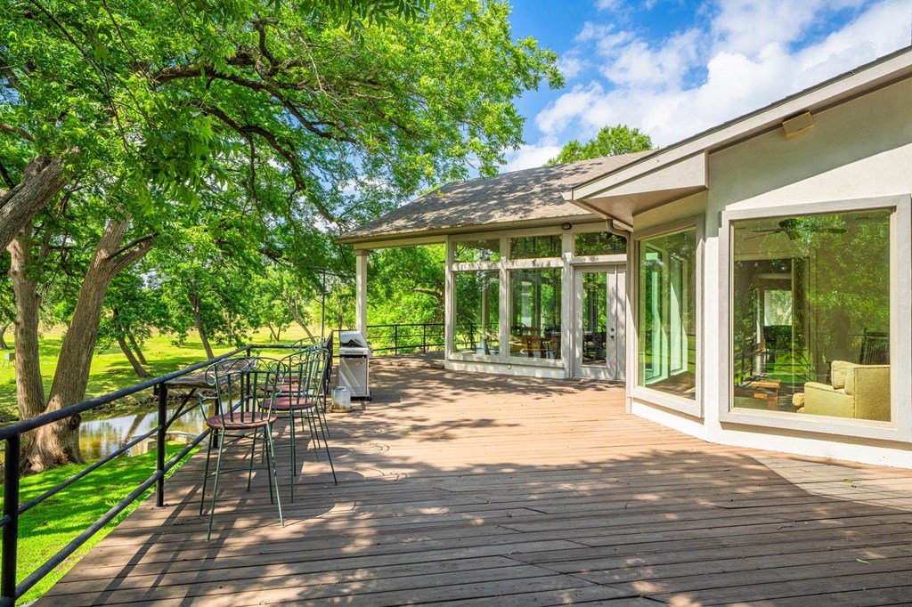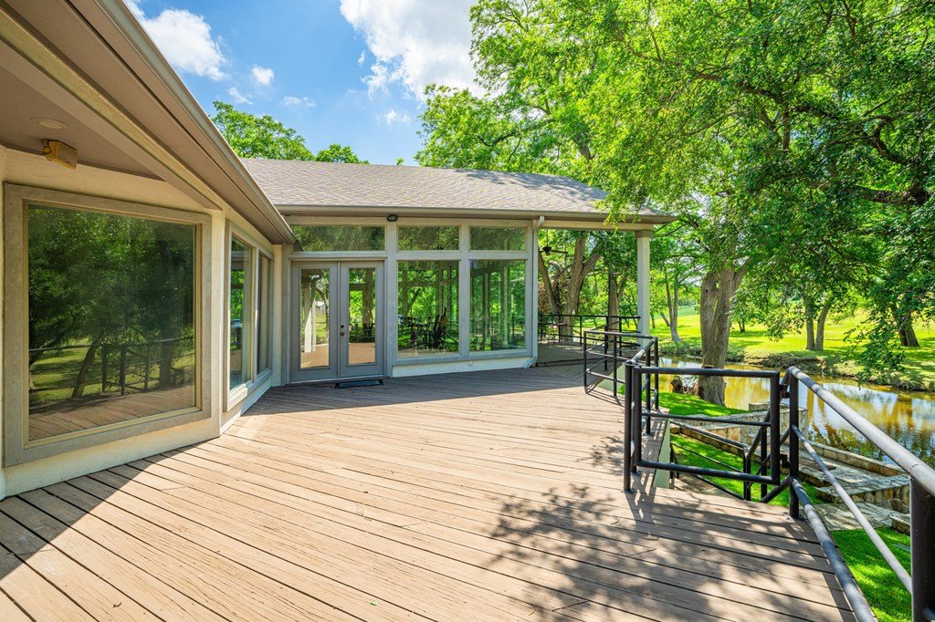 Experience the perfect blend of comfort, style, & natural beauty in this exceptional one-story ranch-style home, offering 5,381 sf of thoughtfully designed living space. Nestled on 2.5 acres of manicured lawn & mature trees—with over 580 feet of prime Turtle Creek frontage—this property is ideal for both relaxing & entertaining. Inside, the open floor plan includes 4 generously sized bedrooms, 5 bathrooms, a spacious kitchen perfect for gatherings, a dedicated dining area, and a cozy media/family room. The heart of the home is the stunning great room, featuring a dual-sided rock fireplace and soaring ceilings accented by beautiful beams—adding warmth, character, & a true sense of grandeur. Additional highlights include a wet bar, private office, & picturesque views from nearly every room. Step outside to enjoy an expansive deck overlooking the water, a custom stone dock for swimming, kayaking, or fishing, & a seamless connection between indoor and outdoor living. The property also includes a large exterior storage space & a convenient outdoor restroom. Blending indoor comfort with outdoor beauty, this property is an exceptional place to call home!