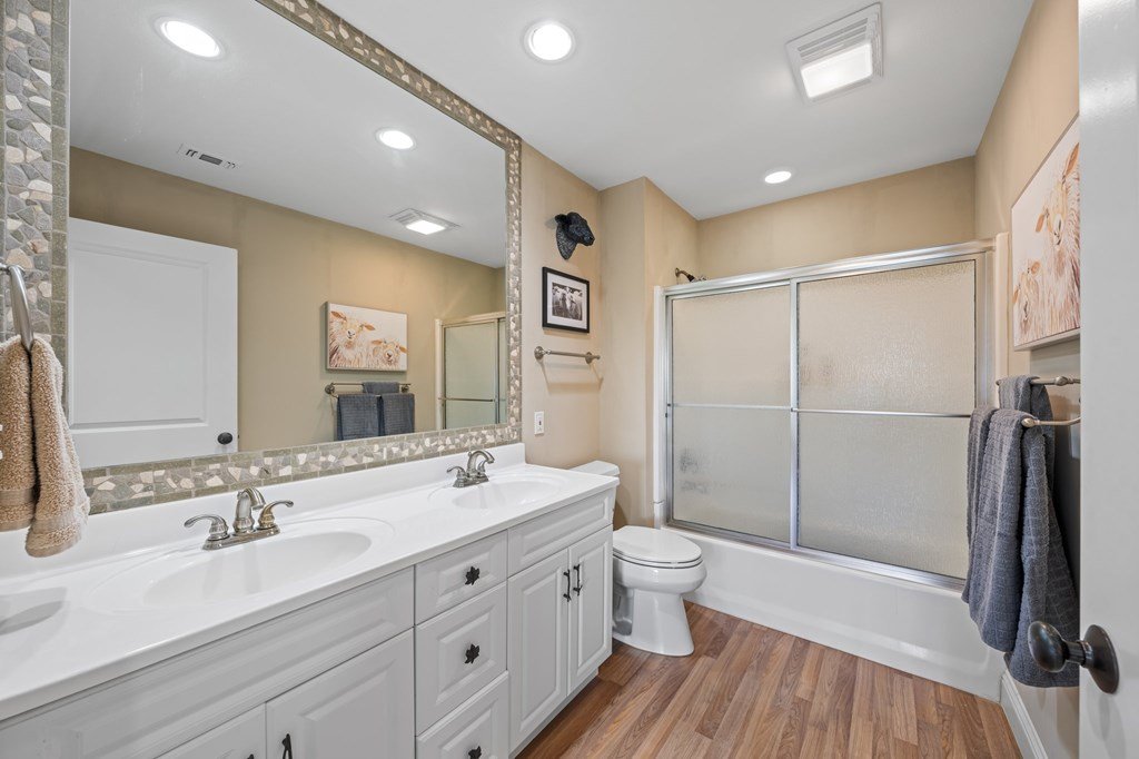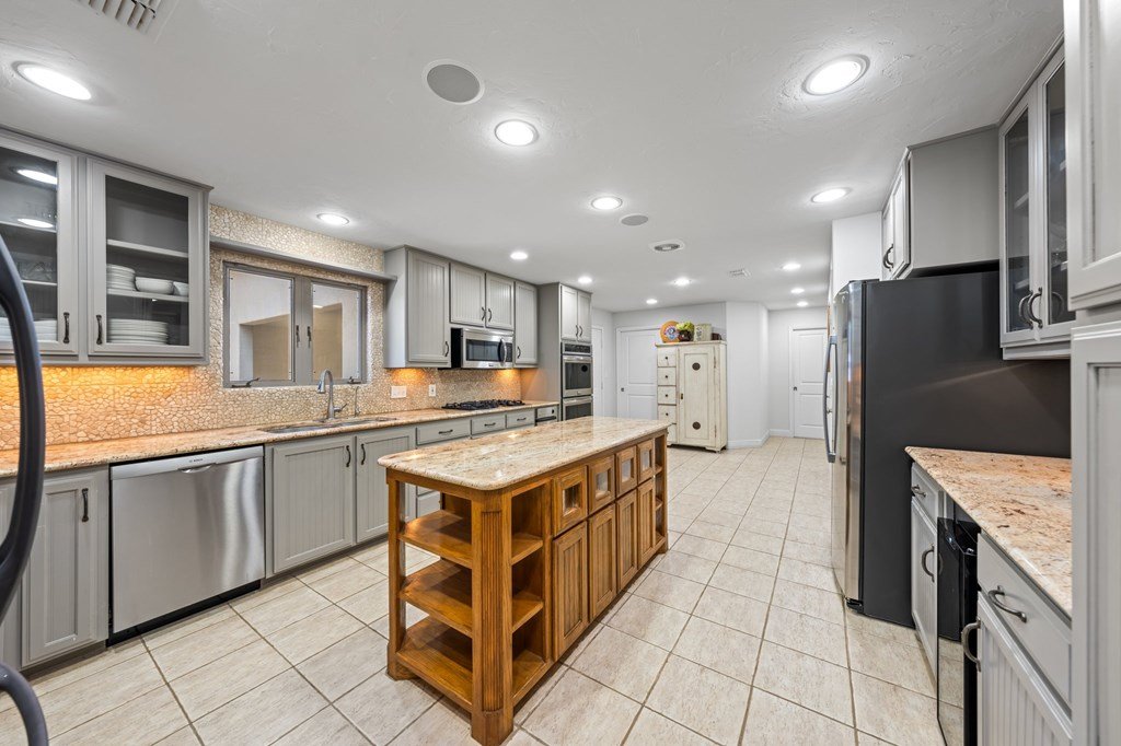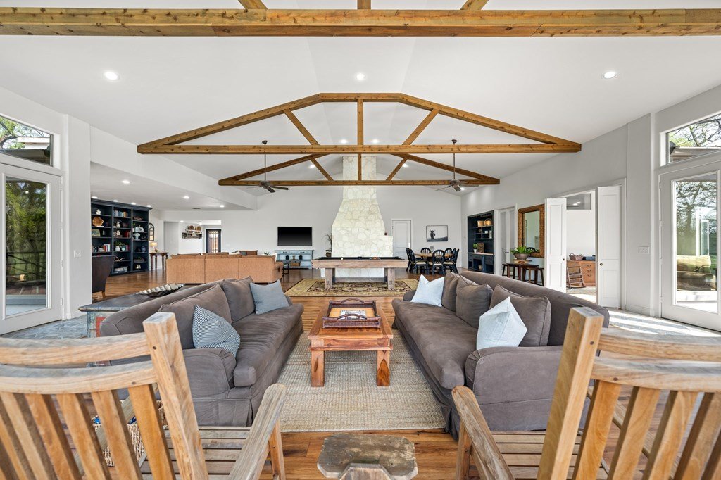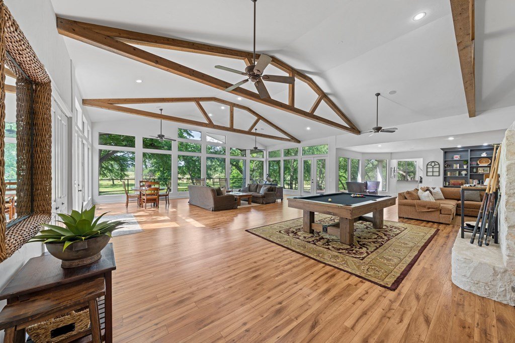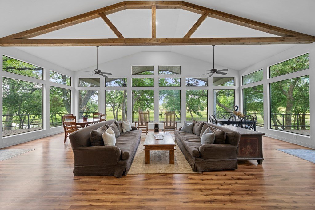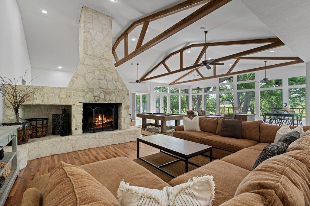 Experience the perfect blend of comfort, style, & natural beauty in this exceptional one-story ranch-style home, offering 5,381 sf of thoughtfully designed living space. Nestled on 2.5 acres of manicured lawn & mature trees—with over 580 feet of prime Turtle Creek frontage—this property is ideal for both relaxing & entertaining. Inside, the open floor plan includes 4 generously sized bedrooms, 5 bathrooms, a spacious kitchen perfect for gatherings, a dedicated dining area, and a cozy media/family room. The heart of the home is the stunning great room, featuring a dual-sided rock fireplace and soaring ceilings accented by beautiful beams—adding warmth, character, & a true sense of grandeur. Additional highlights include a wet bar, private office, & picturesque views from nearly every room. Step outside to enjoy an expansive deck overlooking the water, a custom stone dock for swimming, kayaking, or fishing, & a seamless connection between indoor and outdoor living. The property also includes a large exterior storage space & a convenient outdoor restroom. Blending indoor comfort with outdoor beauty, this property is an exceptional place to call home!