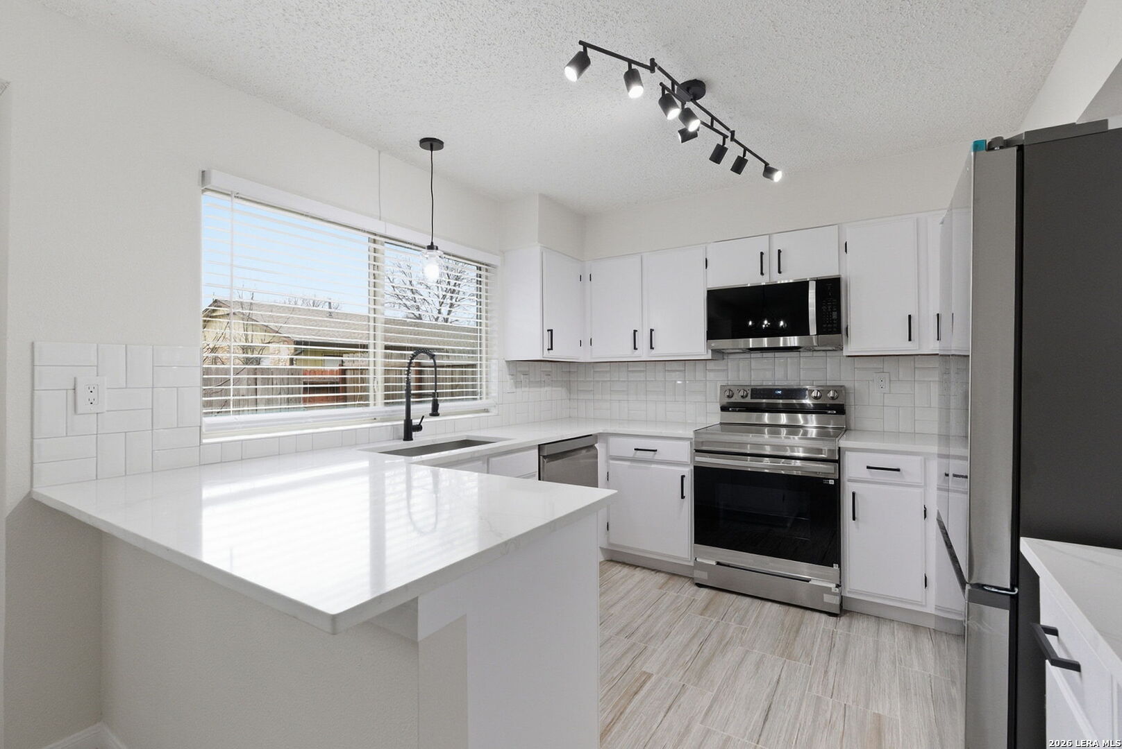 Welcome to this beautifully renovated home located in desirable Silver Creek II community of Great Northwest. Thoughtfully updated from top to bottom. This move-in ready home features solid counter tops, all new flooring and appliances, fresh paint inside and out, and a modern walk in shower in the owners suite. The home is situated on a cul-de-sac that includes a green space along one side, creating a peaceful setting with mature trees. The layout is a comfortable setting that flows open and includes a high ceiling with wood beams and cozy fireplace. The home is filled with natural light, perfect for everyday living and entertaining. Enjoy prime access to shopping and dinning. This turnkey home has style, comfort, and convenience!