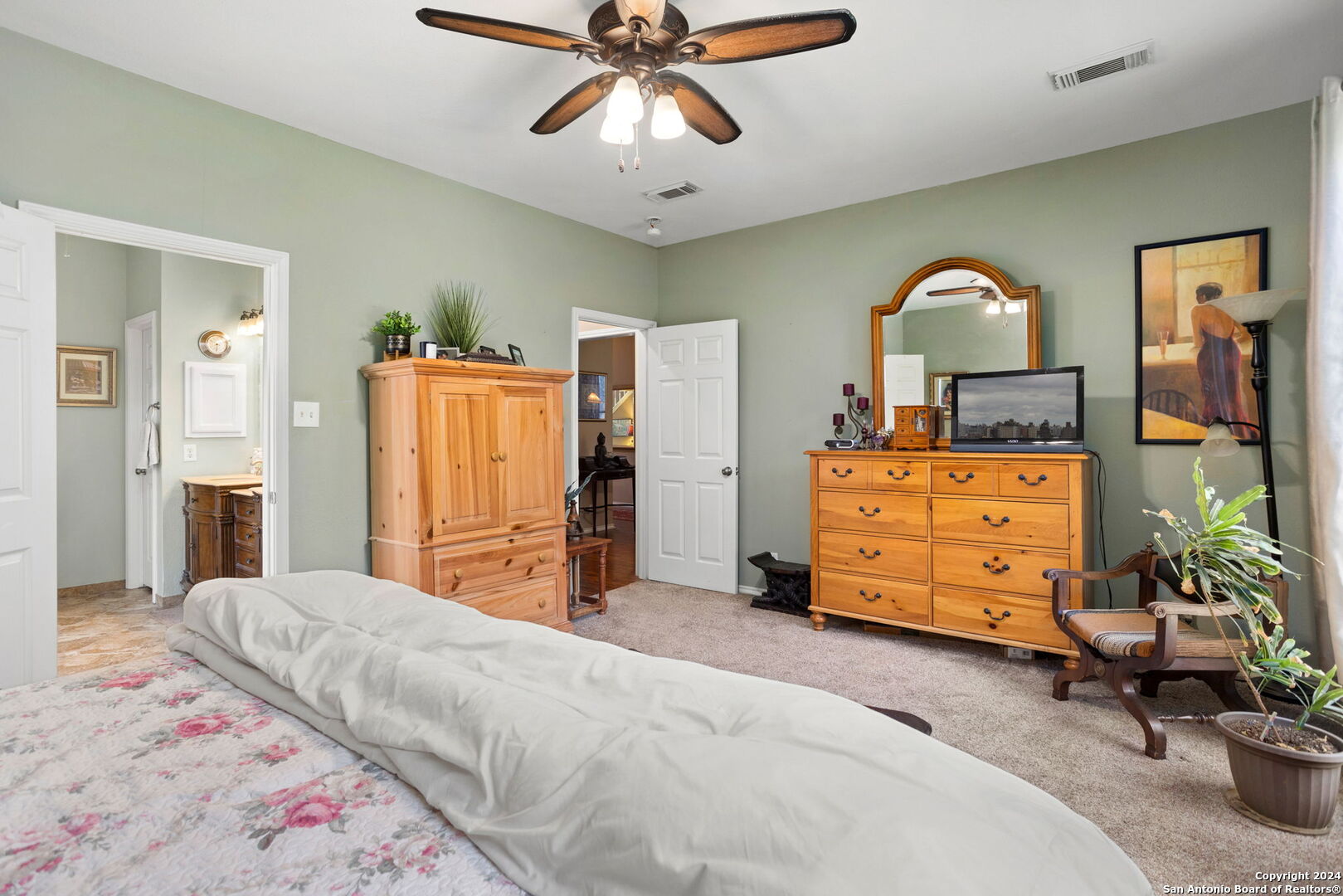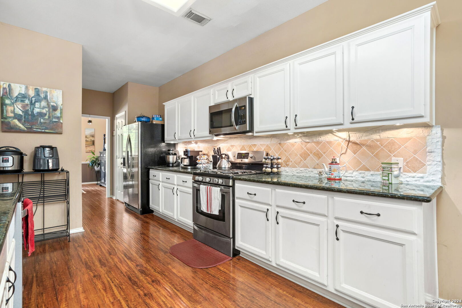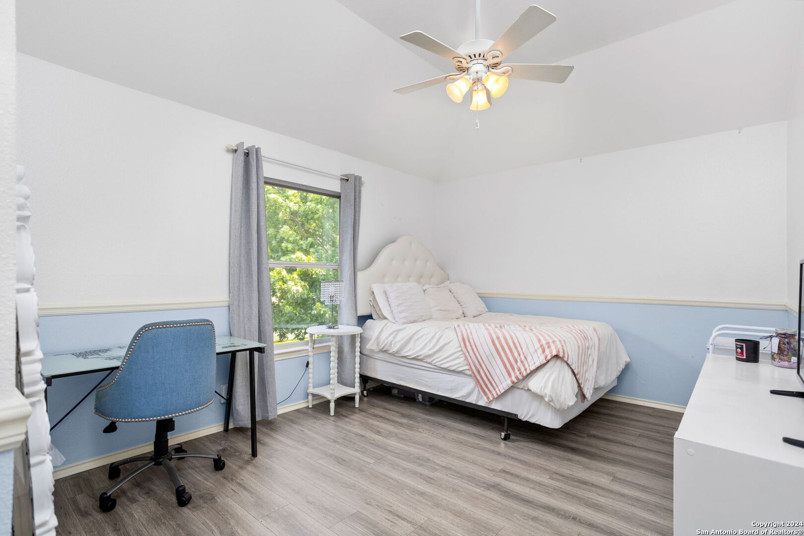 Move-In-Ready 4-Bedroom Home with Solar, wired for EV Charger Wiring & Gated Community Amenities This beautifully maintained 4-bedroom, 2.5-bath home offers a spacious open-concept layout with the kitchen overlooking the family room-ideal for everyday living and effortless entertainment. Warm wood flooring flows throughout, creating a welcoming, cohesive feel. Thoughtfully improved for comfort, efficiency, and peace of mind, this home includes: * 220-volt wiring for EV charger (installed 2023) * Solar panels were added in 2023 for energy efficiency and savings * Tankless water heater (2020) * Roof (2017) * Foundation update completed in 2020 * Water softener (2012) * Refurbished HVAC system (2024; originally installed 2020) * Updated flooring and bathrooms (2012) * Backyard hose bib with hard water-ideal for landscaping Located just minutes from Loop 1604, the Medical Center, and major commuting routes, this home offers both convenience and calm. The quiet, gated community features a neighborhood pool, and families will appreciate the two walking paths leading directly to the elementary school. Close to everyday essentials, shopping, and dining, this home delivers the rare combination of efficiency, location, and lifestyle-without compromise. Move-in ready and thoughtfully maintained. Schedule your showing today.