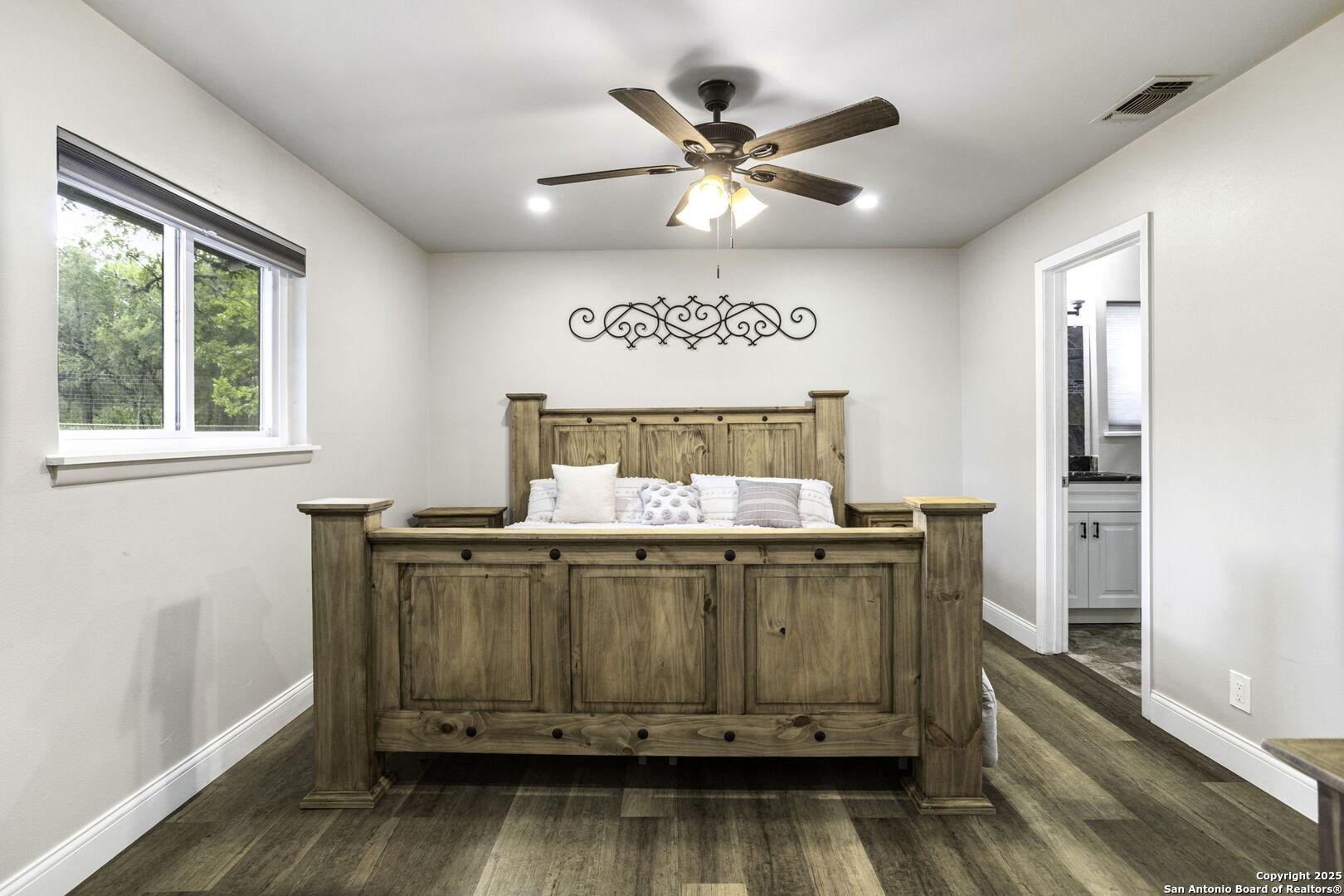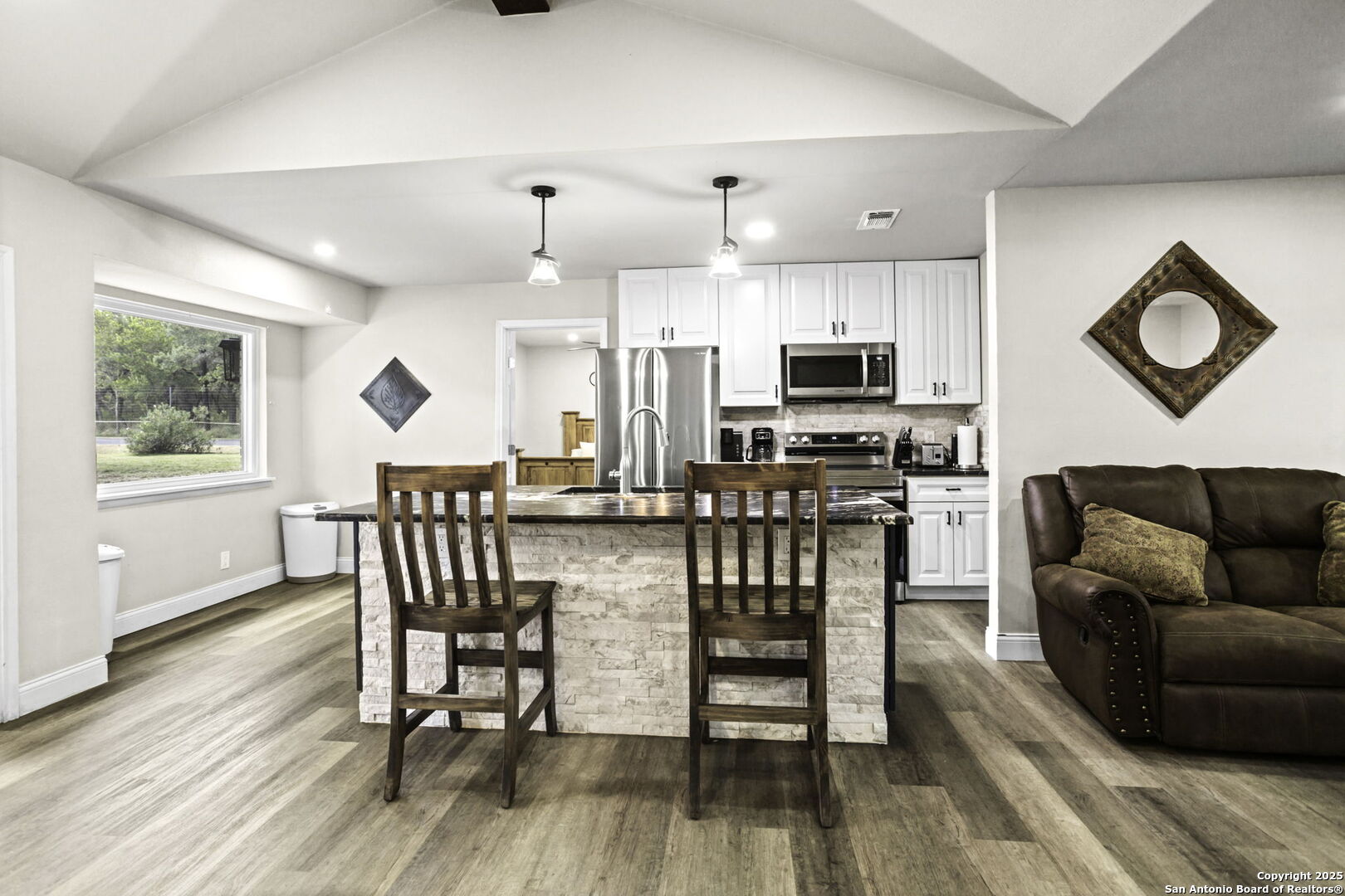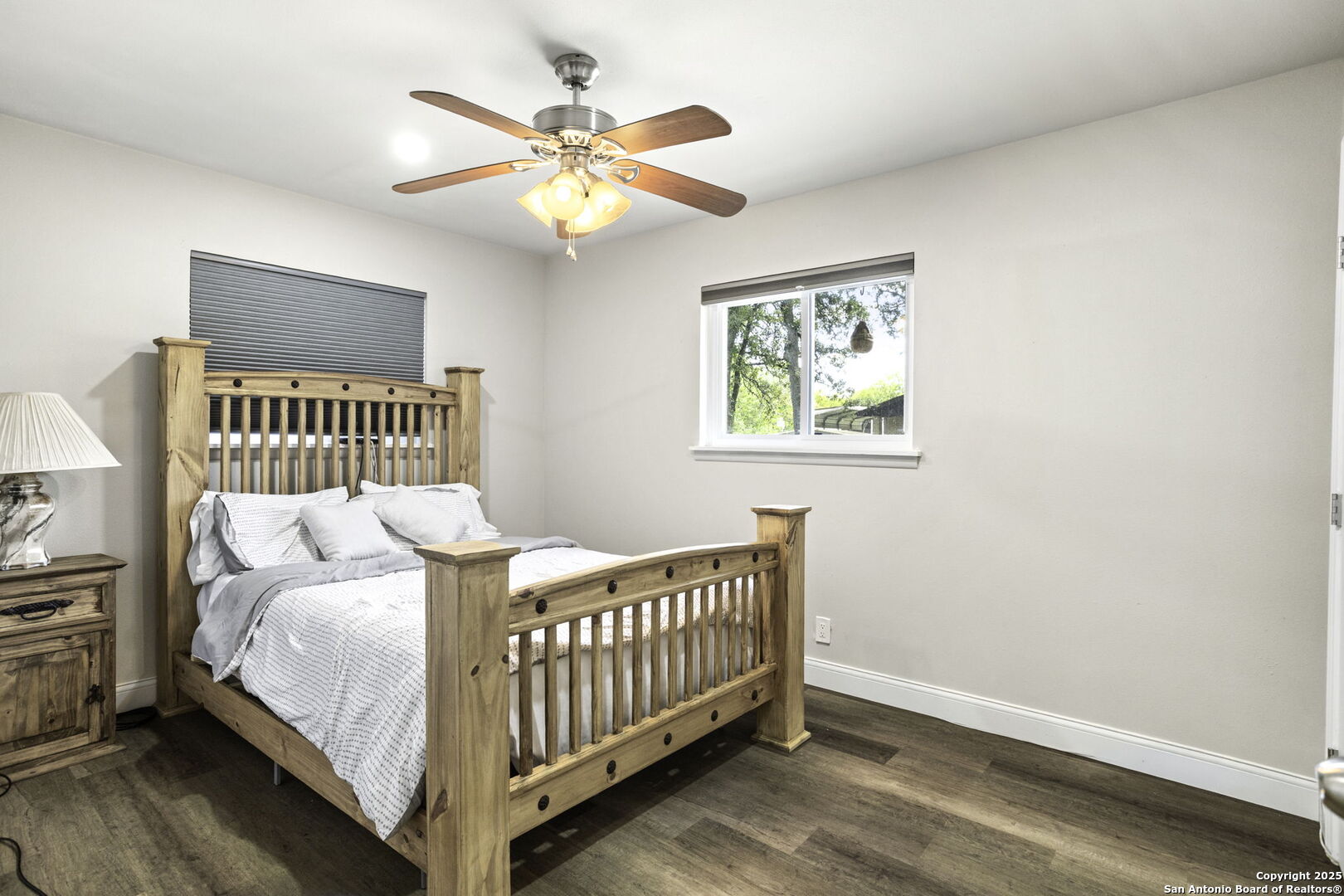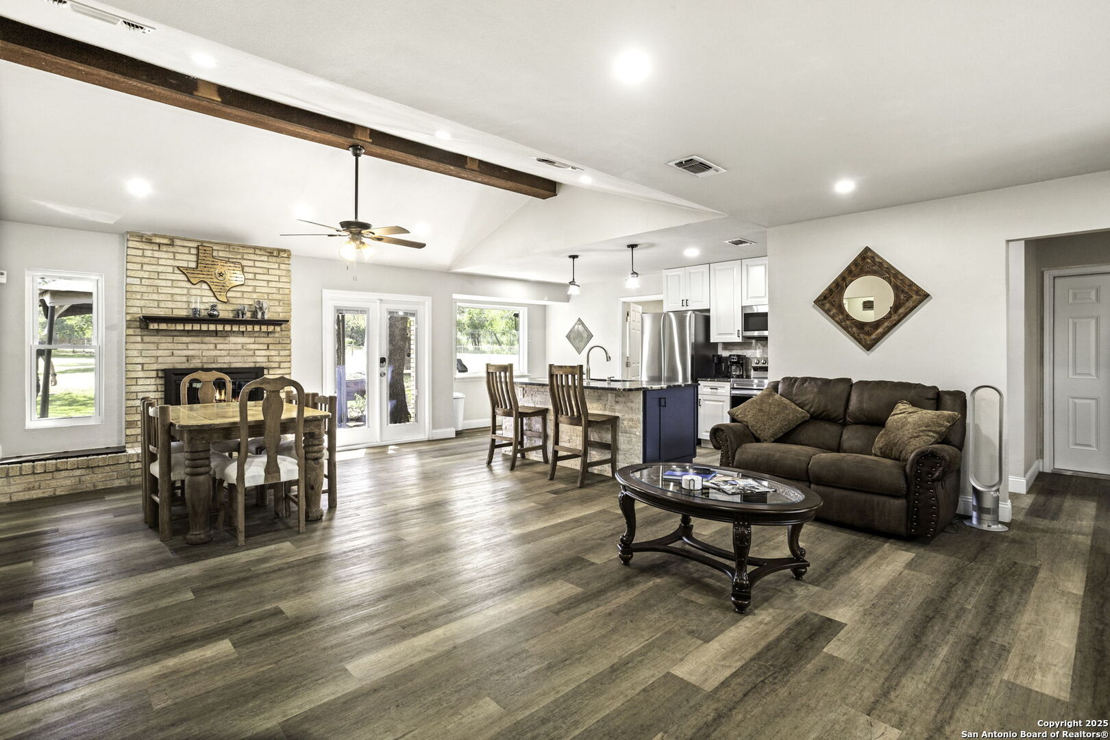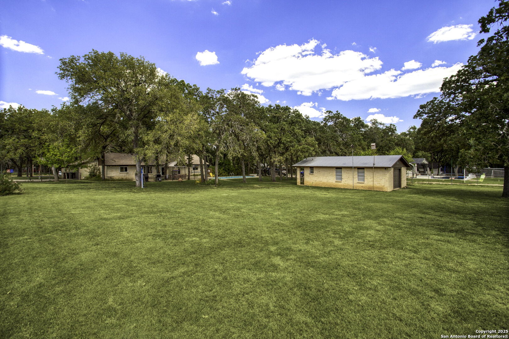 Tucked away in the highly desirable Stagecoach Hills neighborhood, 8818 Apache Trail is more than just a home, it's a retreat designed for both everyday living and unforgettable gatherings. Sitting on almost three-quarters of an acre surrounded by mature oak trees, this property blends Hill Country charm with modern updates. The main home (1,579 sqft) offers 3 bedrooms and 2 full bathrooms, all beautifully remodeled. At its heart, a wood-burning fireplace creates a warm and inviting centerpiece, while the fully updated kitchen shines with stylish finishes, modern appliances, and an open flow to the living and dining areas. The attached 2-car side-entry garage adds convenience, and every detail, from the new flooring to the updated lighting, reflects thoughtful care. Step outside, and the story continues. A sparkling in-ground pool is perfectly placed between the main home and the guest house, creating a resort-like atmosphere. The detached guest home (704 sqft) includes its own full bath and separate entrance, making it ideal for extended family, a private office, or an income-producing short-term rental investment. The outdoor space is built for entertaining, with plenty of room for grilling, lounging, or games under the shade of mature trees. Smart features like exterior security cameras, WiFi-enabled sprinklers, and a water softener add peace of mind. Best of all, the home is fully furnished and move-in ready, including all appliances - refrigerator, washer, and dryer. With no HOA, top-rated schools, and a location that's just minutes to I-10, Loop 1604, and a short drive to Boerne, this home offers both freedom and convenience. Whether you're searching for your forever home, a place to entertain, or a property with income potential, 8818 Apache Trail delivers it all.