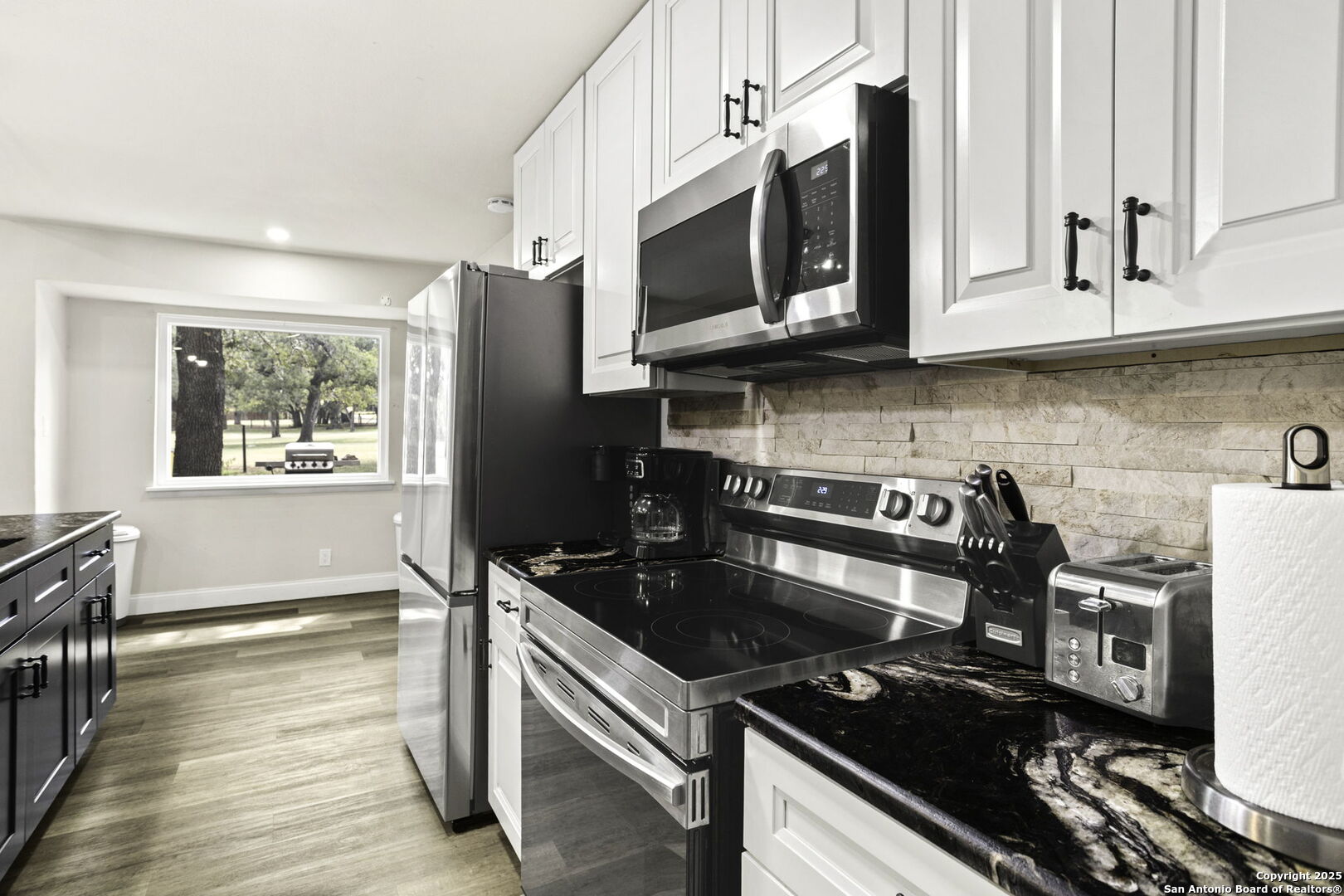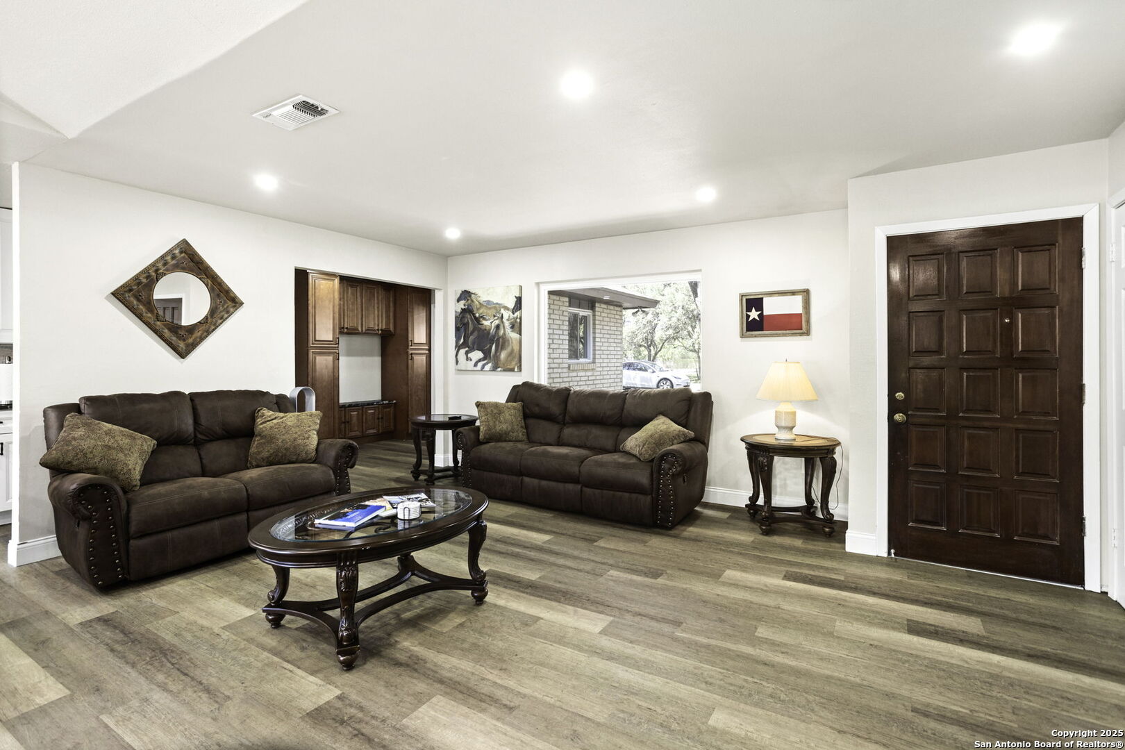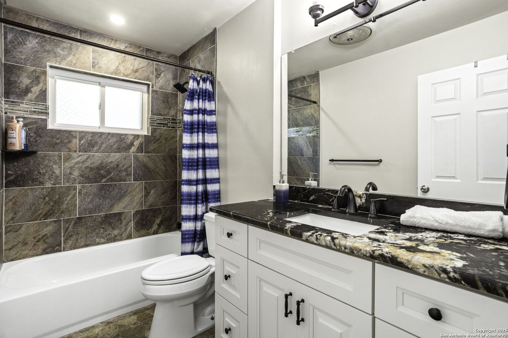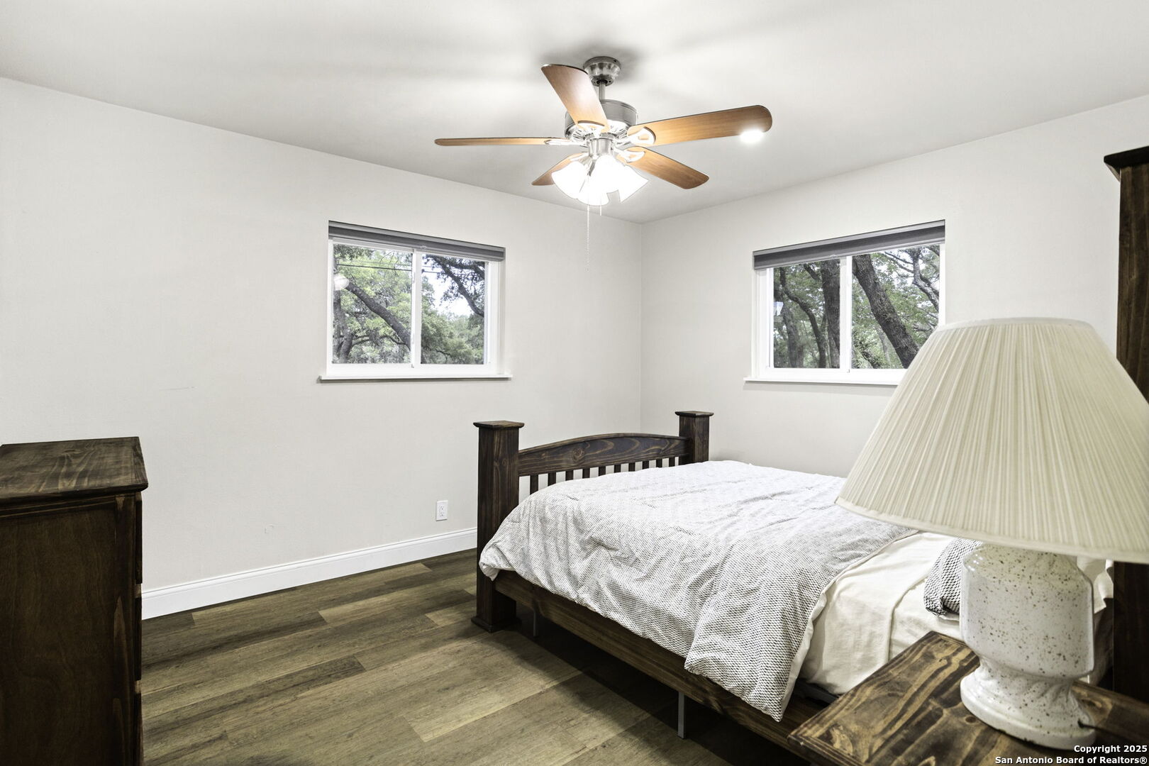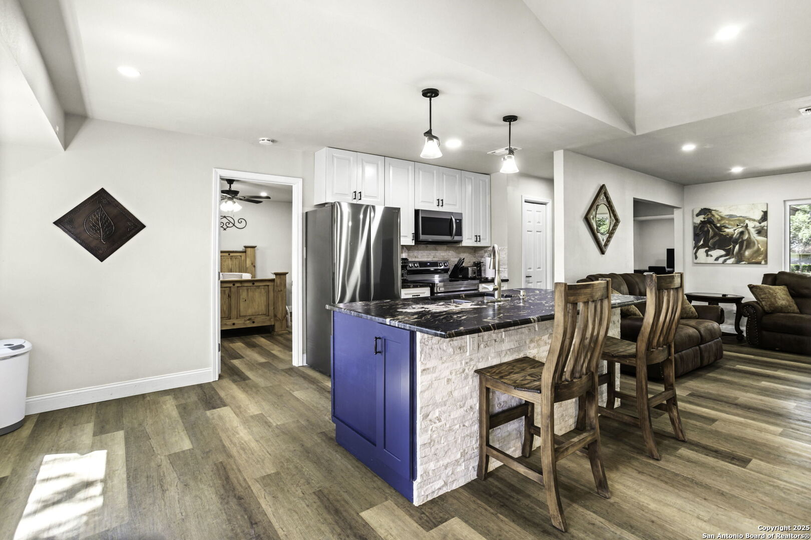 Tucked away in the highly desirable Stagecoach Hills neighborhood, 8818 Apache Trail is more than just a home, it's a retreat designed for both everyday living and unforgettable gatherings. Sitting on almost three-quarters of an acre surrounded by mature oak trees, this property blends Hill Country charm with modern updates. The main home (1,579 sqft) offers 3 bedrooms and 2 full bathrooms, all beautifully remodeled. At its heart, a wood-burning fireplace creates a warm and inviting centerpiece, while the fully updated kitchen shines with stylish finishes, modern appliances, and an open flow to the living and dining areas. The attached 2-car side-entry garage adds convenience, and every detail, from the new flooring to the updated lighting, reflects thoughtful care. Step outside, and the story continues. A sparkling in-ground pool is perfectly placed between the main home and the guest house, creating a resort-like atmosphere. The detached guest home (704 sqft) includes its own full bath and separate entrance, making it ideal for extended family, a private office, or an income-producing short-term rental investment. The outdoor space is built for entertaining, with plenty of room for grilling, lounging, or games under the shade of mature trees. Smart features like exterior security cameras, WiFi-enabled sprinklers, and a water softener add peace of mind. Best of all, the home is fully furnished and move-in ready, including all appliances - refrigerator, washer, and dryer. With no HOA, top-rated schools, and a location that's just minutes to I-10, Loop 1604, and a short drive to Boerne, this home offers both freedom and convenience. Whether you're searching for your forever home, a place to entertain, or a property with income potential, 8818 Apache Trail delivers it all.