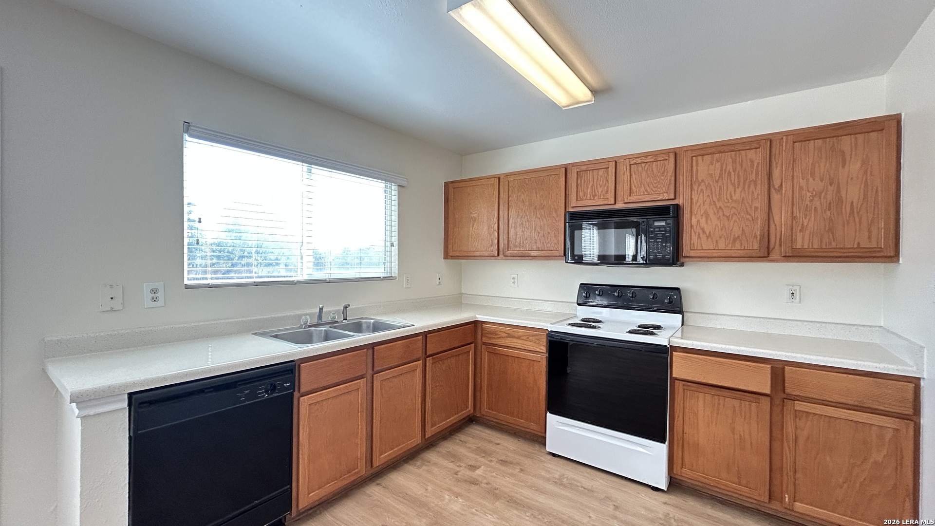 3-bedroom, 2-bath home located in a gated community. Features fresh paint and brand-new flooring throughout! The living room seamlessly connects to the eat-in kitchen, creating an open and inviting layout. Generously sized bedrooms and a large backyard offer plenty of space-ideal for family gatherings and outdoor entertaining.
