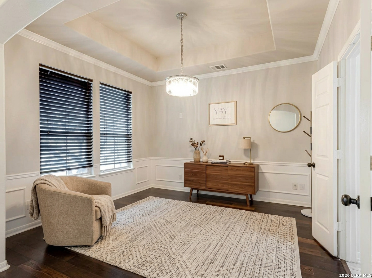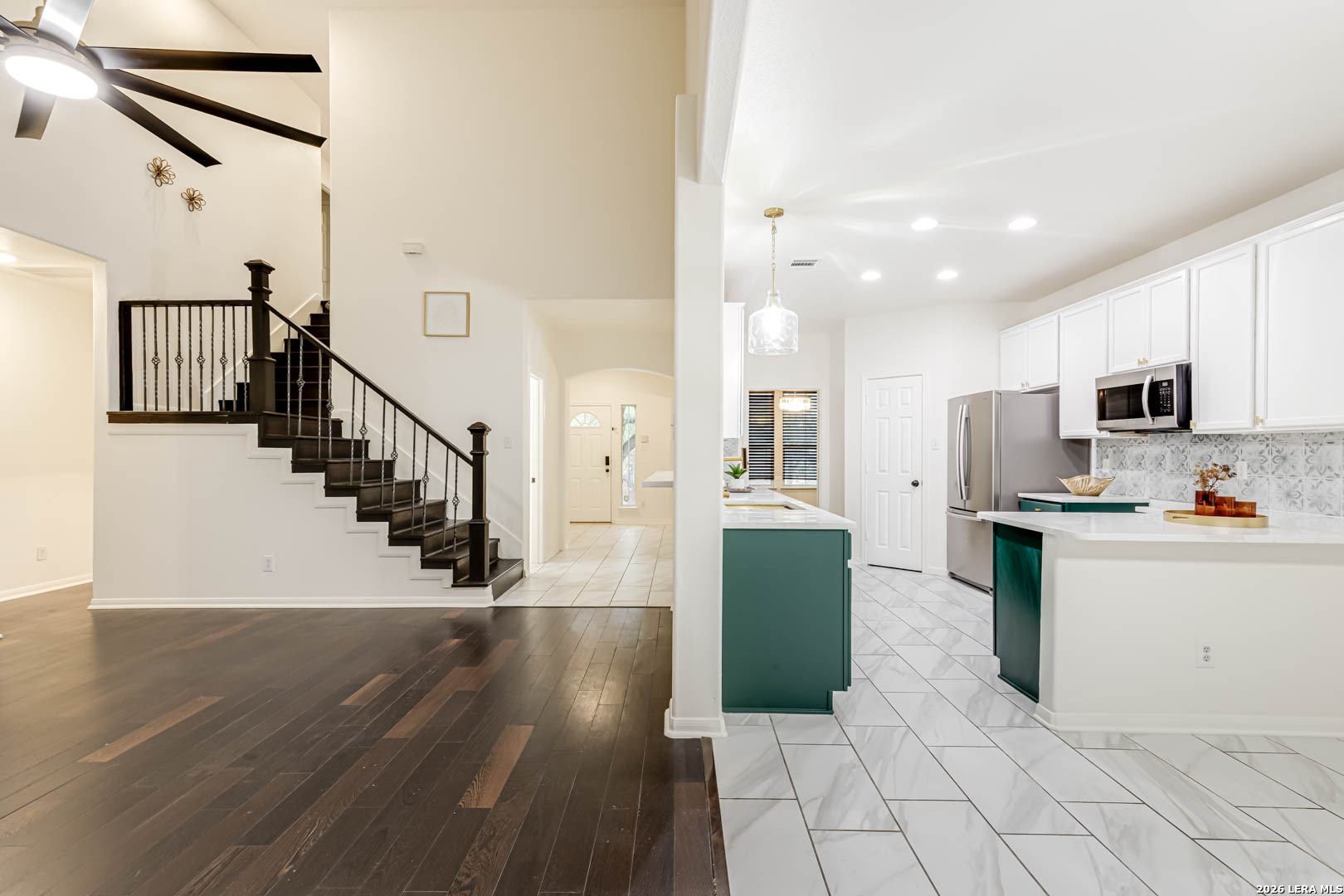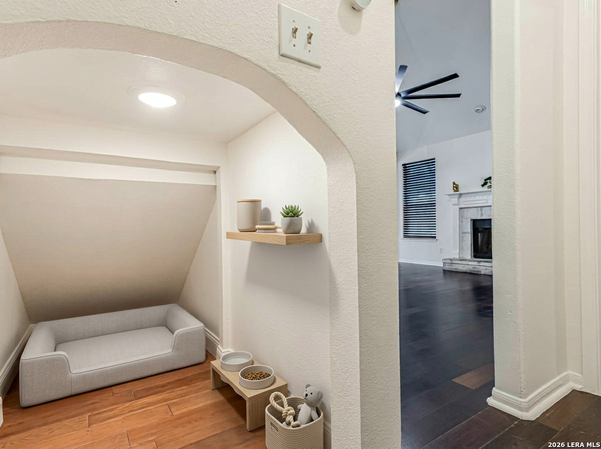 Step into this inviting home in the established Olympia Oaks neighborhood. This two-story property offers an open layout with soaring ceilings in the main living area, creating a bright and spacious feel the moment you walk in. The kitchen overlooks the living space and features an eat-in dining area along with a large walk-in pantry, making it perfect for both everyday living and entertaining. Downstairs you will also find an oversized flex room that can easily serve as a home office, game room, media space, or even a fifth bedroom depending on your needs. The primary suite is conveniently located on the main level and includes a full bathroom and generous walk-in closet. Upstairs are three additional bedrooms, including one with its own private balcony, offering a unique space to relax and enjoy the outdoors. The home is ideally located near Randolph Brooks Air Force Base, Fort Sam Houston, and SAMMC, with quick access to IH-35 and shopping and dining at The Forum. Homes in this area move fast, so come take a look before it's gone!